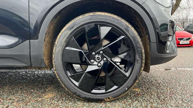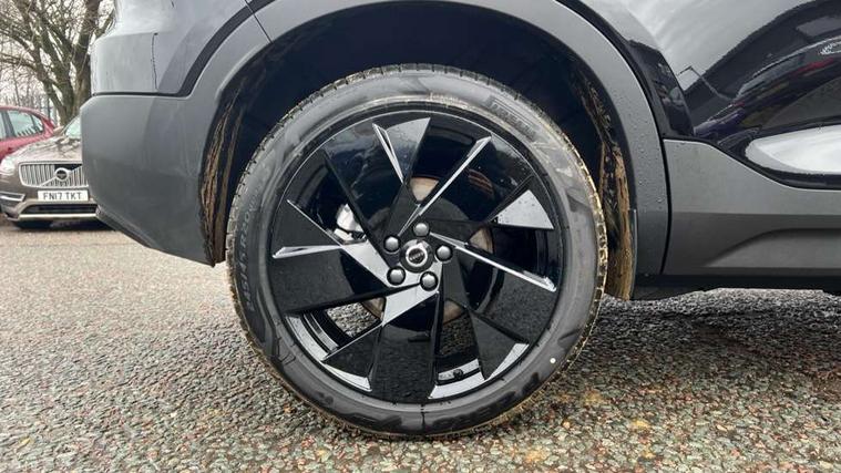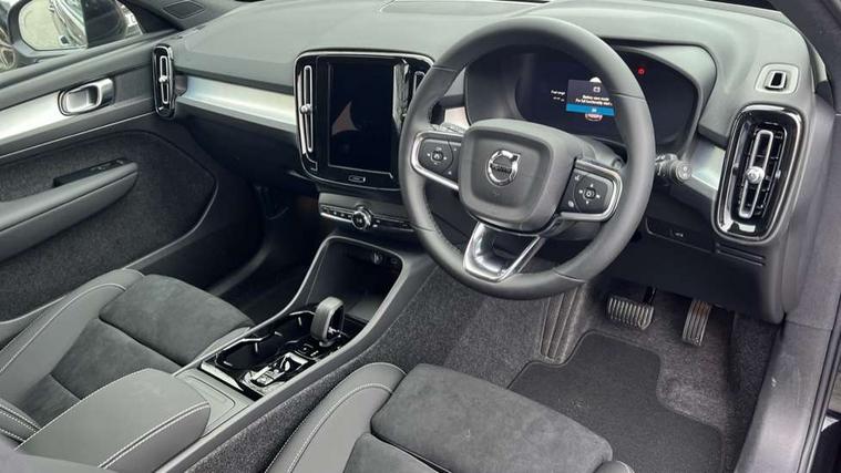 12.3" Progressive Driver Display, 9" centre console portrait touch screen, Adjustable steering wheel force, Android auto (Wired), Apple carplay (wired), Bluetooth handsfree system, Driver alert control, Driver assistance (pilot assist and adaptive cruise control), Driver awareness - Blind spot information system with steer assist, cross traffic alert with autobrake and rear collision warning and mitigation, E-call, Front and rear parking sensors, Front park assist, Google automotive services - Enabled entertainment apps, navigation with google maps, voice recognition with google assistant, Hands free power tailgate, Intelligent speed assistance, Lane keeping aid, Oncoming Lane Mitigation, Speed sensitive steering, Volvo cars services with app - Driving journal, emergency and breakdown call, engine remote start, remote door locking/unlocking and vehicle dashboard, Wireless/Inductive Mobile Phone Charging, Automatic transmission with start/stop and manual change functions, Dynamic chassis, DAB Digital radio, Steering wheel mounted remote controls, Adaptive brake lights with high level LED brake lights, Auto dimming feature for exterior door mirrors, Auto dimming interior mirror, Auto folding and heated power door mirrors, Automatic headlamp levelling, Automatic LED Headlights + Active high beam incorporating daytime running lights, Dark tinted windows - rear side windows and rear screen, Front aluminium tread plates, Front and rear electric windows, High gloss black front and rear skid plate, High gloss black front bumper deco, High gloss black front grille strikethrough and ironmark, High gloss black rear model, engine and volvo logo badges, High gloss black window trim, Home safe and approach lighting, Integrated roof rails in high gloss black, LED front fog lights, Puddle lights, Rain sensor with automatic windscreen wiper activation, Rear side wing doors, Rear wiper, Roof antenna, Roof spoiler, Visible VIN plate, 12V socket in front tunnel console and luggage compartment, 2-Zone electronic climate control with CleanZone air quality system and pollen filter, 3 seat bench in 2nd row, 3 Spoke tailored steering wheel with chrome trim, 60/40 versatile split folding rear seat, Centre console cupholders and storage, Charcoal carpet and floor mats, Charcoal headlining, Connect suede textile/microtech upholstery, Flexible load floor and grocery bag holder, Front headrests, Front seat cushion extensions, Glovebox bag hook, Heated front seats, Height adjustable passenger seat, Height/reach adjustable steering column, High gloss centre tunnel deco, High level illumination - Front door pocket, front side step (under door), tailgate, instrument panel, front door inlay, rear courtesy&reading lights, Integrated waste bin, Isofix attachments on outer rear seats, Load cover, Load protection net, Mid level illumination - Front footwell, luggage & glovebox compartment, front cabin courtesy & reading lights, illuminated vanity mirrors+ticket holder, Multi directional lumbar support for driver and passenger seat, Power driver seat with memory + exterior mirrors memory, Rear armrest with cupholders, Rear headrests, Single front passenger seat, Underfloor luggage compartment storage, Climate pack without heated front seats - XC40, 3x3 point rear seatbelts, City safety with steering support with Pedestrian + cyclist + front collision warning with full auto brake and rear auto brake, Driver and passenger airbags, Drivers knee airbag, Electronic parking brake with auto hold, First aid kit, Front and outer rear seatbelt reminder and pretensioners, Front seats SIPS airbags, Hill descent control - Off-road drive mode, Hill start assist, IC (Inflatable Curtains) - Full Length, Passenger airbag cut-off device, Power child locks on rear doors, Road sign information display, Run off Road Protection, SIPS (Side Impact Protection System), Slippery road and hazard light alert, Stability and Traction Control with Spin control, Engine Drag Control and Corner Traction Control, Tyre pressure monitoring system, Vehicle deceleration control with Anti-lock Brake System, Electronic Brake Distribution and Emergency Brake Assist, Warning triangle, WHIPS whiplash protection system - front, 2 x Key integrated remote control central locking including with deadlocking system and auto open/close windows, Anti-theft alarm including immobiliser/volume sensor + level sensor, Keyless drive includes keyless entry and keyless start, Locking wheel nuts, 20" 5 spoke high gloss black alloy wheels,