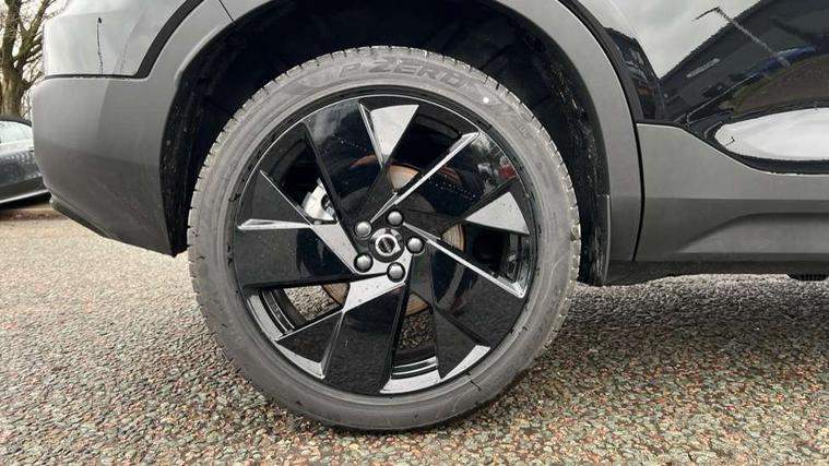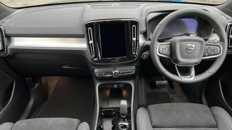 12.3" Progressive Driver Display, 9" centre console portrait touch screen, Adjustable steering wheel force, Android auto (Wired), Apple carplay (wired), Bluetooth handsfree system, Driver alert control, Driver assistance (pilot assist and adaptive cruise control), Driver awareness - Blind spot information system with steer assist, cross traffic alert with autobrake and rear collision warning and mitigation, E-call, Front and rear parking sensors, Front park assist, Google automotive services - Enabled entertainment apps, navigation with google maps, voice recognition with google assistant, Hands free power tailgate, Intelligent speed assistance, Lane keeping aid, Oncoming Lane Mitigation, Speed sensitive steering, Volvo cars services with app - Driving journal, emergency and breakdown call, engine remote start, remote door locking/unlocking and vehicle dashboard, Wireless/Inductive Mobile Phone Charging, Automatic transmission with start/stop and manual change functions, Dynamic chassis, DAB Digital radio, Steering wheel mounted remote controls, Adaptive brake lights with high level LED brake lights, Auto dimming feature for exterior door mirrors, Auto dimming interior mirror, Auto folding and heated power door mirrors, Automatic headlamp levelling, Automatic LED Headlights + Active high beam incorporating daytime running lights, Dark tinted windows - rear side windows and rear screen, Front aluminium tread plates, Front and rear electric windows, High gloss black front and rear skid plate, High gloss black front bumper deco, High gloss black front grille strikethrough and ironmark, High gloss black rear model, engine and volvo logo badges, High gloss black window trim, Home safe and approach lighting, Integrated roof rails in high gloss black, LED front fog lights, Puddle lights, Rain sensor with automatic windscreen wiper activation, Rear side wing doors, Rear wiper, Roof antenna, Roof spoiler, Visible VIN plate, 12V socket in front tunnel console and luggage compartment, 2-Zone electronic climate control with CleanZone air quality system and pollen filter, 3 seat bench in 2nd row, 3 Spoke tailored steering wheel with chrome trim, 60/40 versatile split folding rear seat, Centre console cupholders and storage, Charcoal carpet and floor mats, Charcoal headlining, Connect suede textile/microtech upholstery, Flexible load floor and grocery bag holder, Front headrests, Front seat cushion extensions, Glovebox bag hook, Heated front seats, Height adjustable passenger seat, Height/reach adjustable steering column, High gloss centre tunnel deco, High level illumination - Front door pocket, front side step (under door), tailgate, instrument panel, front door inlay, rear courtesy&reading lights, Integrated waste bin, Isofix attachments on outer rear seats, Load cover, Load protection net, Mid level illumination - Front footwell, luggage & glovebox compartment, front cabin courtesy & reading lights, illuminated vanity mirrors+ticket holder, Multi directional lumbar support for driver and passenger seat, Power driver seat with memory + exterior mirrors memory, Rear armrest with cupholders, Rear headrests, Single front passenger seat, Underfloor luggage compartment storage, Climate pack without heated front seats - XC40, 3x3 point rear seatbelts, City safety with steering support with Pedestrian + cyclist + front collision warning with full auto brake and rear auto brake, Driver and passenger airbags, Drivers knee airbag, Electronic parking brake with auto hold, First aid kit, Front and outer rear seatbelt reminder and pretensioners, Front seats SIPS airbags, Hill descent control - Off-road drive mode, Hill start assist, IC (Inflatable Curtains) - Full Length, Passenger airbag cut-off device, Power child locks on rear doors, Road sign information display, Run off Road Protection, SIPS (Side Impact Protection System), Slippery road and hazard light alert, Stability and Traction Control with Spin control, Engine Drag Control and Corner Traction Control, Tyre pressure monitoring system, Vehicle deceleration control with Anti-lock Brake System, Electronic Brake Distribution and Emergency Brake Assist, Warning triangle, WHIPS whiplash protection system - front, 2 x Key integrated remote control central locking including with deadlocking system and auto open/close windows, Anti-theft alarm including immobiliser/volume sensor + level sensor, Keyless drive includes keyless entry and keyless start, Locking wheel nuts, 20" 5 spoke high gloss black alloy wheels,