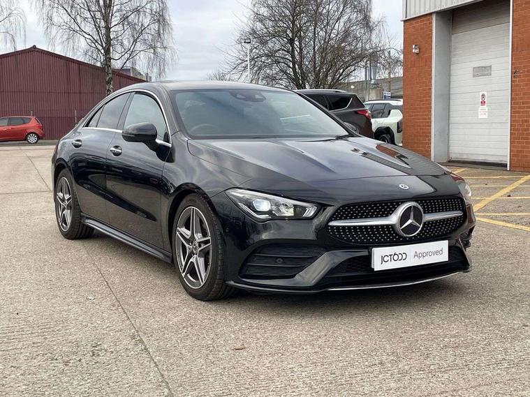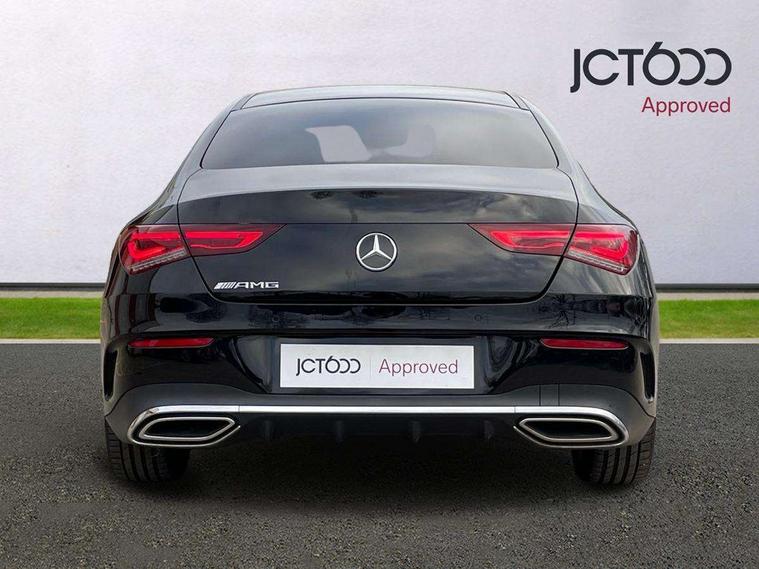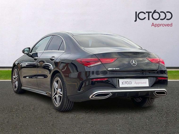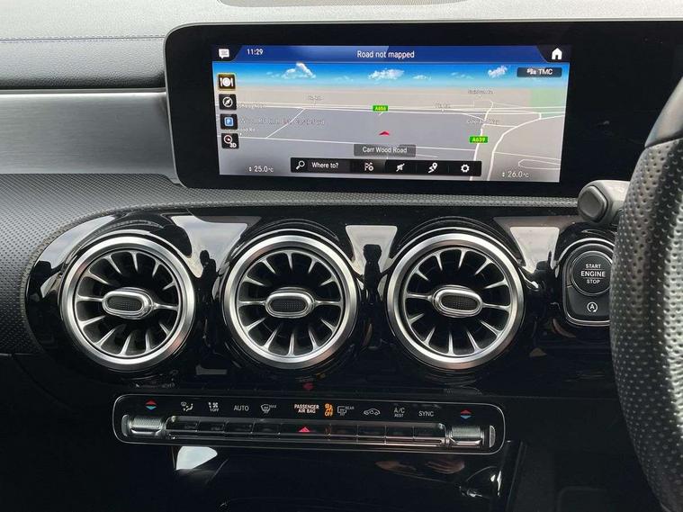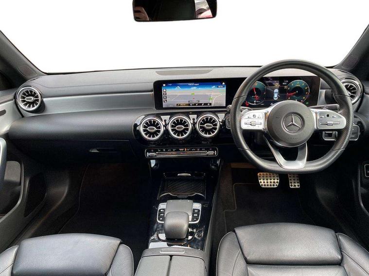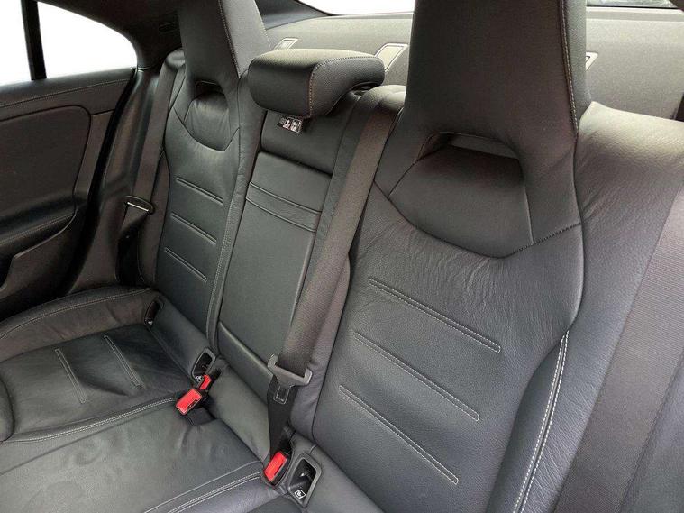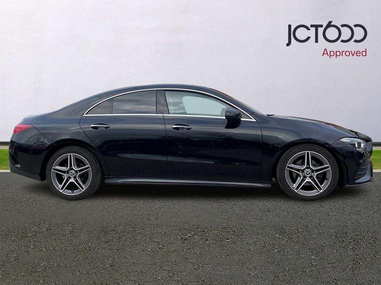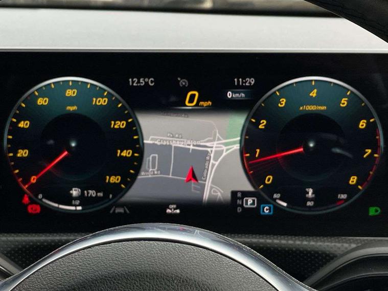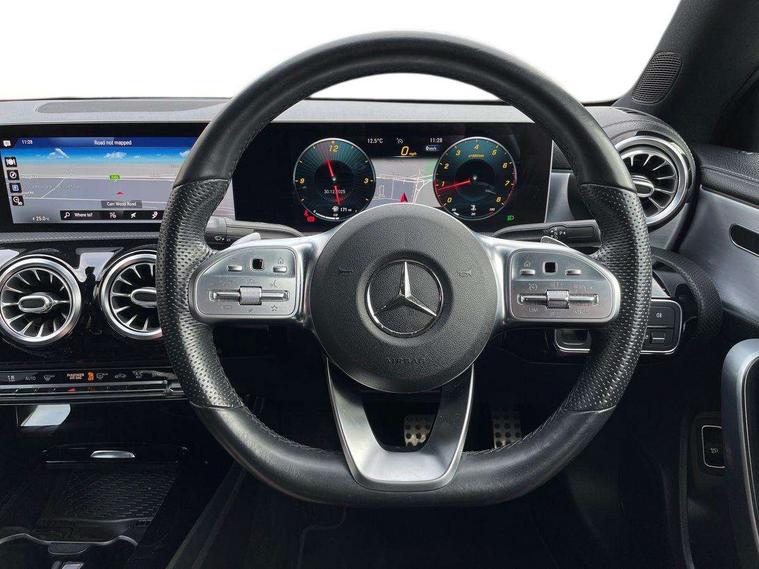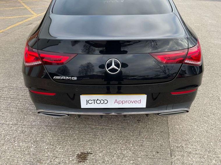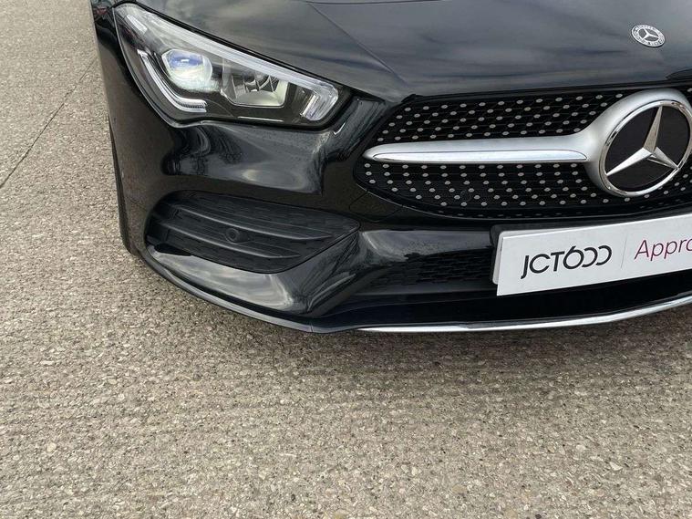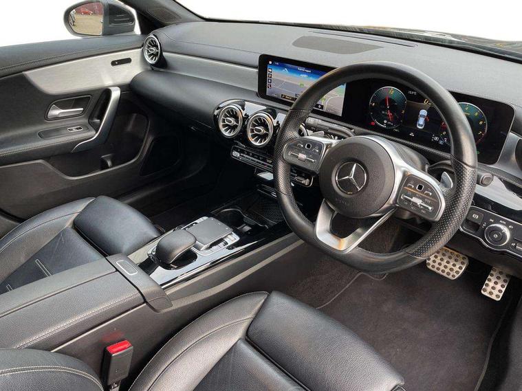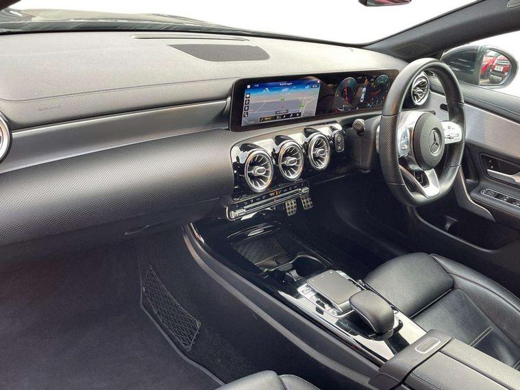 10.25 inch display instrument, 10.25" media display, 180 degree reversing camera, Active lane keeping assist, Active park assist with parktronic system, Attention assist - Monitors steering behaviour and long journey fatigue, Augmented Navigation, Cruise control + speed limiter, Direct steering, DYNAMIC SELECT with a choice of driving modes (ECO, Comfort, Sport, Sport+ and Individual), ECO start/stop function, Fluid level warning indicator for fuel, oil, coolant and washer fluid, Front and rear parking sensors, Hard-disk navigation, Hey Mercedes Voice activation, Lamp failure indicator, MBUX multimedia system with DAB digital radio and touchpad including satellite navigation, Outside temperature gauge, Pre-installation for car sharing, Preinstallation for Mercedes Benz link, Radio aerial integrated into front and rear windshields, Service indicator (ASSYST), Smartphone integration, Trip computer in multifunction display with current consumption indicator, Wireless charging, Lowered comfort suspension, Rear axle multi-link, DAB digital radio tuner, Mercedes Benz sound system (225w) includes mid-range sound system, Mid-range sound system, Rear stowage compartment with 1 front centre console, 2 x USB ports (type C), Active radiator shutters open for cooling air and close when not needed to improve aerodynamics and fuel efficiency, Adaptive brake lights, AMG body styling front apron, rear apron and side skirts, Beltline strips and weather strip in chrome, Body colour bumpers, Body colour door handles with chrome inserts, Diamond radiator grille pins in chrome with silver painted louvres and chrome insert, Electric windows, Electrically adjustable and heated door mirrors with integrated LED indicators, Exhaust system - Twin trapezoidal tailpipes in polished stainless steel, Headlamp assist automatic headlamp activation, Heated glass rear windscreen + timer control, High level LED third brake light, LED high performance headlamps with integrated LED daytime running lights, LED tail lamp, Privacy glass, Rain sensing windscreen wipers with two sensitivity settings, Rear fog lamp, 3 spoke flattened bottom nappa leather multifunction steering wheel with perforated leather in grip area, 40:20:40 split folding rear seats with backrest, Air conditioning - Two zone thermotronic luxury automatic climate control with display, Air vents with surround in silver chrome, Ambient lamp and signal, Automatic child seat recognition sensor, Black roof lining, Brushed stainless steel sports pedals with rubber studs, Cup holder and stowage compartment lighting, Floor mats with AMG lettering, Freight packaging with tie-down hooks, Front and rear Handle recess/closing handle light in left and right, Front centre armrest with stowage, Front door sills with Mercedes benz lettering, Front footwell lights, Front reading lamps in left and right console downlighter, Front seat cushion length adjustment, Front signal exit lamp in left and right, Front vanity light in left and right, Galvanished gear shift paddles on steering wheel, Heated front seats, Illuminated glove compartment stowage, Illuminated Mercedes benz door sills, Interior lighting - 64 colour Ambient lighting, Luggage net on driver/front passenger seat backrest, Manually adjustable front seats, Manually height and reach adjustable steering column, Oddments tray lighting, Rear armrest, Rear interior lamp, Rear reading lamp in support plate in left and right, Spectacles compartment for driver, Sport seats with fixed head restraints, Stowage compartment in centre console with retractable cover, Sunvisors with illuminated vanity mirrors, Touchpad illumination, Touchpad on center console, Twin front cupholders, Two outer rear seat isofix and top tether child seat fixing points, Light and sight pack - CLA, Mirror pack - CLA, Seat comfort pack - CLA, Active bonnet pedestrain safety measure which detects an impact and raises bonnet by 65mm, Active brake assist includes forward collision warning system with autonomous braking, Adaptive brake assist with hold function and hill start assist, Anti-lock braking system (ABS) with brake assist, Brake pad wear warning indicator, Childproof locks manually operated for rear doors and electrically operated for rear power windows, Crash responsive emergency lighting, Driver and front passenger head and sidebags, Driver and front passenger windowbags, Drivers knee airbag, Dual stage driver and front passenger airbags, Electric parking brake, Electronic stability programme with acceleration skid control, ESP curve dynamic assist, Front and rear seatbelt reminder, Front passenger seat occupancy sensor, Three point rear seat belts, Tyre pressure monitoring system, Warning triangle and first aid kit, Alarm system with immobiliser and interior protection -Thatcham category 1, Keyless entry lock/unlock, Keyless Go starting function, Remote central locking and crash sensor with emergency opening function, Light aluminium with longitudinal grain interior trim, 18" 5 twin spoke design alloy wheels painted in titanium grey with high sheen finish, Summer tyres, Tirefit tyre sealant kit,