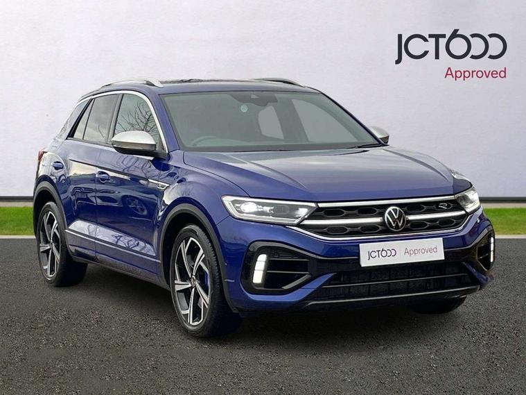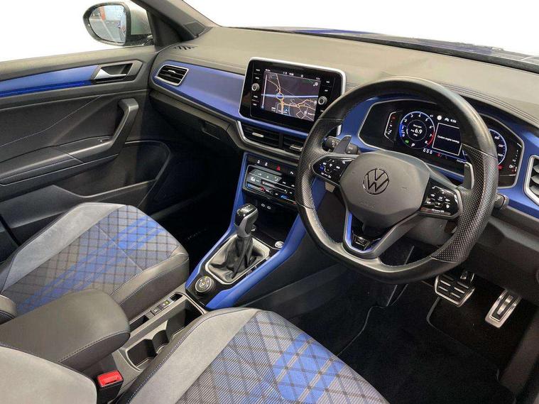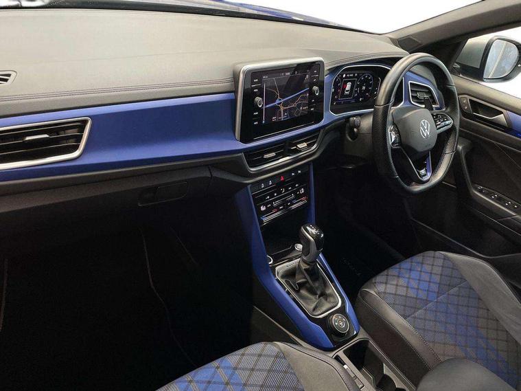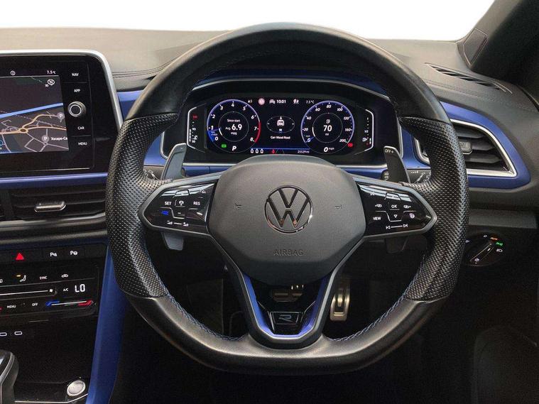 10.25" Digital cockpit pro, Bluetooth mobile phone interface, Driver alert system with fatigue detection, Driver tips and journey analysis, Emergency call service, Lane keeping system Lane Assist, Modified key software - reduce switch off time for key status change to Long no motion, Online services, Park assist including front and rear parking sensors, Service interval indicator, Tailgate/trunk lid release from outside, Think blue trainer driver tips and journey analysis, Warning sound and light for front seatbelts unfastened, Wireless app connect, Battery regeneration during braking, Four wheel drive, Start/stop function with battery regeneration, Diversity antenna for FM reception, Front and rear 6 speakers, Music playback - MP3, WMA and AAC files, Premium USB cable in choice of either Apple or Android smartphone compatibility, SD card slot, Simultaneous pairing of 2 compatible mobile devices, Title and cover art display, We Connect and We Connect Plus functionality, 3rd brake light, Auto dimming interior rear view mirror, Automatic hazard lights activation under emergency braking, Automatic headlight control with LED separate daytime running lights with coming/leaving home function, Extended roof spoiler, Exterior mirrors aspherical on driver side, convex on front passenger side, External USB type C socket and charging sockets, Front windscreen wiper with intermittent wipe and 4 position delay, Heated rear window, LED Plus headlamps, LED rear combination lamps, LED rear number plate lights, LED tail lamp rear comination lamps, Power windows with comfort operation and circuit breaker, Privacy glass for rear side windows and rear window, R-Line design body coloured bumpers, Rain sensor, Rear fog light on one side and reversing lights on both sides, Rear side wing doors, Rear wash/wipe with intermittent wipe setting, Remote electrically foldable door mirrors, puddle lights and reverse activated passenger's door mirror, 12V power socket in centre console, 3 rear head restraints, 3 seat bench in 2nd row, 4 load lashing points in luggage compartment, Air care climatronic air conditoning system with active combination filter and 2-zone temperature control, Ambient lighting - 10 colour (blue), Black roof lining, Chrome plated radiator grille inserts, air vent surrounds and light switch surrounds, Door and side trim panel with leatherette insert, Drawer under drivers seat, Driver/front passenger seat height adjustment, Front + rear carpet mats, Front centre armrest, Front cupholders x 2, Front footwell illumination, Front scuff plates with R logo in door apertures, Front sport seats, Heated leather wrapped multi function sports steering wheel with tiptronic, Instrument lighting, white adjustable panel illumination, Interior light delay, Isofix child seat preparation, Leather gearshift handle, LED interior light with switch off delay/dimmer and 2 front/rear LED reading lights, Load-through provision with cup holder when folded down ('Unsplit rear seat bench, split folding backrest, with centre armrest), Luggage compartment lighting, Lumbar support for driver's and front passengers seat, Non-folding front passenger seat backrest, R-logo stitching in floor mats, Single front passenger seat, Stainless steel pedals, Storage compartment in left and right luggage area, Storage compartment in rear doors, Storage compartments in driver and front passenger doors, Sunvisors with illuminated vanity mirrors, Variable boot floor, height adjustable and removable, Driver assistance pack without proactive passenger protection - T-Roc, R styling pack - T-Roc, 3 point height adj front seatbelts + pretensioners, 3 point seatbelts in outer rear with ECE label, ABS, Child locks on rear doors, Driver and front passenger airbag with front passenger airbag deactivation, Driver and front passenger safety-optimised head restraints, Drivers seatbelt reminder, Electronic parking brake, Electronic Stability Control (ESC) inc EDL (Electronic Differential Lock) and ASR (Traction Control), Front and rear passengers curtain airbag system including front side airbags, Front assist with city emergency braking and pedestrian monitoring, Front seat side impact airbags, Hill descent control, Hill start assist, Predictive pedestrian protection, Rear disc brakes, Single tone horn, Tyre pressure loss indicator, Volkswagen roadside assistance, Alarm with interior protection, Anti-theft alarm system with interior monitoring, backup horn, and towing protection, Keyless entry and start, Remote central locking with SAFELOCK, radio remote control with 2 remote control folding keys, Trims for alloy wheels,