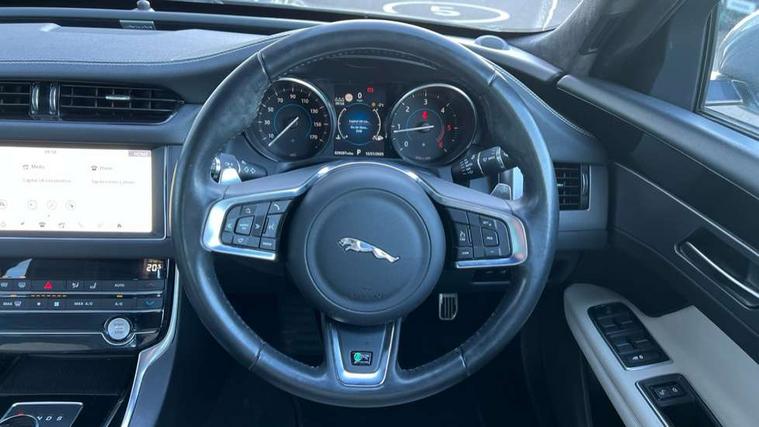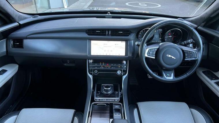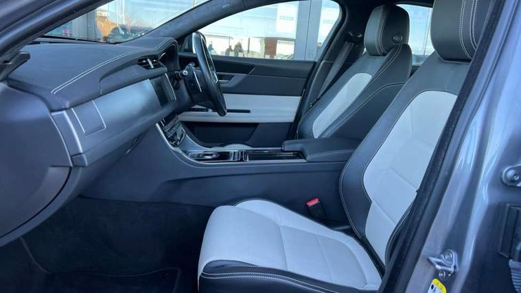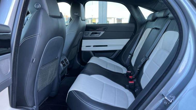 Analogue dials with 7" central TFT display, Android Auto, Apple car play, Bluetooth telephone connectivity, Electric power steering, InControl remote premium, Jaguar Voice front, Lane departure warning system, Outside temperature gauge, Pro services and wifi hotspot, Rear parking aid, Service interval indicator, Traffic sign recognition with adaptive speed limiter, Trip computer, 8 speed automatic transmission, Bluetooth audio streaming, DAB Radio (Digital Audio Broadcasting), InControl app, InControl protect, InControl Wi-fi, USB and auxiliary socket, Acoustic windscreen, Auto dimming eletrochromatic rear view mirror, Automatic headlights, Blue tinted glass, Body colour door mirrors, Body coloured extended side sills, Electric front/rear windows with one touch/auto up/down, Frameless auto dimming interior rear view mirror, Headlight power wash, Heat insulated glass, Heated rear window, LED tail lights, R-sport body kit, R-Sport front bumper, Rain sensor windscreen wipers, Tailgate/boot lid spoiler, Trailer stability assist, 12V accessory sockets - front and rear, 2nd row air vents, 3 rear seat head restraints, Auxilliary 12V power socket, Bright metal foot pedals, Chrome seat switches, Fixed rear bench seat, Front armrest, Front centre console storage box, Isofix child seat preparation, Jaguar sense, JaguarDrive selector, Luxtec wrapped instrument panel topper, Multifunction R-sport steering wheel, Overhead console with sunglasses holder, Perforated grained leather upholstery with contrast stitching, Premium carpet mats, R-Sport branded soft grain leather steering wheel, Rear armrest with twin cupholders, Rear storage compartment, Satin chrome trunk finish, Sports seats, Sunvisors with illuminated vanity mirrors, Tie down hooks in luggage area, Twin front cupholders, ABS+EBA, Anti-whiplash front headrests, Autonomous emergency braking, Brake pad warning light, Driver/Front Passenger airbags, DSC - Dynamic Stability Control, Electronic parking brake, Emergency brake assist, Front and rear curtain airbags, Front/rear seatbelt pre-tensioners, Hill start assist, Pedestrian contact sensing, Power child locks, Seatbelt warning, Side airbags, Three 3 point rear seatbelts, Torque vectoring brake, Traction control, Tyre pressure monitoring system, Deadlocks, Drive away door locking, Immobiliser, Keyless Start, Locking wheel nuts, Perimeter alarm, Remote central locking, Dark morse code aluminium instrument panel finisher,