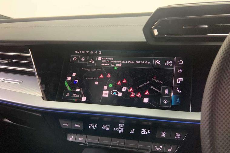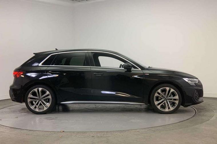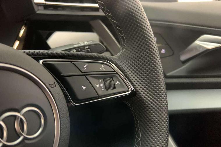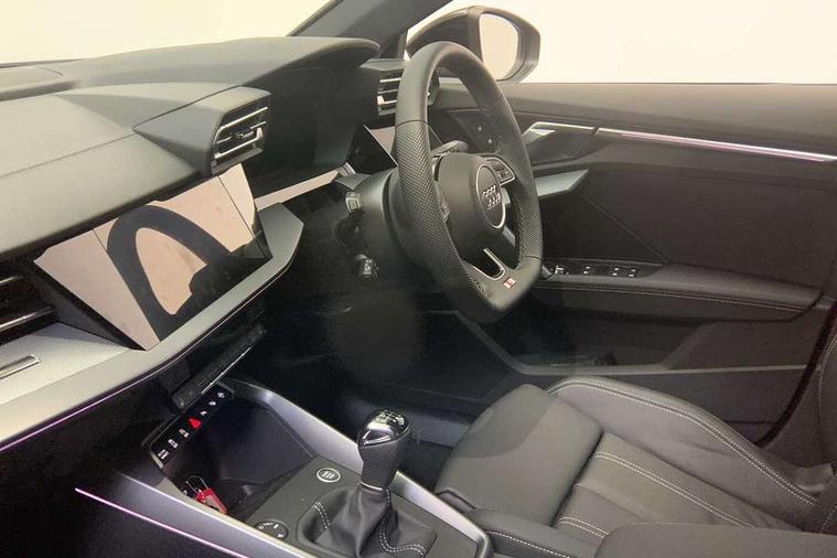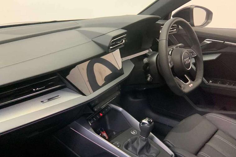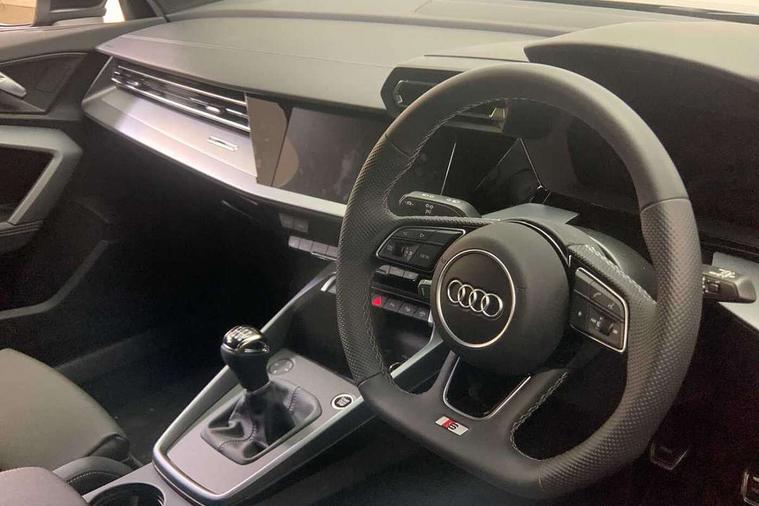 Adjustable speed limiter, Audi drive select, Audi smartphone interface with app store includes wireless Apple carplay, Android auto and Amazon alexa integration, Audi virtual cockpit plus - 12.3" full HD resolution dynamic digital instrument cluster, Automatic start/stop system with recuperation, Bluetooth interface, Camera based traffic sign recognition, Collision avoidance assistant, Cruise control, Distraction and Fatigue warning, e-Call (emergency call), Electromechanical power speed sensitive steering, Lane departure warning system, MMI Navigation Plus with high resolution 10.1" colour touch screen display, Park Assist with parking system Plus, Service indicator, Tailgate, Trip computer, Voice control system with natural language interaction, Sports suspension, Audi Phonebox light with wireless charging, Audi sound system - 10 loudspeakers including centre loudspeaker and subwoofer, DAB Digital radio, USB ports with charging function in the rear, Acoustic glass windscreen, All weather light, Aluminium window trim, Auto dimming frameless rear view mirror, Automatic dynamic range control, Body colour exterior mirrors, Chrome exhaust tailpipes, Dipped beam, main beam, position light and turning light, Electrically adjustable/heated/folding/auto dimming door mirrors with integrated LED indications + kerb view function for passenger side, Exterior model badging, Front and rear side air inlets in grained matt black with dark liquid chrome frame, Front electric windows, Front radiator grill in high gloss dark chrome, Heat insulating glass windscreen, Illuminated door sills with aluminium inserts at the front with S logo, Intersection light, LED 3rd brake light, LED brake lights, LED daytime running x3, LED headlights with LED rear lights and dynamic rear indicators, LED rear number plate lights, LED reverse light, LED tail lights, Light and rain sensors, Manoeuvring light, Motorway light, Privacy glass - dark tinted rear window, rear door and side windows, Rear diffuser and grill in grained matt black with inlay in dark liquid chrome, Rear electric windows, Rear side wing doors, Rear wiper, S line bumpers, S roof spoiler, Side S line emblems on front wings, Side sill trim in dark liquid chrome, Static cornering light, 12V socket and storage compartment in front centre console, 3 seat bench in 2nd row, 3 spoke flat bottomed multi-function leather sport steering wheel, 3-zone deluxe automatic air conditioning, 4 way electrically adjustable lumbar support for driver and front passenger, 40/20/40 split folding rear seat bench, Black cloth headlining, Black front and rear floor mats, Front and rear centre armrest in artificial leather with contrasting stitching on armrests and instrument panel, Front and rear headrests, Heated front seats, Height and reach adjustable steering wheel, Manual boot compartment lid, Manually adjustable front seats, Rear centre armrest with cupholder, S badging on the steering wheel, Seat side bolsters, Single front passenger seat, Stainless steel pedals and front footrest in black, Twin leather upholstery with front sports seats S embossed logo, Aluminium interior elements pack - A3, Multi-coloured LED interior lighting package with Multi-coloured contour lighting of instrument panel - A3, 3x3 point rear seat belts, Driver and front passenger airbag with passenger airbag deactivation, Electronic Stabilisation Control (ESC) including ABS, ASR and EDL, First aid kit with warning triangle and 2 safety vests, Front side airbags with head airbags and interaction airbag, Hill hold assist, Pre-sense front with pedestrian and cyclist detection, Seatbelt monitoring, Tyre pressure loss indicator, Anti theft alarm, Anti-theft wheel bolts, Electronically operated child locks, Immobiliser, Remote central locking with safelock, Black dashboard, Inlay in dark aluminium spectrum,