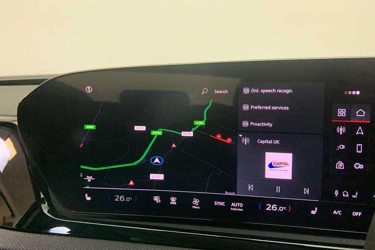 Adaptive cruise control, Advanced driver attention and fatigue montior, Audi application store, Audi assistant, Audi connect emergency call and service, Audi drive select, Audi virtual cockpit plus with 11.9" OLED colour display, Automatic start/stop system with coasting functionality, Camera based traffic sign recognition, Intersection assist, Lane departure warning, MMI navigation plus with high resolution 14.5" OLED touchscreen colour display, Park assist plus, Parking system plus with 360 display, Progressive steering with servotronic, Rear view camera, Smartphone interface, Swerve assist and turn assist, Traffic sign based speed limiter, Comfort suspension, Household plug type G, Hybrid propulsion system, Industrial connector CEE 32A, 230V, long and straight for the e-tron charging system, Mode 3 type 2 AC charging cable 22kW, 2 USB-C ports in both the front and rear, Audi sound system impressive sound with 8 loudspeakers including centre speaker and subwoofer, 6-channel amplifier with a total output of 180 watts, DAB digital radio reception, Smartphone compartment with wireless charging, ''e-hybrid' badge on the front wings, Aluminium roof rails, Aluminium window trims, Auto dimming rear view mirror, Body colour door mirrors, Door mirrors - electrically adjustable, heated, folding and auto dimming on both sides, Front and rear electric windows, Front door sill trims with aluminium inlays, LED headlights Plus incl. digital daytime running lights, turning light, all-weather light, motorway light, manouevring light and intersection light, LED rear lights pro incl. dynamic rear indicators and illuminated light strip with animated coming and leaving home function, LED third brake light, Rear and side windows with heat insulating glass, Rear side wing doors, Rear wash/wipe, Sport bumpers, radiator grille and diffuser in scandium grey and diffuser insert in matt selenite silver, White rhombus logo projection light in exterior mirrors, Windscreen with acoustic glazing, 3 rear headrests, 3 seat rear bench, 3-zone automatic climate control, 40:20:40 split folding rear seat bench with centre armrest and cup holders, Auxiliary air conditioning, Comfort front centre armrest, Courtesy lighting from tailgate (white), Front and rear floor mats, Front footwell lighting (white), Front seats with manual adjustment for position and 4-way electric lumbar support, Front sport seats with integrated head restraints, Glove box lighting, Heated front seats, i-Size child seat mounting on the front passenger side and outer rear seats, i-Size and top tether on the outer rear seats, LED roof module front and rear including reading lights, Luggage compartment lid, electrically opening and closing, Luggage compartment lighting on the right and left (white), Manual steering column height and depth adjustment, Rock grey cloth headlining, Single front passenger seat, Storage compartment lighting under the centre armrest, Twin spoke leather steering wheel with multi-function buttons with touch control, shift paddles and trim in chrome look, 3x3 point rear seat belts, Acoustic vehicle alerting system, Driver airbag, Electric child safety locks, First aid kit with warning triangle and vests, Front emergency brake assist, Front passenger airbag, Front passenger airbag deactivation, Front side airbags with head airbag system and front interaction airbag, Hill hold assist, Seat belt monitoring with rear seat occupant reminder, Tyre pressure loss indicator, Anti theft alarm, Anti-theft wheel bolts, Keyless Go, Accent surfaces and control buttons in matt black, Black dashboard with contrast stitching, Inlays in laser structure, black, Softwrap in impressum cloth, Tyre repair kit,