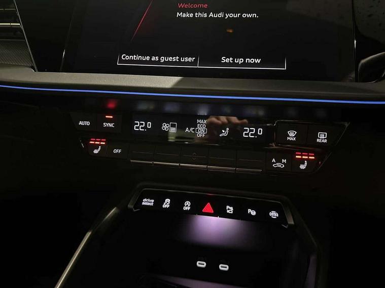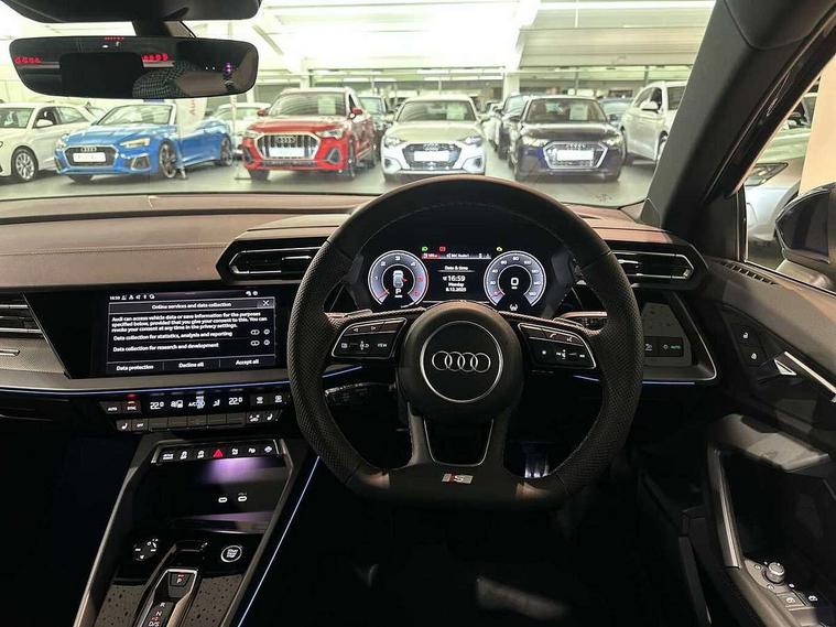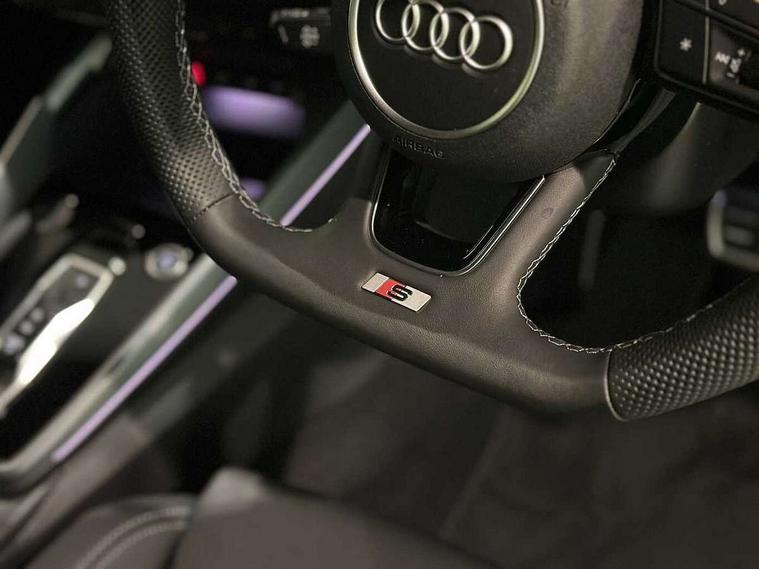 Adaptive cruise control (ACC), Adjustable speed limiter, Audi drive select (Auto, Comfort, Dynamic, Efficiency and Individual), Audi virtual cockpit plus - 12.3" full HD resolution dynamic digital instrument cluster, Automatic start/stop system with recuperation, Bluetooth interface, Camera based traffic sign recognition, Collision avoidance assistant, Driver attention and fatigue detection, e-Call (emergency call), Electromechanical power speed sensitive steering, Emergency assist, Intersection assist, Lane departure warning system, MMI Navigation Plus with high resolution 10.1" colour touch screen display, Park Assist with parking system Plus, Reversing camera, Service indicator, Smartphone interface with app store includes wireless Apple carplay, Android auto and Amazon alexa integration, Trip computer, Voice control system with natural language interaction, Diesel particulate filter, Sports suspension, Audi Phonebox light with wireless charging, Audi sound system - 10 loudspeakers including centre loudspeaker and subwoofer, DAB Digital radio, USB ports with charging function in the rear, Acoustic glass windscreen, All weather light, Aluminium window trim, Auto dimming frameless rear view mirror, Automatic dynamic range control, Body colour exterior mirrors, Dipped beam, main beam, position light and turning light, Electrically adjustable/heated/folding/auto dimming door mirrors with integrated LED indications + kerb view function for passenger side, Exterior model badging, Front and rear side air inlets in grained matt black with dark liquid chrome frame, Front electric windows, Front radiator grill in high gloss dark chrome, Heat insulating glass windscreen, Illuminated door sills with aluminium inserts at the front with S logo, Intersection light, Invisible tailpipe, LED 3rd brake light, LED brake lights, LED daytime running x3, LED headlights with LED rear lights and dynamic rear indicators, LED rear number plate lights, LED reverse light, LED tail lights, Light and rain sensors, Manoeuvring light, Motorway light, Privacy glass - dark tinted rear window, rear door and side windows, Rear diffuser and grill in grained matt black with inlay in dark liquid chrome, Rear electric windows, Rear side wing doors, Rear wiper, S line bumpers, S roof spoiler, Side S line emblems on front wings, Side sill trim in dark liquid chrome, Static cornering light, 12V socket and storage compartment in front centre console, 3 seat bench in 2nd row, 3 spoke flat bottomed leather multifunction sport steering wheel with gear shift paddles, 3-zone deluxe automatic air conditioning, 4 way electrically adjustable lumbar support for driver and front passenger, 40/20/40 split folding rear seat bench, Black cloth headlining, Black front and rear floor mats, Front and rear centre armrest in artificial leather with contrasting stitching on armrests and instrument panel, Front and rear headrests, Heated front seats, Height and reach adjustable steering wheel, i-Size child seat mounting on the front passenger side and outer rear seats, i-Size and top tether on the outer rear seats, Manual boot compartment lid, Manually adjustable front seats, Rear centre armrest with cupholder, S badging on the steering wheel, Seat side bolsters, Single front passenger seat, Stainless steel pedals and front footrest in black, Twin leather upholstery with front sports seats S embossed logo, Aluminium interior elements pack - A3, Multi-coloured LED interior lighting package with Multi-coloured contour lighting of instrument panel - A3, 3x3 point rear seat belts, Driver and front passenger airbag with passenger airbag deactivation, Electronic Stabilisation Control (ESC) including ABS, ASR and EDL, First aid kit with warning triangle and 2 safety vests, Front side airbags with head airbags and interaction airbag, Hill hold assist, Pre-sense front with pedestrian and cyclist detection, Seatbelt monitoring, Tyre pressure loss indicator, Anti theft alarm, Anti-theft wheel bolts, Electronically operated child locks, Immobiliser, Black dashboard, Inlay in dark aluminium spectrum,