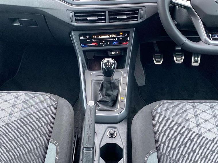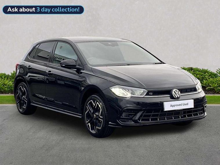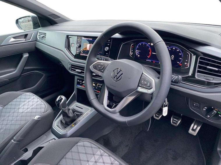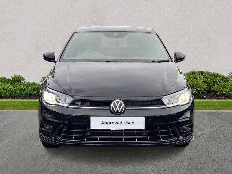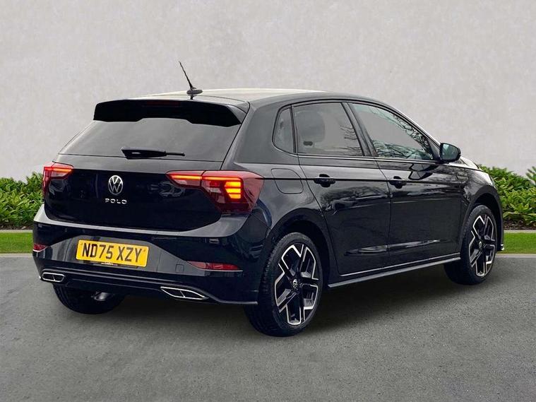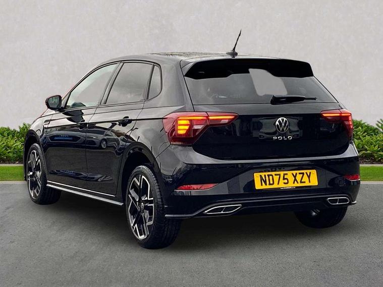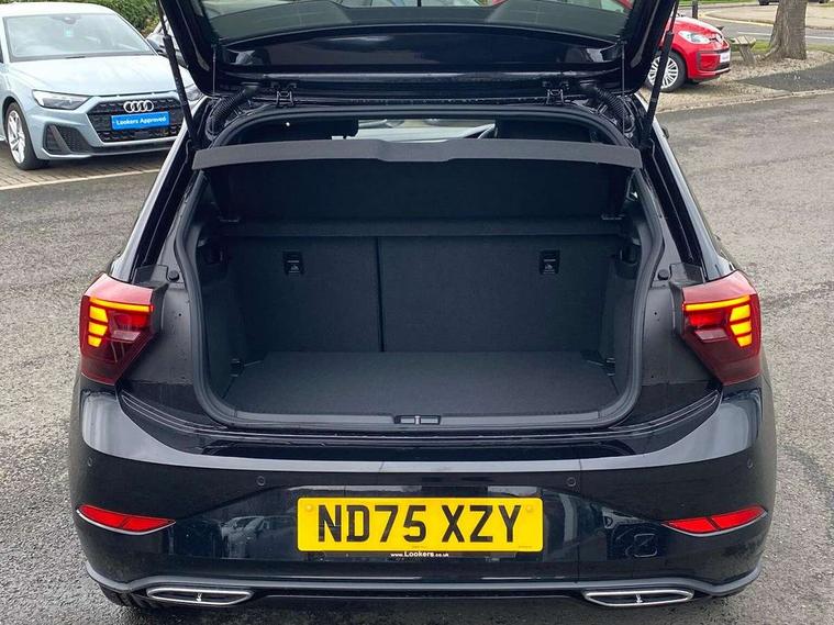 Advanced driver attention and drowsiness monitor, Bluetooth mobile phone interface, Digital Cockpit Pro with 10.25" Display, Dynamic road sign display, Emergency call service, Multifunction camera, Power assisted speed sensitive steering, Predictive adaptive cruise control without follow-to-stop and speed limiter, Preparation for We connect and We connect plus, Speedo and rev counter, electronic odometer, trip, service interval display and fuel gauge, Standard rear axle, Travel Assist - Lane keeping system and traffic jam assist, Travel assist including emergency assist, Trip computer, Warning signal and warning light for front and rear seatbelts not fastened, Washer fluid level indicator, Wireless app connect, Front wheel drive, Rear shock absorpion, Start-stop system with battery regeneration (recuperation - energy recovery during braking), DAB Digital radio, Diversity antenna for FM reception, Body colour bumpers, Body colour door handles, Electric front windows, Front scuff plates with R-Line logo, Heat insulating glass windscreen, Power folding adjustable/heated exterior mirrors and front passenger exterior mirror lowering function, Rear electric windows, Rear fog light, Rear side wing doors, Rear windscreen washer and wiper with interval delay, Third brake light, 12V power socket in centre console, 2 USB-C ports in the front, 2 USB-C charging sockets on the center console in the rear, 3 rear head restraints, 60/40 split folding rear seat and rear seat bench not split, Air care climatronic air conditoning system with active combination filter and 2-zone temperature control, Black roof lining, Carpet mats, front and rear, Chrome plated radiator grille inserts, air vent surrounds and light switch surrounds, Door and side trim panel, Driver and front passenger seat height adjustment, Driver/passenger sunvisors with illuminated vanity mirrors, Front centre armrest, Front footwell illumination, Front seat backrest storage pockets, Front sports comfort seats, Handbrake lever handle in leather, Headliner in recycled material, Isofix child seat preparation easy-fit (for two outer rear seats, and front passenger seat) compatible with I-size, Karoso artvelours cloth upholstery, Leather trimmed gear knob, LED interior light with switch off delay and dimmer, 2 reading lights front and rear, Luggage compartment cover, Luggage compartment floor, Luggage compartment lighting, Lumbar adjustment for front seats, Multifunction steering wheel, Single front passenger seat, Stainless steel pedals, Standard pedal cluster, Light and sight pack - Polo R-Line/Black Edition, 3 point height adj front seatbelts + pretensioners, 3x3 point rear seatbelts, ABS, Driver and front passenger airbag with front passenger airbag deactivation, Drivers and front passengers safety optimised head restraints, ESC (Electronic stability control) + EDL (Electronic Differntial lock) and ASR (Traction control), Extended and predictive pedestrian/ cyclist protection, Front curtain and side airbags with center airbag, Hill hold control, Manual child lock in rear doors, Single tone horn, Tyre pressure loss indicator, Alarm with interior protection, Anti-theft alarm system with interior monitoring, backup horn, and towing protection, Anti-theft wheel bolts, Electronic engine immobiliser, Chrome applications on rotary light, mirror adjustment, window regulator switches, outlet with frame in black, Dark grey anodised matt decorative inserts in dash and front door panels, 16" Coventry alloy wheels, Low rolling resistance tyres,