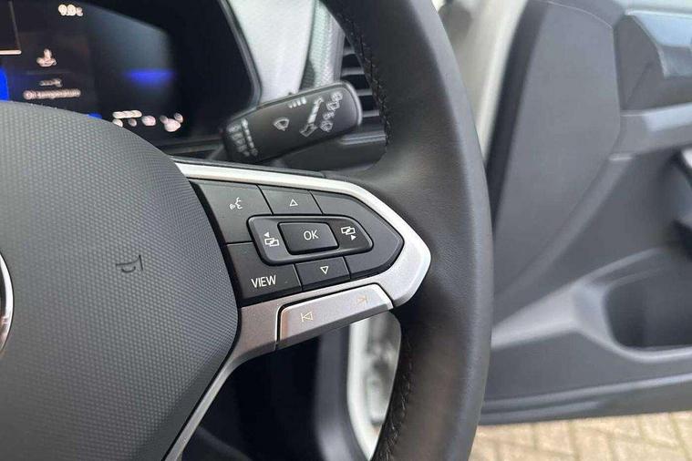 'Lights On' Reminder warning buzzer, 8" Digital cockpit, Advanced driver attention and drowsiness monitor, Bluetooth telephone and audio connection for compatible devices, Car information display, Dynamic road sign display, E-Sim card for online connectivity, eCall emergency call system, Front and rear parking sensors, Front assist, forward collision warning, autonomous emergency braking and speed limiter, Low washer fluid warning light, Multifunction computer with visual gear change recommendation for fuel consumption, Multifunction front facing camera for distance control, Operating permit alteration, Power assisted steering, Predictive adaptive cruise control, Preparation for navigation system with media and internet package, Preparation for We connect and We connect plus, Rear view camera, Semi-automated driving assistance, travel assist including lane keeping system Lane Assist and emergency assisst, Side assist, Speedo, rev counter, electronic odometer, trip, service interval display, exterior temperature and fuel gauge, Warning sound and light for doors and tailgate open, Warning sound and light for front seatbelts unfastened, Wireless Car net app connect with Apple CarPlay, combined functionality of Apple CarPlay/Android Auto and MirrorLink, Wireless charging, Misfuel prevention device, Start-stop system with battery regeneration (recuperation - energy recovery during braking), 2 USB C ports in front, 2 USB charging sockets on the centre console in the rear charging capacity upto 45W, DAB Digital radio receiver, Diversity antenna for FM reception, Multi device interface (MDI) with USB connection, Music playback - MP3, WMA and AAC files, Radio, Automatic dimming interior rear view mirror, Automatic hazard lights activation under emergency braking, Automatic headlight control with LED separate daytime running light and coming home and leaving home feature, Body colour door handles, Body colour door mirrors, Body coloured bumpers, Dynamic headlight range control with self adjusting whilst driving, Electric folding door mirror, adjustable, heated with front passenger exterior mirror lowering function, Exterior mirrors convex on the left and aspherical on the right, Front and rear electric windows, Galvanised body, Heat insulating and laminated safety glass windshield, Heat insulating darkened glass in side and rear windows, High Beam Assist, automatic sensing for switching between dipped and main beam, LED rear combination lights, LED third brake light, Lower door sills and door pillars in black, Rain sensor, Rear fog light on one side, reversing light on both sides, Rear side wing doors, Rear window aerial, Rear window wiper with intermittent control, Reflectors in all doors, Scuff plates, Tailgate with integrated roof spoiler, 12V Accessory socket in centre console, 3 rear head restraints, 3 seat bench in 2nd row, 60/40 split folding rear seat backrest, Ambient lighting and logo projection, Ceramique roof lining, Cloth upholstery, Door and side trim panel, Driver and front passenger sunvisor with vanity mirror, Dust and pollen filter, Front and rear reading lights X 2, Front centre armrest with storage compartment, Front seat back storage pockets, Glove compartment door with light, Heating and fresh air system with 4 stage blower, Height/reach adjust steering wheel, Instrument lighting white adjustable panel illumination, Interior light with switch off delay and dimmer, Isofix anchors for child seats on outer rear seats and front passenger seats, Leather gearshift handle, Leather wrapped multifunction steering wheel, Luggage compartment floor, Luggage compartment lighting, Manual front seats with height adjustment, Padded dashboard, Removable luggage compartment cover, Single front passenger seat, Storage compartment in drivers and front passengers door, Unsplit sliding rear seat bench, Without drawers under front seats, 3 point outer rear seat belts with ECE label, 3 Point seatbelt for centre rear seat, Anti-lock Braking System (ABS) with Hydraulic Brake Assist (HBA), Automatic post collision braking system, Disc brakes in front, Driver and front passenger safety-optimised head restraints, Drivers and Front Passengers airbags with front passengers airbag deactivation switch, Drum brakes in rear, ESC with EDL and ASR (traction control), Extended and predictive pedestrian/cyclist protection, Front and rear passenger curtain airbag system including front side airbags, Height adjustable front 3 point seatbelts + pretensioners, Hill start assist, Pre crash preventive occupant protection, Proactive passenger protection system in combination with front assist, Rear door child safety locks, Rigid safety cell with front and rear crumple zones, Single tone horn, Tyre pressure loss indicator, Volkswagen roadside assistance, Alarm with interior protection, Anti theft alarm system, Electronic engine immobiliser, Remote keyless entry using key fob including Start/Stop button on centre console with SAFELOCK, Remote tailgate unlocking using key fob, Low rolling resistance tyres,