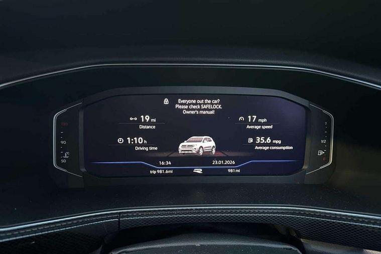 'Lights On' Reminder warning buzzer, 10.25" Digital cockpit pro, Advanced driver attention and drowsiness monitor, Bluetooth telephone and audio connection for compatible devices, Car information display, Driver profile selection including ECO function, Dynamic road sign display, E-Sim card for online connectivity, eCall emergency call system, Front and rear parking sensors, Front assist, forward collision warning, autonomous emergency braking and speed limiter, Low washer fluid warning light, Mobile phone interface with inductive charging, Multifunction computer with visual gear change recommendation for fuel consumption, Multifunction front facing camera for distance control, Operating permit alteration, Power assisted steering, Predictive adaptive cruise control, Preparation for navigation system with media and internet package, Preparation for We connect and We connect plus, Semi-automated driving assistance, travel assist including lane keeping system Lane Assist and emergency assisst, Side assist, Speedo, rev counter, electronic odometer, trip, service interval display, exterior temperature and fuel gauge, Warning sound and light for doors and tailgate open, Warning sound and light for front seatbelts unfastened, Wireless Car net app connect with Apple CarPlay, combined functionality of Apple CarPlay/Android Auto and MirrorLink, Wireless charging, Misfuel prevention device, Start-stop system with battery regeneration (recuperation - energy recovery during braking), 2 USB C ports in front, 2 USB charging sockets on the centre console in the rear charging capacity upto 45W, DAB Digital radio receiver, Diversity antenna for FM reception, Multi device interface (MDI) with USB connection, Music playback - MP3, WMA and AAC files, Radio, Advanced high beam control dynamic light assist, Automatic dimming interior rear view mirror, Automatic hazard lights activation under emergency braking, Automatic headlight control and coming home and leaving home feature, Black roof rails, Body colour door handles, Body coloured bumpers, Cornering light and poor weather light, Dynamic headlight range control, Electric folding door mirror, adjustable, heated with front passenger exterior mirror lowering function, Exterior mirror housings in black, Exterior mirrors convex on the left and aspherical on the right, Front and rear electric windows, Front door sill protectors with R-Line logo, Galvanised body, Heat insulating and laminated safety glass windshield, Heat insulating darkened glass in side and rear windows, Illuminated molding between headlamps, IQ.Light LED matrix headlamps with LED separate daytime running light, LED rear tail lights with dynamic turn signal, LED third brake light, Lower door sills and door pillars in black, Privacy glass for rear side windows and rear window, Rain sensor, Rear fog light on one side, reversing light on both sides, Rear side wing doors, Rear window aerial, Rear window wiper with intermittent control, Reflectors in all doors, Scuff plates, Tailgate with integrated roof spoiler, 12V Accessory socket in centre console, 2 Front and rear reading lights incorporating LED technology, 3 rear head restraints, 3 seat bench in 2nd row, 60/40 split folding rear seat backrest, Air care climatronic 2 zone air conditioning system, Ambient lighting and logo projection, Brushed stainless steel pedals, Chrome plated radiator grille inserts, air vent surrounds and light switch surrounds, Cloth upholstery, Comfort front sport seats, Door and side trim panel, Driver and front passenger sunvisor with vanity mirror, Dust and pollen filter, Front + rear carpet mats, Front centre armrest, Front centre armrest with storage compartment, Front footwell illumination, Front seat back storage pockets, Glove compartment door with light, Heated front seats, Heating and fresh air system with 4 stage blower, Height/reach adjust steering wheel, Instrument lighting white adjustable panel illumination, Interior light with switch off delay and dimmer, Isofix anchors for child seats on outer rear seats and front passenger seats, Leather gearshift handle, Leather wrapped multifunction steering wheel with paddle shift, Luggage compartment floor, Luggage compartment lighting, Manual front seats with height adjustment, Padded dashboard, Removable luggage compartment cover, Single front passenger seat, Storage compartment in drivers and front passengers door, Titanium black roof lining, Unsplit sliding rear seat bench, Without drawers under front seats, 3 point outer rear seat belts with ECE label, 3 Point seatbelt for centre rear seat, Anti-lock Braking System (ABS) with Hydraulic Brake Assist (HBA), Automatic post collision braking system, Disc brakes in front, Disc brakes in rear, Driver and front passenger safety-optimised head restraints, Drivers and Front Passengers airbags with front passengers airbag deactivation switch, ESC with EDL and ASR (traction control), Extended and predictive pedestrian/cyclist protection, Front and rear passenger curtain airbag system including front side airbags, Height adjustable front 3 point seatbelts + pretensioners, Hill start assist, Pre crash preventive occupant protection, Proactive passenger protection system in combination with front assist, Rear door child safety locks, Rigid safety cell with front and rear crumple zones, Single tone horn, Tyre pressure loss indicator, Volkswagen roadside assistance, Alarm with interior protection, Anti theft alarm system, Anti theft wheel bolts, Electronic engine immobiliser, Remote tailgate unlocking using key fob, Black decorative trims, Titanium Black Decorative inserts - R Line, 18" Misano black diamond turned alloy wheels, Low rolling resistance tyres,