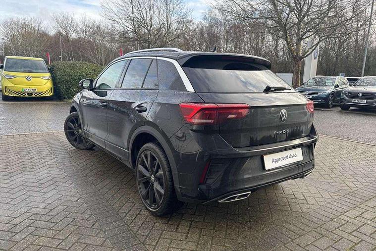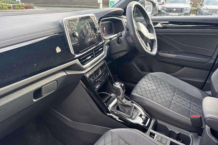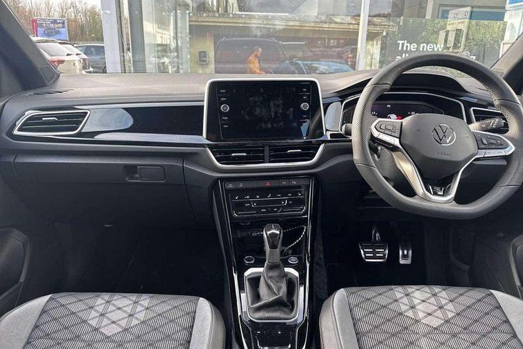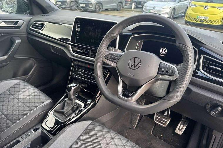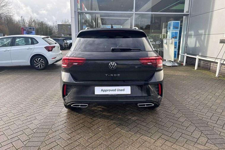 10.25" Digital cockpit pro, Advanced driver attention and drowsiness monitor, Emergency call service, Lane keeping system Lane Assist, Mobile phone interface, Modified key software - reduce switch off time for key status change to Long no motion, Online services, Park assist including front and rear parking sensors, Service interval indicator, Tailgate/trunk lid release from outside, Think blue trainer driver tips and journey analysis, Warning sound and light for front seatbelts unfastened, Wireless app connect, Battery regeneration during braking, Start/stop function with battery regeneration, DAB Digital radio, Diversity antenna for FM reception, Front and rear 6 speakers, Music playback - MP3, WMA and AAC files, Premium USB cable in choice of either Apple or Android smartphone compatibility, SD card slot, Simultaneous pairing of 2 compatible mobile devices, Title and cover art display, We Connect and We Connect Plus functionality, Auto dimming interior rear view mirror, Automatic hazard lights activation under emergency braking, Automatic headlight control with LED separate daytime running lights with coming/leaving home function, Body coloured exterior mirror housings and door handles, Electrically adjustable and heated door mirrors, Extended roof spoiler, Exterior mirrors aspherical on driver side, convex on front passenger side, External USB type C socket and charging sockets, Front windscreen wiper with intermittent wipe and 4 position delay, Heated rear window, LED 3rd brake light, LED rear combination lamps, LED rear number plate lights, Power windows with comfort operation and circuit breaker, Privacy glass for rear side windows and rear window, R-Line design body coloured bumpers, Rain sensor, Rear exhaust tailpipe, Rear fog light on one side and reversing lights on both sides, Rear side wing doors, Rear wash/wipe with intermittent wipe setting, Remote electrically foldable door mirrors, puddle lights and reverse activated passenger's door mirror, 12V power socket in centre console, 3 rear head restraints, 3 seat bench in 2nd row, 4 load lashing points in luggage compartment, Air care climatronic air conditoning system with active combination filter and 2-zone temperature control, Black roof lining, Chrome plated decorative trims, Chrome plated radiator grille inserts, air vent surrounds and light switch surrounds, Door and side trim panel with leatherette insert, Front + rear carpet mats, Front centre armrest, Front cupholders x 2, Front footwell illumination, Front reading light, Front scuff plates with R Line logo, Front seat back storage pockets, Glove compartment door with light, Instrument lighting, white adjustable panel illumination, Interior ambient lighting and surround lighting, Interior light delay, Isofix child seat preparation, Leather gearshift handle, Load-through provision with cup holder when folded down ('Unsplit rear seat bench, split folding backrest, with centre armrest), Luggage compartment lighting, Single front passenger seat, Stainless steel pedals, Storage compartment in left and right luggage area, Storage compartment in rear doors, Storage compartments in driver and front passenger doors, Sunvisors with illuminated vanity mirrors, Variable boot floor, height adjustable and removable, Driver assistance pack without proactive passenger protection - T-Roc, 3 point height adj front seatbelts + pretensioners, 3 point seatbelts in outer rear with ECE label, ABS, Child locks on rear doors, City emergency braking and pedestrian monitoring, Driver and front passenger airbag with front passenger airbag deactivation, Driver and front passenger safety-optimised head restraints, Drivers seatbelt reminder, Electronic parking brake, Electronic Stability Control (ESC) inc EDL (Electronic Differential Lock) and ASR (Traction Control), Front and rear passengers curtain airbag system including front side airbags, Hill start assist, Predictive pedestrian protection, Rear disc brakes, Two tone horn, Tyre pressure loss indicator, Volkswagen roadside assistance, Piano black decorative inserts in dashboard and front door trim panels, Trims for alloy wheels,