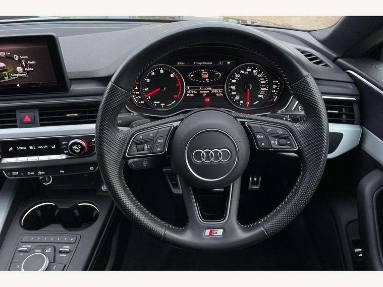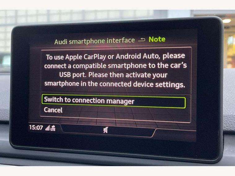 7" Colour driver information system, Audi connect, Audi drive select, Audi parking system plus with front and rear sensors, Audi smartphone interface, Automatic start-stop system with coasting functionality and efficiency programme, Bluetooth interface, Electro-mechanical power steering, MMI Navigation, Power tailgate, Service interval indicator, Voice control system, CD player, DAB Digital radio, Two SDXC card slots, Air inlet in matt aluminium with horizontal inlay, Aluminium roof frame and window trim, Auto dimming rear view mirror, Black grained rear grille, Body colour bumpers, Body coloured door mirrors, Chrome plated exhaust pipe, Electric adjustable heated door mirrors, Electric front windows, Front fog lights, High beam assistant, High gloss black B pillar trims and triangular rear door trim, Honeycomb side air inlet in titan black, Rain and light sensors, Rear diffuser in Twilight grey matt with honeycomb grille, S line badges on front wings, S Line body styling, S Line front and rear bumpers, S Line side skirts in black, S line sill plates, Twilight grey matt radiator grille in matt aluminium inlay, Windscreen with acoustic glazing, 2 x USB charging port with aux input socket, 40/20/40 split folding 3 seater rear bench seat, Adjustable steering column, Black headlining, Black perforated leather gearknob, Centre console with cupholders, Contrast stitching on seats, steering wheel and gear lever gaiter, Deluxe 3 zone electronic climate control, Front centre armrest, Front head restraints, Front/rear floor mats, Gearshift paddles, Illuminated door sill trim with S logo, ISOFIX child seat mounting and top tether, Jack and tool kit, Luggage compartment mat, Rear headrests, S embossed logo on front sport seats, Stainless steel pedals and foot rest, Non Smokers pack, 3x3 point rear seatbelts, 6 airbags - Driver, front passenger, curtain and side airbags, Electromechanical parking brake, Electronic Stabilisation Control (ESC) including ABS, ASR and EDL, Front passenger airbag deactivation, Height adjustable front seatbelts, Hill hold function, Multi-Collision braking, Pop-up bonnet for pedestrian protection, Pre sense city, Seatbelt monitoring, Tyre pressure warning, Variable restraint system, Warning triangle and first aid kit, Anti theft alarm system, Anti theft wheel bolts, Immobiliser, Keyless Go, Remote central locking, Tyre repair kit,