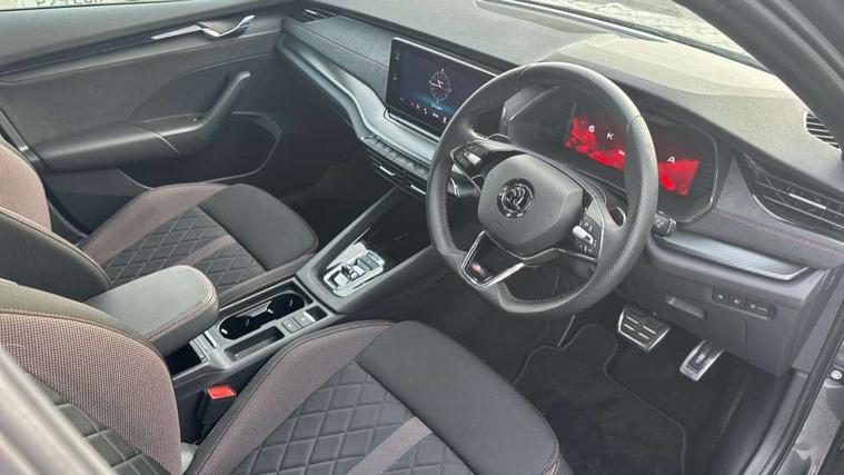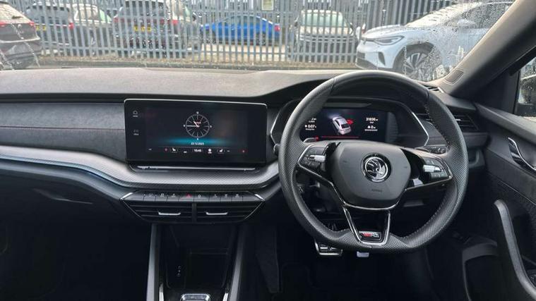1x USB Type C port in rear view mirror (charging only), 2x USB Type C ports in rear of front centre armrest (charging only), Bluetooth system, Columbus satellite navigation with 10" touchscreen display, Driver fatigue sensor, eCall emergency system, Front and rear parking sensors with manoeuvre assist, Front assist system, Progressive dynamic steering, Speed limiter, Turn Assist, Virtual Cockpit - 10.25" digital display, Virtual pedal with electrically operated boot door (Rear LED lights (high functionality), dynamic indicators, Voice control system, Wireless SmartLink for Apple Car Play, Front and rear stabilizers, 2x USB Type C ports (for charging and data transfer), 8 Speakers, DAB Digital radio, Aero front windscreen wipers with intermittent function, Auto dimming rear view mirror, Body colour door handles, Chrome exhaust tailpipes, Door sills with vRS logo, Electric front and rear windows, Exterior gloss black sports styling including front grille, side strip, window surrounds, door mirror and badging, Full LED Matrix headlights with AFS, rear LED lights (high functionality) and dynamic indicators and cornering front fog lights, Headlight washers, Heated rear windscreen, High level third brake light, Ice scraper in fuel cap, LED daytime running lights, Rain and light sensors, Rear fog light on one side, Rear privacy glass, Rear side wing doors, vRS bumpers and lip spoiler, 3 rear headrests, 3 seat bench in 2nd row, 4 foldable roof handles, Aluminium pedals, Black headlining, Black microsuede padded dash panel with red contrast stitching, Chrome inner door handles, Front centre armrest, Front head restraints, Heated front seats, Illuminated glovebox, Leather trimmed gearshift lever, Luggage compartment lighting x1 light, Mechanical rear seat release, Parcel shelf - folding, Single front passenger seat, Sunglasses storage, Textile floor mat set, Three spoke leather sports multifunction steering wheel with paddles, Ticket holder, Umbrella in door panel, Unsplit rear bench seat and split folding backrest, LED interior light pack - Octavia, 3 point front/outer rear seatbelts+pre-tensioners, Alarm with interior monitoring, tilt sensor and back up horn, Automatic door unlocking in case of crash, Automatic fuel cut off in case of crash, Automatic warning lights in case of emergency braking, Curtain airbags and front side airbags, Driver and front passenger airbags, Drivers knee airbag, Electronic parking brake, ESC including ABS, EBV, MSR, ASR, EDS, HBA, DSR, Front and rear disc brakes, Front central airbag, Hill hold control, Hill start assist, ISOFIX on front passenger seat and outer rear seats, Manual rear child locks, Passenger airbag deactivate switch, Pro active services, Red brake calipers, Two tone horn, Tyre pressure monitor, Visual and acoustic seat belt reminder, Warning reflectors in front door, Door locks with immobiliser, Keyless entry and start/stop including rear doors, Remote central locking, Carbon optic decorative inserts, Gloss black air vent surrounds, 19" Altair anthracite alloy wheels,