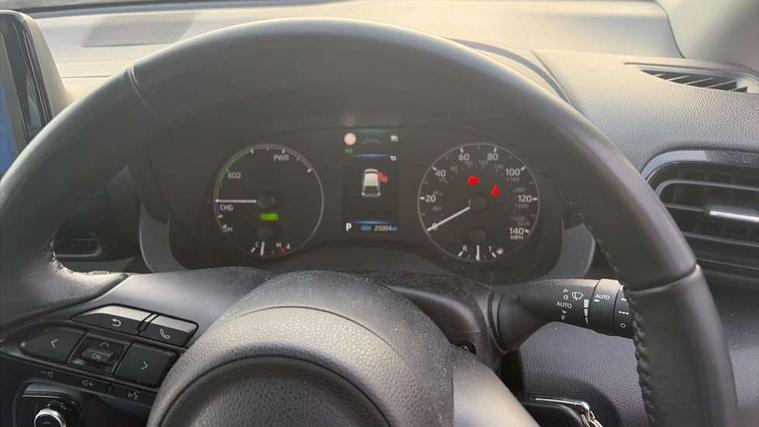 4.2" coloured TFT multi information display with analogue speedometer, Adaptive cruise control, Adjustable speed limit with speed warning, Bluetooth connectivity, E-call, Electric power steering, Hybrid energy display, Multi information display switches on steering wheel, Reversing camera, Smartphone integration with Apple CarPlay and Android auto, Smartphone integration with Apple CarPlay/Android Auto, Tailgate, Voice recognition, Vehicle Stability Control (VSC), 4 speakers, 9" Multimedia touch display, Toyota Touch 3 system with DAB radio, USB connection, Acoustic windscreen glass, Auto windscreen wipers, Automatic headlights, Body coloured door mirrors, Bulb indicators, Chequered front grille, Daytime running lights, Electric adjustable heated door mirrors, Follow me home headlights, Front auto power windows with anti jam protection, Front halogen fog lights, Halogen projector headlights, LED High mounted stop lamp, Manual headlight levelling, Rain sensor, Rear auto power windows with anti jam protection, Rear side wing doors, Rear spoiler, Rear wiper, Shark fin antenna, Turning signal integrated indicators in door mirrors, Variable front intermittent wipers, 3 adjustable rear headrests, 3 seat bench in 2nd row, 3 spoke leather steering wheel, 60/40 split folding rear seat, Active headrests, Adjustable boot height, Auto air conditioning, Coat hooks in rear grab handles, Cup holders (2 front & door), Data Communication Module (DCM) connected services, Fabric upholstery, Front armrest, Glovebox, Grey roof lining, Height adjustable driver's seat, Isofix seat fixing, Leather gearshift, Pollen filter, Shopping bag hooks, Single front passenger seat, Tilt/telescopic steering column, 3 point seatbelts on all rear seats, ABS+EBD+Brake assist, Electronic parking brake, Emergency brake light system (EBS), Front passenger airbag on/off switch, Front seatbelt reminder, Hill start assist control (HAC), Rear child proof door locks, Rear seat belt reminder, Supplemental Restraint System (SRS) 8 airbags: Driver & passenger's airbags, dual side curtain airbags, side impact airbags, front centre airbag, Toyota Safety Sense 3 with over the air updates, Tyre pressure warning system, 2x Master key, Alarm/immobiliser, Remote powered central double locking doors, Soft touch instrument panel, Space saver spare wheel,