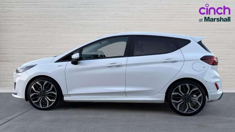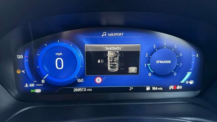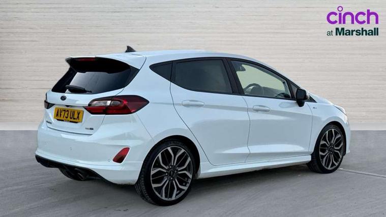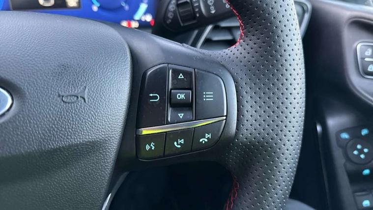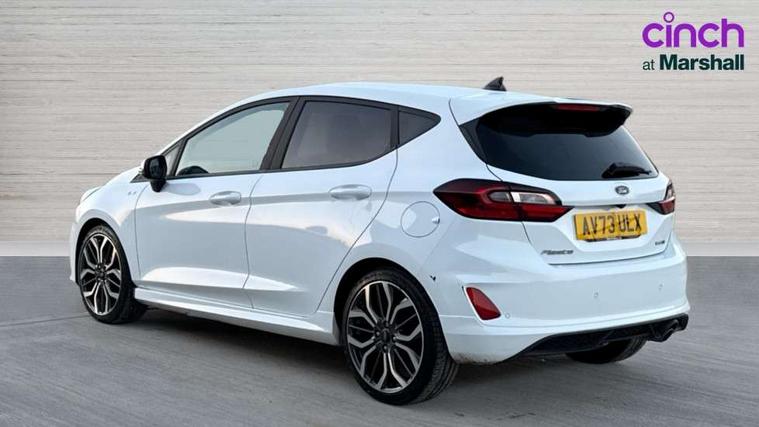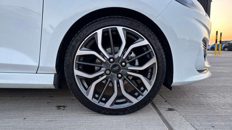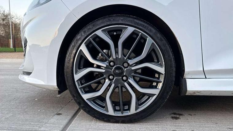 4.2" TFT instrument cluster screen, Bluetooth system, Electric power steering, Ford easy fuel, Rear parking distance sensors, Selectable drive modes (Normal, Sport, Track), Traffic sign recognition, Trip computer, Sports suspension, 2 USB ports, Auxiliary input socket, B&O Premium audio system with 8" touchscreen, 10 speakers, 360 degree sound system, Ford SYNC 3 navigation system and Ford pass connect, DAB Digital radio, Steering wheel mounted controls, Auto high beam, Body colour bumpers, Body colour door handles, Body colour large rear spoiler, Body coloured electrically operated and heated door mirrors with side indicators, Cornering front fog lights, Electric front windows/one touch facility, Electric rear windows, LED Night signature to rear lights, Power foldable door mirrors with puddle lights, Quickclear heated windscreen, Rain sensing wipers and auto dimming rear view mirror, Rear privacy glass, Rear wiper, Unique ST-Line upper grille & full bodystyling kit with ST-Line wing badges, 3 spoke flat bottomed leather steering wheel, 60/40 split folding rear seat, Adjustable head restraints, Black headlining, Boot carpet, Centre console with opening armrest, 2x cupholders, 12v and USB, Chrome inner door handles, Drivers and Passenger lumbar support, EATC - Electronic Auto Temperature control, Footwell illumination, Front floor mats in velour, Front map reading lights, Front seat and rear pockets, Height adjustable passenger seat, Illuminated glovebox, Leather gaiter, LED ambient lighting, Load area light, Manual 4-way driver seat adjust, Overhead console with sunglasses holder, Pollen filter, Rake/reach adjustable steering wheel, Sensico wrapped steering wheel, Sports front seats, NCAP Pack - Fiesta, ST-Line X Trim Pack - Fiesta, 3 point seatbelts on all rear seats, ABS+EBA, Curtain airbags, Driver and passenger airbags, Drivers knee airbag, Electronic stability control with hill start assist, Front passenger airbag deactivation, Front side airbags, Seatbelt warning, Two tone horn, Tyre pressure monitoring system, Ford keyfree system with Keyless entry and keyless start, MyKey system, Remote central locking & engine immobiliser, Thatcham Cat.1 alarm, 18" 5 spoke alloy wheels with rock metallic machined finish,