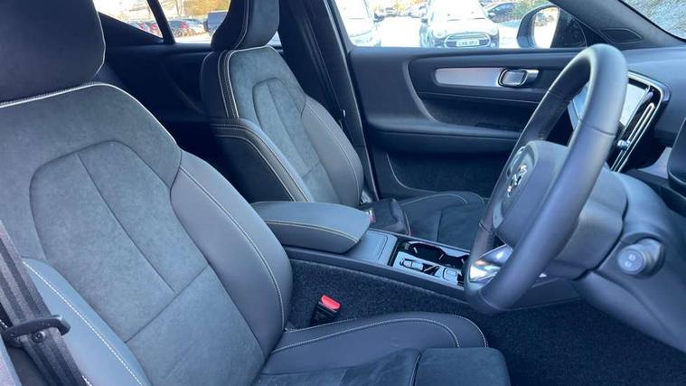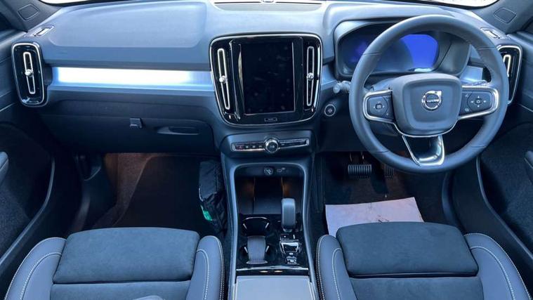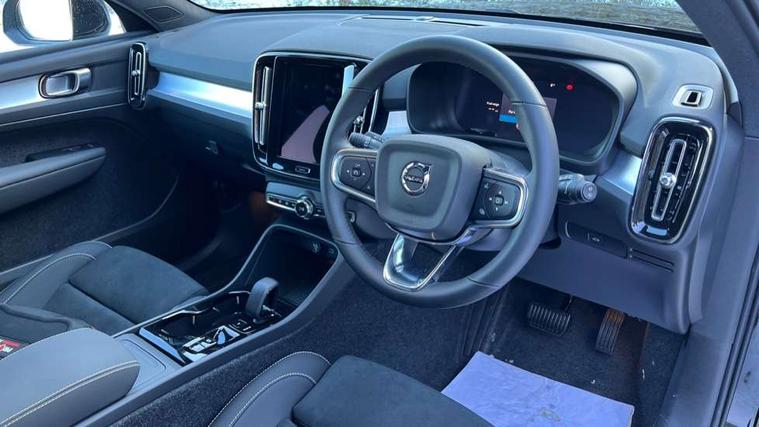 12.3" Progressive Driver Display, 9" centre console portrait touch screen, Adjustable steering wheel force, Android auto (Wired), Apple carplay (wired), Bluetooth handsfree system, Driver alert control, Driver assistance (pilot assist and adaptive cruise control), Driver awareness - Blind spot information system with steer assist, cross traffic alert with autobrake and rear collision warning and mitigation, E-call, Front and rear parking sensors, Front park assist, Google automotive services - Enabled entertainment apps, navigation with google maps, voice recognition with google assistant, Hands free power tailgate, Intelligent speed assistance, Lane keeping aid, Oncoming Lane Mitigation, Speed sensitive steering, Volvo cars services with app - Driving journal, emergency and breakdown call, engine remote start, remote door locking/unlocking and vehicle dashboard, Wireless/Inductive Mobile Phone Charging, Automatic transmission with start/stop and manual change functions, Dynamic chassis, DAB Digital radio, Steering wheel mounted remote controls, Adaptive brake lights with high level LED brake lights, Auto dimming feature for exterior door mirrors, Auto dimming interior mirror, Auto folding and heated power door mirrors, Automatic headlamp levelling, Automatic LED Headlights + Active high beam incorporating daytime running lights, Dark tinted windows - rear side windows and rear screen, Front aluminium tread plates, Front and rear electric windows, High gloss black front and rear skid plate, High gloss black front bumper deco, High gloss black front grille strikethrough and ironmark, High gloss black rear model, engine and volvo logo badges, High gloss black window trim, Home safe and approach lighting, Integrated roof rails in high gloss black, LED front fog lights, Puddle lights, Rain sensor with automatic windscreen wiper activation, Rear side wing doors, Rear wiper, Roof antenna, Roof spoiler, Visible VIN plate, 12V socket in front tunnel console and luggage compartment, 2-Zone electronic climate control with CleanZone air quality system and pollen filter, 3 seat bench in 2nd row, 3 Spoke tailored steering wheel with chrome trim, 60/40 versatile split folding rear seat, Centre console cupholders and storage, Charcoal carpet and floor mats, Charcoal headlining, Connect suede textile/microtech upholstery, Flexible load floor and grocery bag holder, Front headrests, Front seat cushion extensions, Glovebox bag hook, Heated front seats, Height adjustable passenger seat, Height/reach adjustable steering column, High gloss centre tunnel deco, High level illumination - Front door pocket, front side step (under door), tailgate, instrument panel, front door inlay, rear courtesy&reading lights, Integrated waste bin, Isofix attachments on outer rear seats, Load cover, Load protection net, Mid level illumination - Front footwell, luggage & glovebox compartment, front cabin courtesy & reading lights, illuminated vanity mirrors+ticket holder, Multi directional lumbar support for driver and passenger seat, Power driver seat with memory + exterior mirrors memory, Rear armrest with cupholders, Rear headrests, Single front passenger seat, Underfloor luggage compartment storage, Climate pack without heated front seats - XC40, 3x3 point rear seatbelts, City safety with steering support with Pedestrian + cyclist + front collision warning with full auto brake and rear auto brake, Driver and passenger airbags, Drivers knee airbag, Electronic parking brake with auto hold, First aid kit, Front and outer rear seatbelt reminder and pretensioners, Front seats SIPS airbags, Hill descent control - Off-road drive mode, Hill start assist, IC (Inflatable Curtains) - Full Length, Passenger airbag cut-off device, Power child locks on rear doors, Road sign information display, Run off Road Protection, SIPS (Side Impact Protection System), Slippery road and hazard light alert, Stability and Traction Control with Spin control, Engine Drag Control and Corner Traction Control, Tyre pressure monitoring system, Vehicle deceleration control with Anti-lock Brake System, Electronic Brake Distribution and Emergency Brake Assist, Warning triangle, WHIPS whiplash protection system - front, 2 x Key integrated remote control central locking including with deadlocking system and auto open/close windows, Anti-theft alarm including immobiliser/volume sensor + level sensor, Keyless drive includes keyless entry and keyless start, Locking wheel nuts, 20" 5 spoke high gloss black alloy wheels,