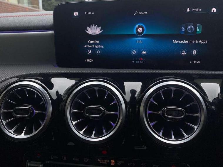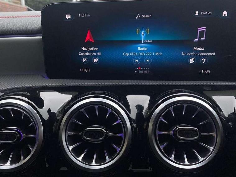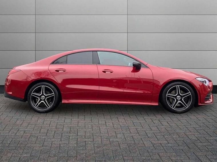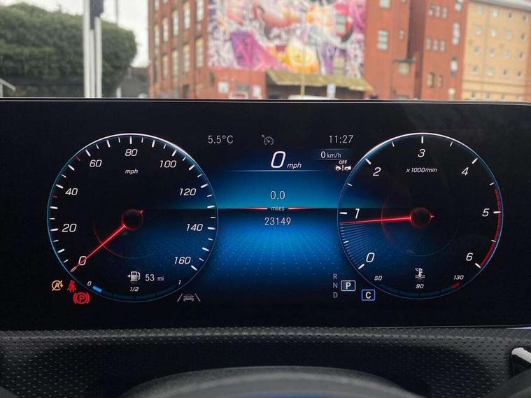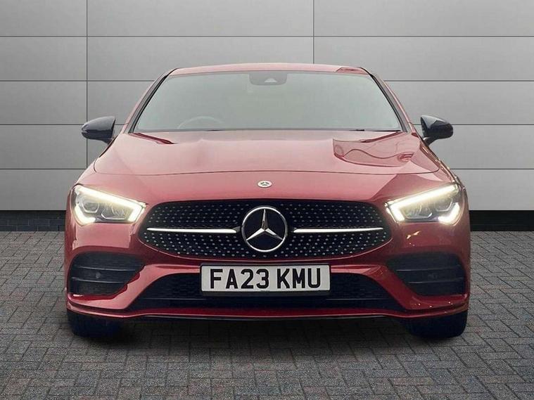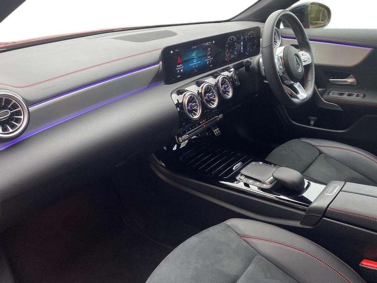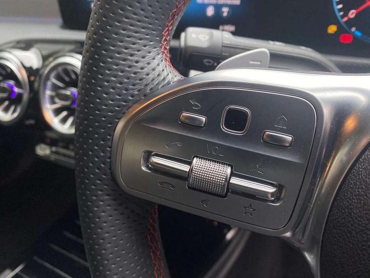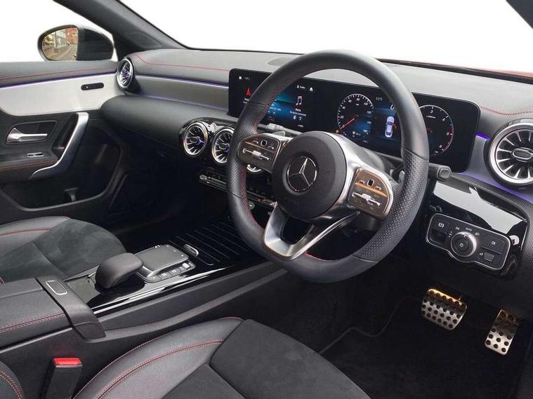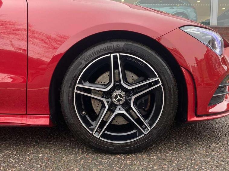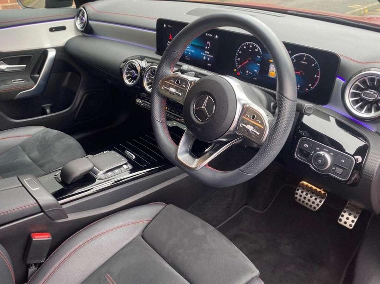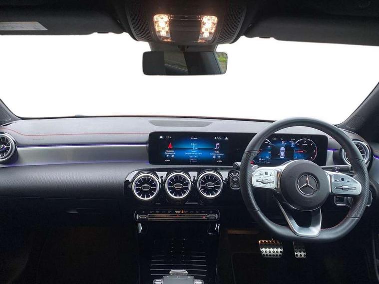 10.25 inch Instrument display with digital cockpit, 10.25 inch touchscreen central media display, Active lane keeping assist, Attention assist - Monitors steering behaviour and long journey fatigue, Bluetooth connection, Car wash mode, Cruise control with limiter, Direct steer system with speed sensitive power steering, DYNAMIC SELECT with a choice of driving modes (ECO, Comfort, Sport and Individual), ECO start/stop function, Fluid level warning indicator for fuel, oil, coolant and washer fluid, Hard-disk navigation, Hey Mercedes Voice activation, Lamp failure indicator, Mercedes me connect including emergency call system, accident recovery, breakdown and maintenance management, Mercedes me remote services, Outside temperature gauge, Owners manual and service booklet in English, Pre-installation of private car share, Preinstallation for Mercedes Benz link, Radio aerial integrated into front and rear windshields, Service indicator (ASSYST), Smartphone integration with Apple CarPlay and Android auto, Speed limit assist, Trip computer in multifunction display with current consumption indicator, Lowered comfort suspension, Rear axle multi-link, DAB digital radio tuner, MBUX multimedia system, Mercedes Benz sound system (100 W) with 6 speakers, USB (type C) ports (2) in stowage compartment and 1 in front of centre console, Adaptive brake lights, AMG body styling with AMG front apron and rear apron and visible exhaust tailpipe in chrome trim elements, AMG bodystyling side skirts, Body colour bumpers, Body colour door handles, Chrome beltline strips, Diamond radiator grille pins in chrome, Electric windows, Electrically adjustable and heated door mirrors with integrated LED indicators, Exhaust system with 2 Visible tailpipe trim elements and rear apron with trim in chrome, Headlamp assist automatic headlamp activation, Heated glass rear windscreen + timer control, High level LED third brake light, Interior mirror with black reading lamps and frameless, LED high performance headlamps with integrated LED daytime running lights, LED tail lamp, Privacy glass with dark tinting on rear side windows and rear window, Rain sensing windscreen wipers with two sensitivity settings, Rear boot, Rear fog lamp, Rear side wing doors, Variable front intermittent wipers, Window line trim strip in chrome, 3 seat bench in 2nd row, 3 spoke flattened bottom nappa leather multifunction steering wheel with perforated leather in grip area, 40:20:40 split folding rear seat backrests, Air conditioning - Two zone thermotronic luxury automatic climate control with display, Air vents with surround in silver chrome, Artico man-made leather upholstery, Automatic child seat recognition sensor, Black roof lining, Brushed stainless steel sports pedals with rubber studs, Floor mats with stitched AMG lettering, Front centre armrest with stowage, Front door sills with Mercedes Benz lettering, Galvanished gear shift paddles on steering wheel, Heated front seats, Illuminated glove compartment stowage, Interior lighting - 64 colour Ambient lighting, Luggage net on driver/front passenger seat backrest, Manually adjustable front seats, Manually height and reach adjustable steering column, Rear head restraints, Single front passenger seat, Sport seats with fixed head restraints, Stowage compartment in centre console with retractable cover, Sunvisors with illuminated vanity mirrors, Touchpad on center console, Twin front cupholders, Two outer rear seat isofix and top tether child seat fixing points, Light and sight pack - CLA, Mirror pack - CLA, Night package - CLA, Parking package - CLA, Seat comfort pack - CLA, Active bonnet pedestrain safety measure which detects an impact and raises bonnet by 65mm, Active brake assist includes forward collision warning system with autonomous braking, Adaptive brake assist with hold function and hill start assist, Anti lock braking system (ABS) with brake assist, Black seat belts, Bonnet with power domes, Brake pad wear warning indicator, Childproof locks manually operated for rear doors and electrically operated for rear power windows, Crash responsive emergency lighting, Driver and front passenger head and sidebags, Driver and front passenger windowbags, Drivers knee airbag, Dual stage driver and front passenger airbags, Electric parking brake, Electronic stability programme with acceleration skid control, ESP curve dynamic assist, Front and rear seatbelt reminder, Front passenger seat occupancy sensor, Three point rear seat belts, Tyre pressure monitoring system, Warning triangle and first aid kit, Guard 360 degree guard vehicle protection system with immobiliser and interior protection, Keyless Go starting function, Remote central locking and crash sensor with emergency opening function, Light aluminium with longitudinal grain interior trim, 18" AMG 5 twin spoke light alloy wheels painted in black with high sheen finish, Summer tyres, Tirefit tyre sealant kit,
