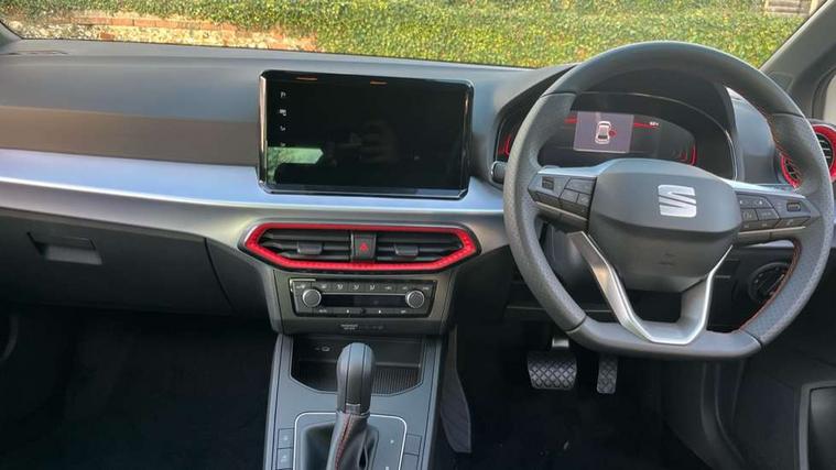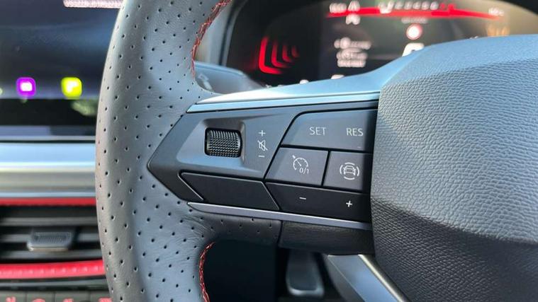 'Lights On' Reminder warning buzzer, 8" Digital cockpit, 9.2" touchscreen navigation system with type C USB socket, Voice control and DAB/AM/FM radio, Auto start and stop system, Bluetooth audio streaming with handsfree system, Digital clock, E-call, Full link smartphone integration with mirror link, wireless apple carplay, Google android auto + USB Type C cable for apple and android devices, Lane assist, Low fuel warning light, Outside temperature gauge, Power Steering, Rear parking sensor, Seat connect plus with safety, service, remote and online, SEAT drive profiles and ECO function, SEAT logo boot release, Speed limiter, Traffic sign recognition, Trip computer, Sports suspension, Auxiliary input socket, Radio/MP3 player, SD card slot, Steering wheel mounted controls, Anti theft roof antenna, Auto dimming rear view mirror, Automatic rain sensing wipers, Black door mirror caps, Body colour bumpers, Body colour door handles, Brilliant black window surrounds, Dark tinted rear windows, Electric adjustable/heated/folding door mirrors, Electric front windows, Electric headlight adjustment, Electric rear windows, Front/rear fog lights, FULL LED automatic headlights with dynamic headlight range control, coming and leaving home, LED daytime running lights, LED 3rd brake light, LED tail lights, Rear roof spoiler with FR twin exhausts, Rear side wing doors, Rear wiper, 3 seat bench in 2nd row, 60/40 split folding rear seat, Ambient interior lighting, Chrome detailing and black headlining, Cloth upholstery, Dual zone climate control with combination filter, Front courtesy lights, Front cupholders x 2, Front reading lights, Gear shift indicator, Glovebox, Height adjustable front and rear headrests (five), Height adjustable front seats, Height/reach adjust steering wheel, Illuminated air vent surrounds, Illuminated boot, Instrument lighting with brightness control, Isofix, Leather multifunction flat bottomed sports steering wheel with gearshift paddles, Passenger sunvisor, Single front passenger seat, Sports seats, Sunvisors with mirror and driver side card holder, Safety and driving pack (S) - Ibiza, 3 point seatbelts on all 3 rear seats, ABS, Active front headrests, Child locks on rear doors, Electronic stability control, Energy recovery system, Front driver and passenger side airbags with curtain airbag and front passenger airbag deactivation, Hill hold control, Multi-Collision braking, Seat belt reminder for front and rear seats, Tiredness recognition system, Tyre pressure monitoring system, Locking wheel bolts, Perimeter alarm and interior monitoring with backup horn and tow away protection, Remote central locking + deadlocks, 17" Alloy wheels in Brilliant silver,