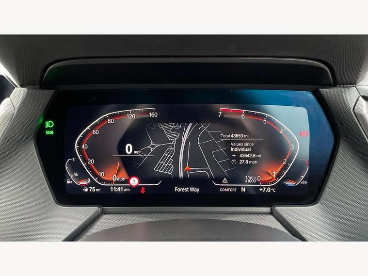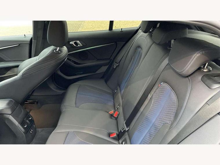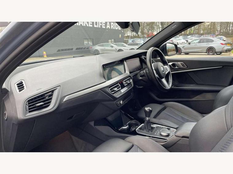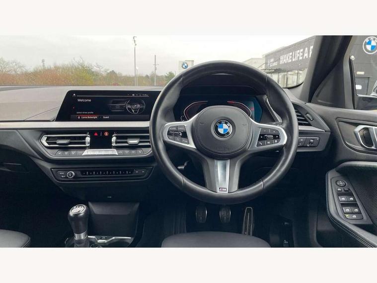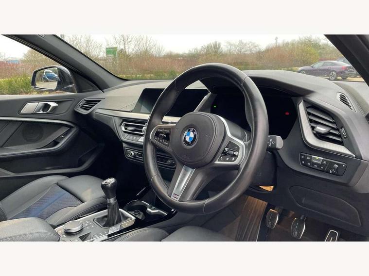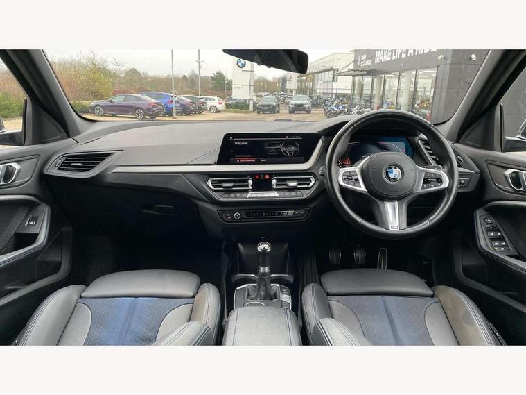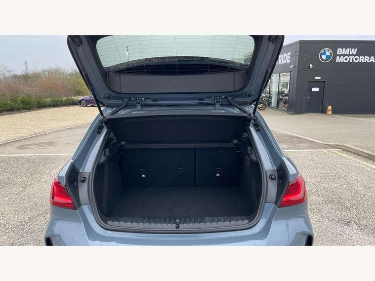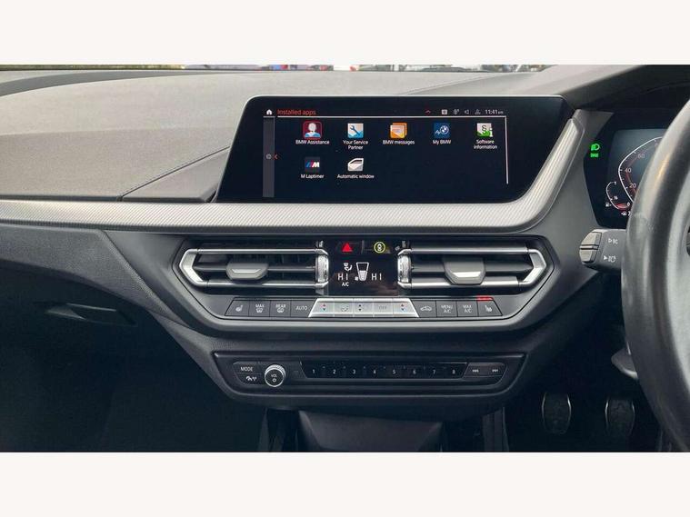 Active guard plus, Attentiveness assist, BMW ConnectedDrive online services, BMW Teleservices, Check Control warning system for monitoring of lights and door/luggage compartment open warning, Cruise control with brake assist, Eco pro mode, Front axle single joint with specific axle kinematics to minimise drive influences on steering + provide increased rigidity agile driving behaviour, Integrated owners handbook, Lane departure warning system, Oil sensor for level and grade, On board computer, Optimum shift indicator, Personal Profile, Pull away assistant, Rigidly mounted rear subframe - Multi link construction with separate spring / damper configuration and excellent driving characteristics, Speed limit Info including no-overtaking indicator, Speed limiter, Aluminium lightweight construction, Anti roll bar front and rear, Balancer shaft, Double VANOS twin scroll turbocharging system, Drive Performance Control, Electronic differential lock, High precision injection, M sport suspension, Petrol Particulate Filter, Twin tube gas filled shock absorbers with degressive characteristic curve, VALVETRONIC engine management, DAB Digital radio, Auto dimming rear view mirror, Automatic headlight beam throw control, Automatic windscreen wipers and automatic headlight, Body colour door handles, Body colour mirror caps, Body colour roof trims, Chrome 'M' logo side designation, Chrome exhaust twin tailpipes round 90mm in left, Chrome kidney grille frame with Satin Aluminium struts, Direction indicator side lights in exterior mirrors, Fading support, Folding side mirrors with auto dimming/folding wing mirrors with auto dimming, Follow me home headlights, Front and rear bumper system with replaceable deformation elements, Front and rear electric windows with open and close fingertip control, anti trap facility and comfort closing, Front door sill finishers in black plastic with M designation in metallic look, Green tinted heat protection glazing, Heated, electrically adjustable exterior mirror aspheric on driver side, convex on passenger side, High gloss shadowline window frame, Recess cover mirror frames and B/C pillar embelisher trim, High level third brake light, Integrated front windscreen with washer jets, LED daytime running lights, LED eyebrow turn indicators, LED front fog lights, LED Headlights, Lightweight engineering, Matt black air guide grilles, Matt black wheel arch trim, Model designation on electric bootlid, Nearside reverse light in rear light cluster, Preparation for high beam assistant, Rear fog lights, Rear side wing doors, Rear window wiper, Shark fin antenna, Trailer stabilisation logic, Visible VIN plate, Welcome lighting, 12V power socket in front centre console with blanking plug, 3 rear seat head restraints, 3 seat bench in 2nd row, 3 spoke sports leather steering wheel in black leather with black stitching and decorative finisher in pearl chrome, specific M badge + leather knob, Ambient interior lighting, Anthracite headlining, Black boot net with lashing eyes, Cargo function on 2nd seat row, Child seat ISOFIX attachment for two outer rear seats and front passenger seat with anchorage points, Conditioned based service, Driver and front passenger seat heating, Folding rear clothes hook, Four grab handles integrated in roof lining, Front and rear door pockets with bottle holders, Front and rear side armrest integrated into door trim, Front armrest, Front sports seats, Gearshift lever with M designation, Glove compartment, Height adjustable front head restraints, Luggage compartment for bag hooks on left and right, foldable luggage compartment liner and four lashing eyelets, Manual adjust steering wheel, Multi-function controls for steering wheel, Single front passenger seat, Storage compartment in centre console, Sun visors with vanity mirrors and insert tab, Two front centre console cupholders, Two zone automatic air conditioning, Velour floor mats, Additional interior lighting pack - 1 Series, BMW live cockpit professional pack- 1 Series, Connected pack professional - 1 Series, Interior lights pack - 1 Series, M Sport exterior styling aerodynamics pack - 1 Series, 2 tone horn, 3 point seatbelts on all seats, front pyrotechnic belt tensioners, stopper and belt force limiters, rear coded belt buckles, Airbags - Front driver/passenger, front and rear curtain head protection, front side, manual deactivation of front passenger airbag, Anti lock braking system (ABS) with brake assist, BMW emergency call, Brake drying, Braking readiness, Child proof locking system in rear door, City braking function, Comfort modes, Cornering brake control, Crash sensor activating central locking release, hazard warning lights, fuel cut off, interior lighting + activation of safety battery terminal clamp, Driver and front passenger seat belt security check, Dynamic stability control + (DSC+), Dynamic Traction Control - DTC, Electrically operated hand brake, Front and rear disc brakes, Seatbelt warning, Side impact protection, Tyre pressure monitoring system, Warning triangle and first aid kit, Central locking switch for all doors, fuel filler cap and luggage compartment, Deadlocking function system to all doors, Drive away locking system on all doors and luggage compartment with de-activated in iDrive settings, Locking wheel bolts, Remote control with integrated key with High-gloss Black inlay and M designation and 1 button for open/ close lock, window, open luggage compartment, Start/stop button illuminated in centre console with keyless engine start and auto start stop deactivation button, Thatcham Cat.1 alarm and immobiliser, Wheel slip limitation close to the actuator (ARB), Contrast stitching on instrument panel, Electrically powered 12V compressor, Reduced rolling resistance tyres,