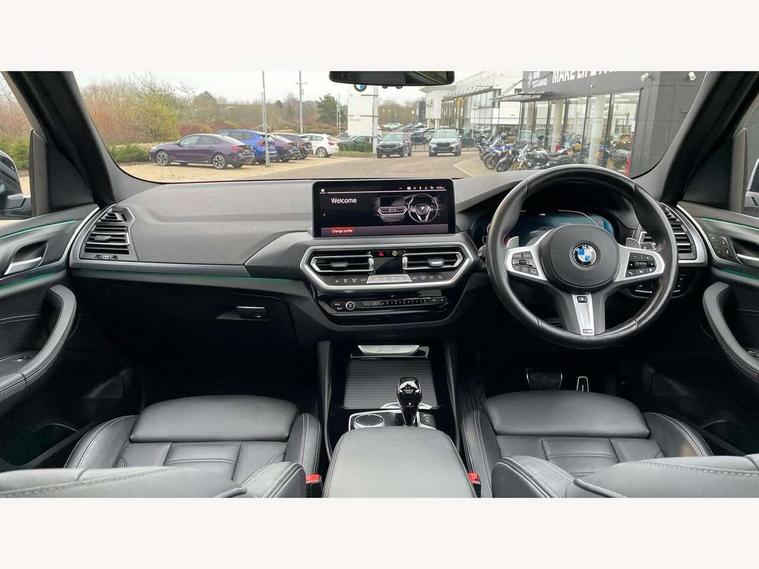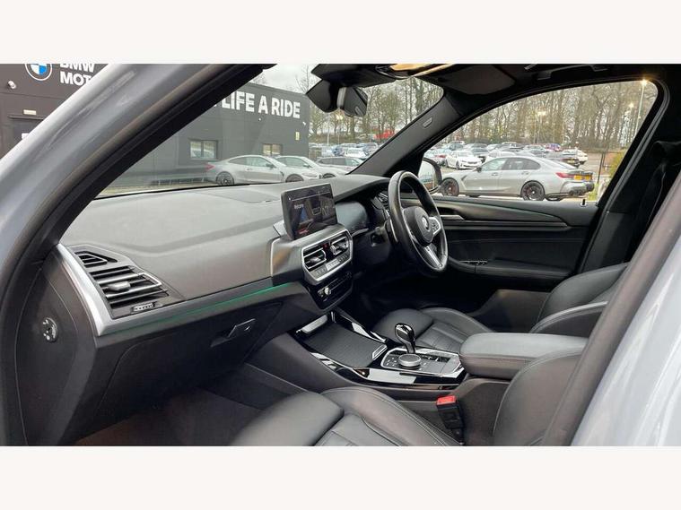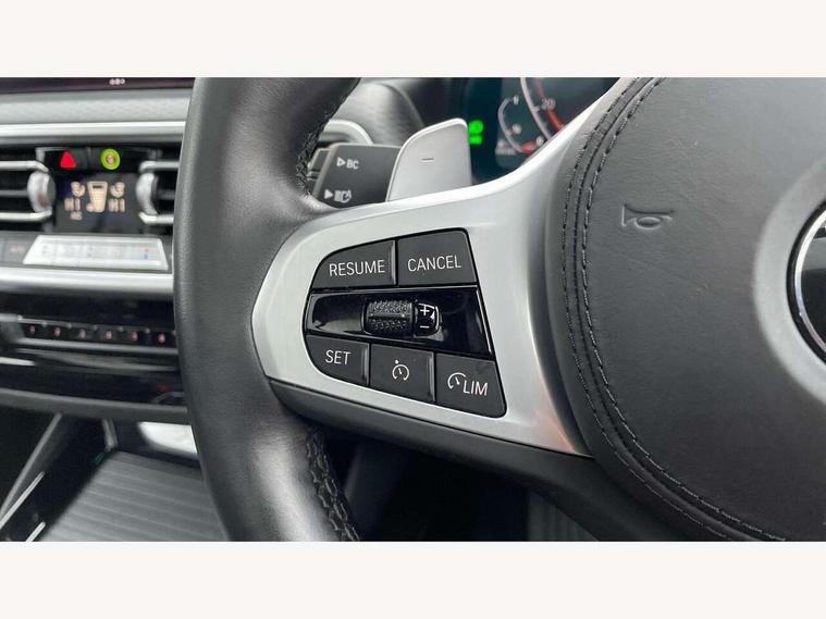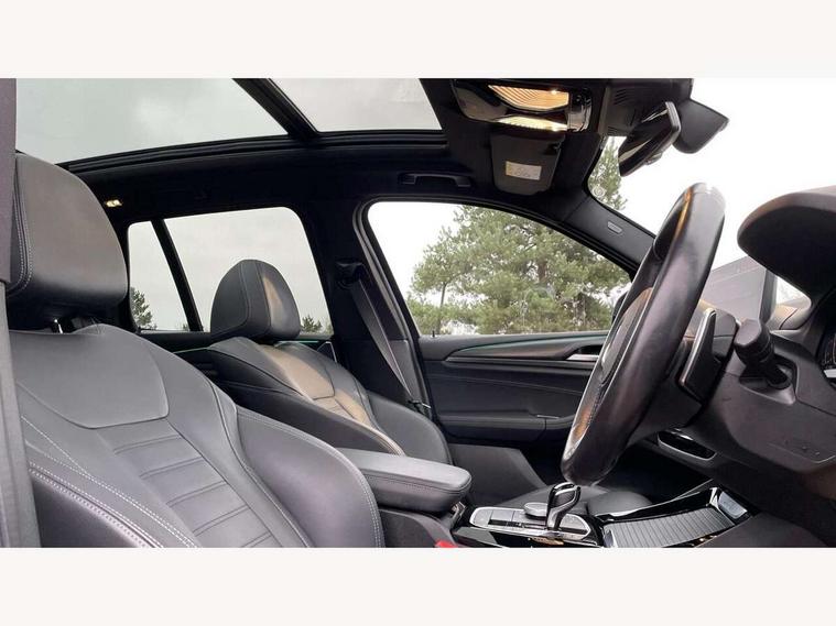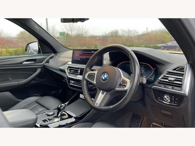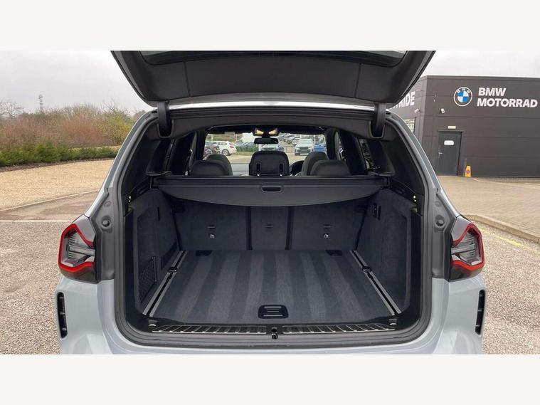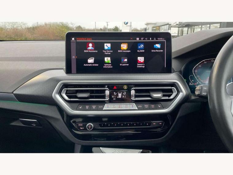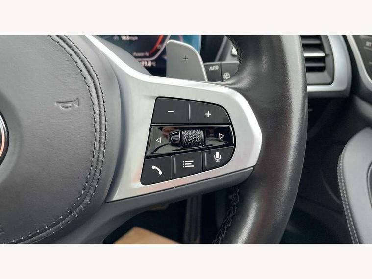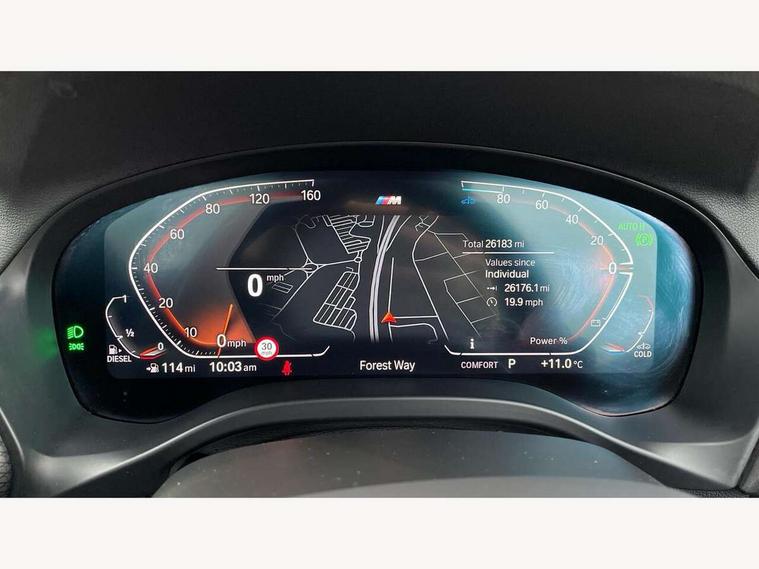 Active Guard, Attentiveness assist, BMW Live Cockpit Professional nav system including 12.3" instrument display + 12.3 high resolution control display, BMW Online services, BMW Teleservices, Brake pad wear indicator in front and rear, Check Control warning system for monitoring of lights and door/luggage compartment open warning, Condition based service - BMW service history, electronic service booklet, integrated owner's handbook, Connected drive services, Cruise control with brake function + speed limiter, Electric boot lid, Front/rear Parking distance control, iDrive Controller with 8 favourite buttons, Instrument cluster with speedometer with mph readout, tachometer, fuel gauge and oil temperature gauge, Lights on warning by audio warning signal when ignition is switched off, Oil sensor for level and grade, warning by check control system, On board computer - average speed+fuel consumption, service interval, clock/date, odometer/trip meter, outside temperature display and ice warning, Optimum shift indicator, Personal Profile - automatic lock when driving away selectable, Run flat indicator, Stop/start system, Variable sports power steering with drive performance control Sport+ mode, Automatic transmission with gearshift paddles, Diesel particulate filter, Incorrect fuelling protection, Larger capacity fuel tank, M sport suspension, Multi-link rear suspension, Performance Control, BMW professional radio/CD/MP3, DAB tuner, Acoustic glazing, Automatic windscreen wipers and automatic headlight, Black finish on B pillars, Body colour door handles, Body colour electric adjust heated aspherical door mirrors, Body colour roof mouldings, Body coloured bumpers, Direction indicator, side repeaters, integrated in exterior mirrors, Dynamic brake lights, Exhaust tailpipes - dual, round, split left and right with chrome finisher, Fingertip control / anti-trap function on electric window, Folding wing mirrors with auto dimming, Follow me home headlights, Front and rear bumper system with replaceable deformation elements, Front and rear electric windows, Gloss chrome tailpipes finishers, Green tinted heat insulating glass, Heated windscreen washer jets, High beam assistant, High gloss black shadow line roof rails, High gloss shadowline exterior trim in decorative moulding side frame/recess cover/guide rail/B, C pillars/mirror frame and triangle with mirror base, High level 3rd brake light incorporating LED Technology, Interior rear view electrochromatic mirror with automatic anti dazzle function, LED tail lights, Lightweight engineering, M aerodynamic bodystyling, M Sport entry door sill strips, Model designation, Rear side wing doors, Rear wing door, Rear wiper, Shark fin antenna, Side exterior M designation badges, Visible VIN plate, Welcome lighting, Windscreen wipers with adjustable interval, 12V power socket in front centre console, 3 rear headrests, 3 seat bench in 2nd row, 3 zone automatic air conditioning, 4 lashing points to secure luggage, 40:20:40 split folding rear seat with loading system, Ambient lighting, Anthracite headlining, Automatic interior light when door is opened/ignition switched off or via remote key, Driver seat backrest width adjustment, Floor mats in velour, Foldable storage floor with compartment, Four grab handles integrated in roof lining, Front and rear bottle holders integrated into door trim storage compartments, Front and rear side armrests integrated into door trim, Front centre armrest with storage compartment, Front footwell lights, Front head restraints, Front passenger seat, Front sports seats, Front/rear courtesy lights with soft on/off dimming, Front/rear reading lights, Heated front seats, Isofix rear child seat preparation, Leather gear knob, Luggage area underfloor compartment, Luggage compartment lighting, M sport leather steering wheel, Multifunction steering wheel, Parcel shelf removeable and storable under boot floor, Reach and rake adjustable steering column, Rear centre armrest with 2 cupholders, Removable / retractable luggage cover, Slope adjustable rear seats, Storage compartment in rear centre console and front/rear door trims, Sun visors with vanity mirrors and ticket pocket, Toolkit located in luggage compartment, Two front cupholders with removable oddments tray/lid, Vernasca leather upholstery, Connected pro pack - X3, Driving assistant pack - X3, ADB - Automatic Differential Brake, Anti-lock braking system (ABS) with brake assist, Automatic Stability Control (ASC), Battery safety cut-off, BMW emergency call, Brake drying, Brake energy regeneration, Braking pre-tensioning, Child locks on rear doors, Cornering brake control (CBC), Crash Sensor - activation of central locking release, hazard warning light and interior lighting, Deactivation of fuel pump in the event of a crash, Driver and front passenger front and side airbags with passenger deactivation and ITS front and rear head airbags, DSC+, Dynamic brake control, Dynamic Traction Control - DTC, Electromechanical parking brake, Hill descent control, Hill start assist, Seatbelt security check for front seats, Side impact protection, Three point seatbelts to all seats with front and outer rear pyrotechnic belt tensioners and seat belt force limiters, Two tone horn, Tyre pressure sensor, Ventilated front and rear disc brakes, Warning triangle and first aid kit, Central locking switch for all doors, fuel filler cap and luggage compartment, Electronic engine immobiliser, Locking wheel nuts, Remote control including two integrated key - one button for open/close all lockable content, windows and separate button for open luggage compartment, Remote control Thatcham category 1 alarm, Start/stop button with Comfort Go keyless engine start and auto Start/stop deactivation button, Low rolling resistance tyres,