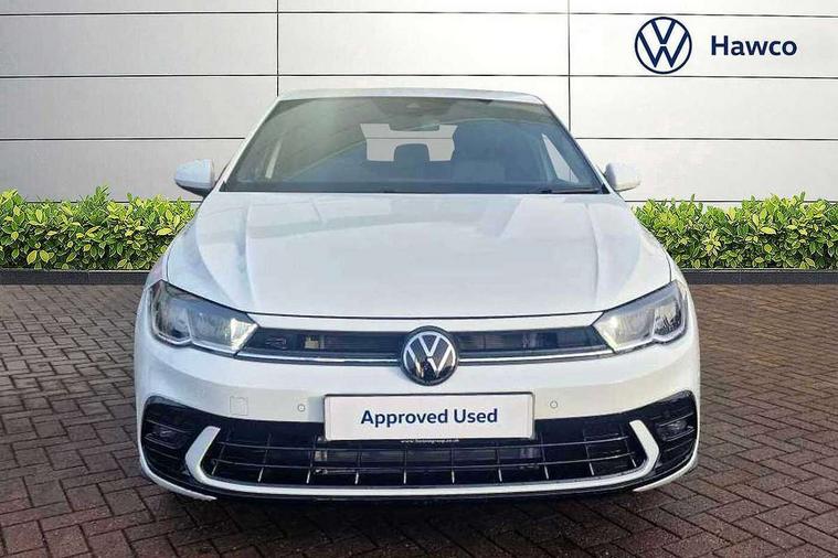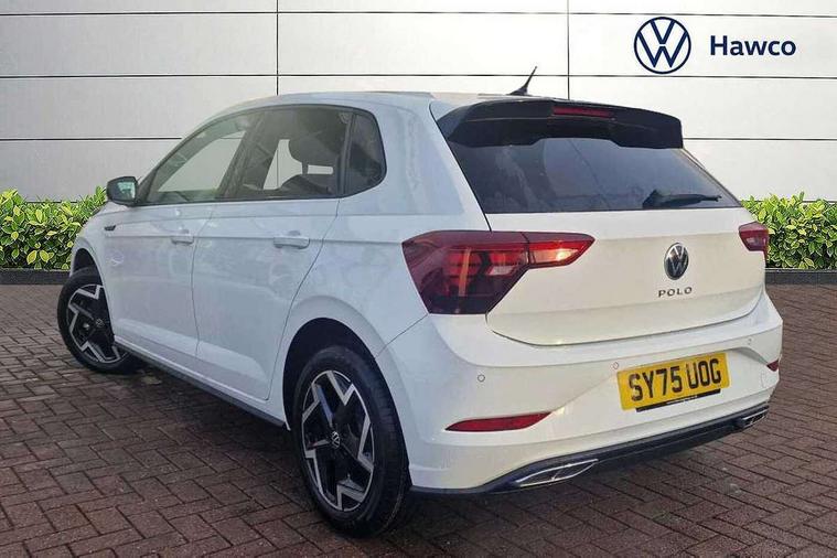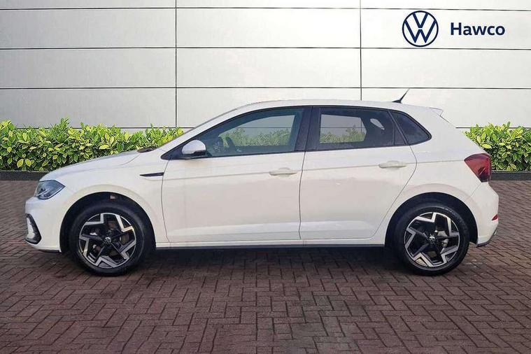 Adaptive cruise control with follow-to-stop and speed limiter, Advanced driver attention and drowsiness monitor, Bluetooth mobile phone interface, Digital Cockpit Pro with 10.25" Display, Dynamic road sign display, Emergency call service, Multifunction camera, Power assisted speed sensitive steering, Preparation for We connect and We connect plus, Speedo and rev counter, electronic odometer, trip, service interval display and fuel gauge, Standard rear axle, Travel Assist - Lane keeping system and traffic jam assist, Travel assist including emergency assist, Trip computer, Warning signal and warning light for front and rear seatbelts not fastened, Washer fluid level indicator, Wireless app connect, Front wheel drive, Rear shock absorpion, Start-stop system with battery regeneration (recuperation - energy recovery during braking), DAB Digital radio, Diversity antenna for FM reception, Body colour bumpers, Body colour door handles, Electric front windows, Front scuff plates with R-Line logo, Heat insulating glass windscreen, Power folding adjustable/heated exterior mirrors and front passenger exterior mirror lowering function, Rear electric windows, Rear fog light, Rear side wing doors, Rear windscreen washer and wiper with interval delay, Third brake light, 12V power socket in centre console, 2 USB-C ports in the front, 2 USB-C charging sockets on the center console in the rear, 3 rear head restraints, 60/40 split folding rear seat and rear seat bench not split, Air care climatronic air conditoning system with active combination filter and 2-zone temperature control, Black roof lining, Carpet mats, front and rear, Chrome plated radiator grille inserts, air vent surrounds and light switch surrounds, Door and side trim panel, Driver and front passenger seat height adjustment, Driver/passenger sunvisors with illuminated vanity mirrors, Front centre armrest, Front footwell illumination, Front seat backrest storage pockets, Front sports comfort seats, Handbrake lever handle in leather, Headliner in recycled material, Isofix child seat preparation easy-fit (for two outer rear seats, and front passenger seat) compatible with I-size, Karoso artvelours cloth upholstery, Leather trimmed gear knob, LED interior light with switch off delay and dimmer, 2 reading lights front and rear, Luggage compartment cover, Luggage compartment floor, Luggage compartment lighting, Lumbar adjustment for front seats, Single front passenger seat, Stainless steel pedals, Standard pedal cluster, Three spoke leather wrapped multifunction steering wheel with shifting paddles, Light and sight pack - Polo R-Line/Black Edition, 3 point height adj front seatbelts + pretensioners, 3x3 point rear seatbelts, ABS, Driver and front passenger airbag with front passenger airbag deactivation, Drivers and front passengers safety optimised head restraints, ESC (Electronic stability control) + EDL (Electronic Differntial lock) and ASR (Traction control), Extended and predictive pedestrian/ cyclist protection, Front curtain and side airbags with center airbag, Front/rear disc brakes, Hill hold control, Manual child lock in rear doors, Single tone horn, Tyre pressure loss indicator, Alarm with interior protection, Anti-theft alarm system with interior monitoring, backup horn, and towing protection, Anti-theft wheel bolts, Electronic engine immobiliser, Chrome applications on rotary light, mirror adjustment, window regulator switches, outlet with frame in black, Dark grey anodised matt decorative inserts in dash and front door panels, 16" Coventry alloy wheels, Low rolling resistance tyres,