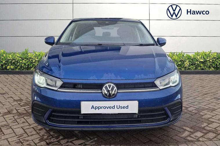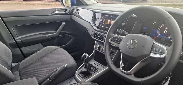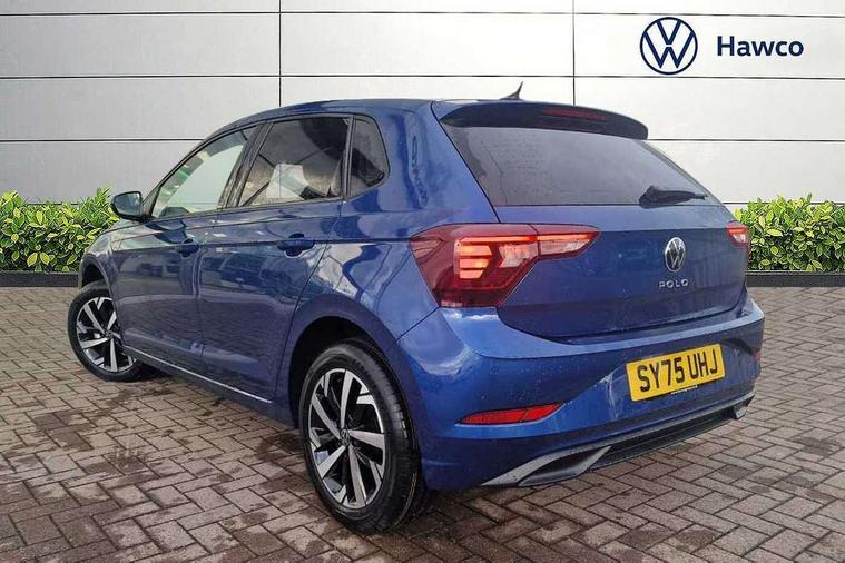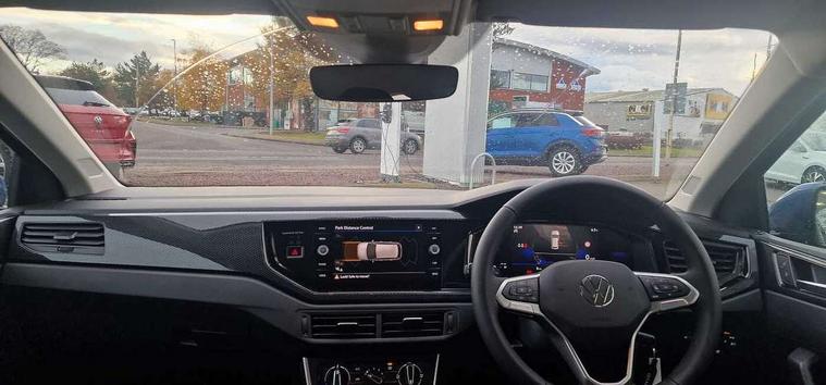 Adaptive cruise control without follow-to-stop and speed limiter, Advanced driver attention and drowsiness monitor, Bluetooth mobile phone interface, Dynamic road sign display, Emergency call service, Multifunction front facing camera for distance control, Power assisted speed sensitive steering, Preparation for navigation system with media and internet package, Preparation for We connect and We connect plus, Rear view camera, Speedo and rev counter, electronic odometer, trip, service interval display and exterior temperature gauge, Standard rear axle, Travel Assist - Lane keeping system and traffic jam assist, Travel assist including emergency assist, Trip computer, Warning signal and warning light for front and rear seatbelts not fastened, Washer fluid level indicator, Wireless app connect, Front wheel drive, Rear shock absorpion, Start-stop system with battery regeneration (recuperation - energy recovery during braking), DAB Digital radio, Diversity antenna for FM reception, Automatic dimming interior rear view mirror, Automatic headlight control with LED separate daytime running lights with coming/leaving home function, Body colour bumpers with chrome inserts, Body colour door handles, Body colour door mirrors, Electric front windows, Engine badge deletion, Headlight range adjustment, Heat insulating and laminated safety glass windshield, LED Headlights, LED rear combination lamps, Power folding adjustable/heated exterior mirrors and front passenger exterior mirror lowering function, Rain sensor, Rear electric windows, Rear fog light, Rear side wing doors, Rear tinted glass from B-pillar backwards approx 65% tinted, Rear windscreen washer and wiper with interval delay, Third brake light, 12V power socket in centre console, 2 front and 2 rear reading lights with switch off delay and dimmer, 2 USB-C ports in the front, 2 USB-C charging sockets on the center console in the rear, 3 rear head restraints, 60/40 split folding rear seat and rear seat bench not split, Ceramique roof lining, Chrome plated radiator grille inserts, air vent surrounds and light switch surrounds, Door and side trim panel, Driver and front passenger seat height adjustment, Driver/passenger sunvisors with illuminated vanity mirrors, Front centre armrest, Front seat backrest storage pockets, Front standard seats, Handbrake lever handle in leather, Hartley/Thomas cloth upholstery, Headliner in recycled material, Isofix child seat preparation easy-fit (for two outer rear seats, and front passenger seat) compatible with I-size, Leather trimmed gear knob, Luggage compartment cover, Luggage compartment lighting, Removable luggage compartment floor, Single front passenger seat, Standard climatic zones, Standard pedal cluster, Three spoke leather wrapped multifunction steering wheel, Light and vision pack - Polo, 3 point height adj front seatbelts + pretensioners, 3 point seat belt for centre rear seat, 3 point seatbelts, outer rear with ECE lable, ABS, Driver and front passenger airbag with front passenger airbag deactivation, Drivers and front passengers safety optimised head restraints, ESC (Electronic stability control) + EDL (Electronic Differntial lock) and ASR (Traction control), Extended and predictive pedestrian/ cyclist protection, Front assist with autonomous emergency braking (for Adaptive Cruise Control ACC up to 130 mph), Front curtain and side airbags with center airbag, Front disc brakes, Hill hold control, Manual child lock in rear doors, Rear drum brakes, Single tone horn, Tyre pressure loss indicator, Alarm with interior protection, Anti-theft alarm system with interior monitoring, backup horn, and towing protection, Anti-theft wheel bolts, Electronic engine immobiliser, Lava stone black gloss/matt decorative inserts in dash and front door panels, 16" Torsby alloy wheels, Low rolling resistance tyres,