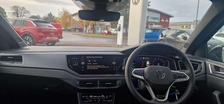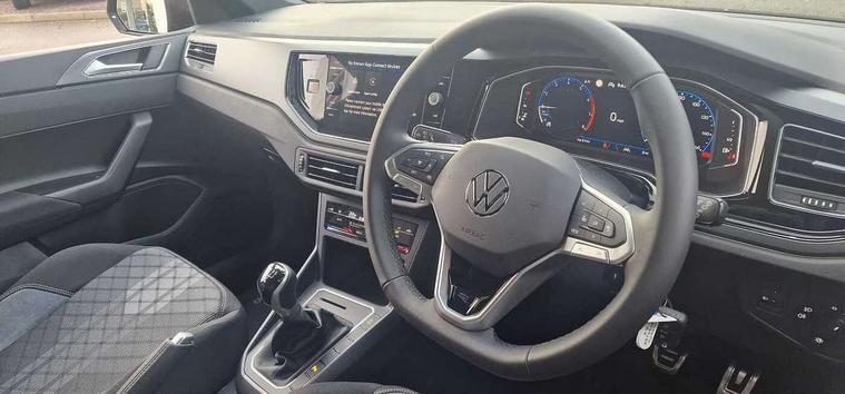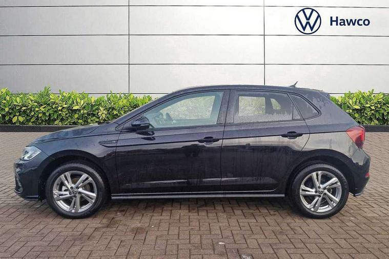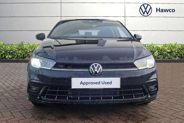 Advanced driver attention and drowsiness monitor, Bluetooth mobile phone interface, Digital Cockpit Pro with 10.25" Display, Dynamic road sign display, Emergency call service, Multifunction camera, Power assisted speed sensitive steering, Predictive adaptive cruise control without follow-to-stop and speed limiter, Preparation for We connect and We connect plus, Speedo and rev counter, electronic odometer, trip, service interval display and fuel gauge, Standard rear axle, Travel Assist - Lane keeping system and traffic jam assist, Travel assist including emergency assist, Trip computer, Warning signal and warning light for front and rear seatbelts not fastened, Washer fluid level indicator, Wireless app connect, Front wheel drive, Rear shock absorpion, Start-stop system with battery regeneration (recuperation - energy recovery during braking), DAB Digital radio, Diversity antenna for FM reception, Body colour bumpers, Body colour door handles, Electric front windows, Front scuff plates with R-Line logo, Heat insulating glass windscreen, Power folding adjustable/heated exterior mirrors and front passenger exterior mirror lowering function, Rear electric windows, Rear fog light, Rear side wing doors, Rear windscreen washer and wiper with interval delay, Third brake light, 12V power socket in centre console, 2 USB-C ports in the front, 2 USB-C charging sockets on the center console in the rear, 3 rear head restraints, 60/40 split folding rear seat and rear seat bench not split, Air care climatronic air conditoning system with active combination filter and 2-zone temperature control, Black roof lining, Carpet mats, front and rear, Chrome plated radiator grille inserts, air vent surrounds and light switch surrounds, Door and side trim panel, Driver and front passenger seat height adjustment, Driver/passenger sunvisors with illuminated vanity mirrors, Front centre armrest, Front footwell illumination, Front seat backrest storage pockets, Front sports comfort seats, Handbrake lever handle in leather, Headliner in recycled material, Isofix child seat preparation easy-fit (for two outer rear seats, and front passenger seat) compatible with I-size, Karoso artvelours cloth upholstery, Leather trimmed gear knob, LED interior light with switch off delay and dimmer, 2 reading lights front and rear, Luggage compartment cover, Luggage compartment floor, Luggage compartment lighting, Lumbar adjustment for front seats, Multifunction steering wheel, Single front passenger seat, Stainless steel pedals, Standard pedal cluster, Light and sight pack - Polo R-Line/Black Edition, 3 point height adj front seatbelts + pretensioners, 3x3 point rear seatbelts, ABS, Driver and front passenger airbag with front passenger airbag deactivation, Drivers and front passengers safety optimised head restraints, ESC (Electronic stability control) + EDL (Electronic Differntial lock) and ASR (Traction control), Extended and predictive pedestrian/ cyclist protection, Front curtain and side airbags with center airbag, Hill hold control, Manual child lock in rear doors, Single tone horn, Tyre pressure loss indicator, Alarm with interior protection, Anti-theft alarm system with interior monitoring, backup horn, and towing protection, Anti-theft wheel bolts, Electronic engine immobiliser, Chrome applications on rotary light, mirror adjustment, window regulator switches, outlet with frame in black, Dark grey anodised matt decorative inserts in dash and front door panels, 16" Coventry alloy wheels, Low rolling resistance tyres,