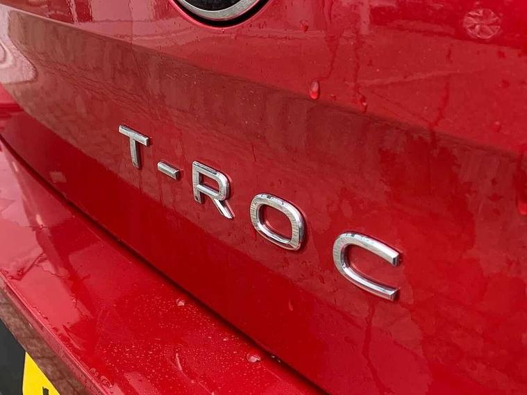 10.25" Digital cockpit pro, Advanced driver attention and drowsiness monitor, Emergency call service, Lane keeping system Lane Assist, Mobile phone interface, Modified key software - reduce switch off time for key status change to Long no motion, Online services, Park assist including front and rear parking sensors, Power assisted speed sensitive steering, Service interval indicator, Tailgate/trunk lid release from outside, Think blue trainer driver tips and journey analysis, Warning sound and light for front seatbelts unfastened, Wireless app connect, Battery regeneration during braking, Start/stop function with battery regeneration, DAB Digital radio, Diversity antenna for FM reception, Front and rear 6 speakers, Music playback - MP3, WMA and AAC files, Premium USB cable in choice of either Apple or Android smartphone compatibility, SD card slot, Simultaneous pairing of 2 compatible mobile devices, Title and cover art display, We Connect and We Connect Plus functionality, Auto dimming interior rear view mirror, Automatic hazard lights activation under emergency braking, Automatic headlight control with LED separate daytime running lights with coming/leaving home function, Body colour sports bumpers with silver metallic underbody fascia, Body coloured exterior mirror housings and door handles, Dynamic headlight range control with self adjusting whilst driving, Electrically adjustable and heated door mirrors, Extended roof spoiler, Exterior mirrors aspherical on driver side, convex on front passenger side, External USB type C socket and charging sockets, Front windscreen wiper with intermittent wipe and 4 position delay, Heated rear window, LED 3rd brake light, LED rear combination lamps, LED rear number plate lights, Light mode for poor weather, rain, fog or snow, Power windows with comfort operation and circuit breaker, Privacy glass for rear side windows and rear window, Rain sensor, Rear exhaust tailpipe, Rear fog light on one side and reversing lights on both sides, Rear side wing doors, Rear wash/wipe with intermittent wipe setting, Remote electrically foldable door mirrors, puddle lights and reverse activated passenger's door mirror, 12V power socket in centre console, 3 rear head restraints, 3 seat bench in 2nd row, 4 load lashing points in luggage compartment, Air care climatronic air conditoning system with active combination filter and 2-zone temperature control, Chrome plated radiator grille inserts, air vent surrounds and light switch surrounds, Door and side trim panel with leatherette insert, Drawer under drivers seat, Front + rear carpet mats, Front centre armrest, Front comfort sports seats, Front cupholders x 2, Front footwell illumination, Front seat back storage pockets, Glove compartment door with light, Instrument lighting, white adjustable panel illumination, Interior ambient lighting and surround lighting, Interior light delay, Isofix child seat preparation, Leather gearshift handle, LED interior light with switch off delay/dimmer and 2 front/rear LED reading lights, Load-through provision with cup holder when folded down ('Unsplit rear seat bench, split folding backrest, with centre armrest), Luggage compartment lighting, Non-folding front passenger seat backrest, Single front passenger seat, Storage compartment in left and right luggage area, Storage compartment in rear doors, Storage compartments in driver and front passenger doors, Sunvisors with illuminated vanity mirrors, Variable boot floor, height adjustable and removable, Driver assistance pack without proactive passenger protection - T-Roc, 3 point height adj front seatbelts + pretensioners, 3 point seatbelts in outer rear with ECE label, ABS, Child locks on rear doors, City emergency braking and pedestrian monitoring, Driver and front passenger airbag with front passenger airbag deactivation, Driver and front passenger safety-optimised head restraints, Drivers seatbelt reminder, Electronic parking brake, Electronic Stability Control (ESC) inc EDL (Electronic Differential Lock) and ASR (Traction Control), Front and rear passengers curtain airbag system including front side airbags, Predictive pedestrian protection, Rear disc brakes, Two tone horn, Tyre pressure loss indicator, Volkswagen roadside assistance, Deep iron grey decorative inserts in dashboard, centre console and front door trim panels, Trims for alloy wheels,