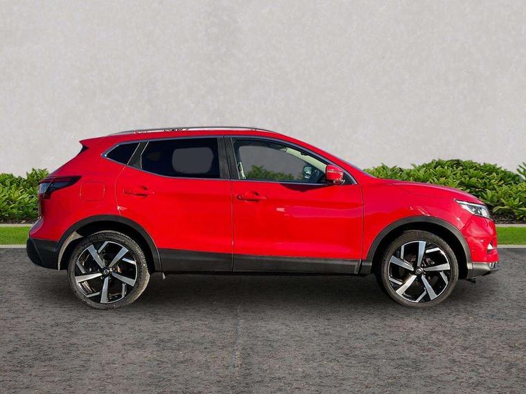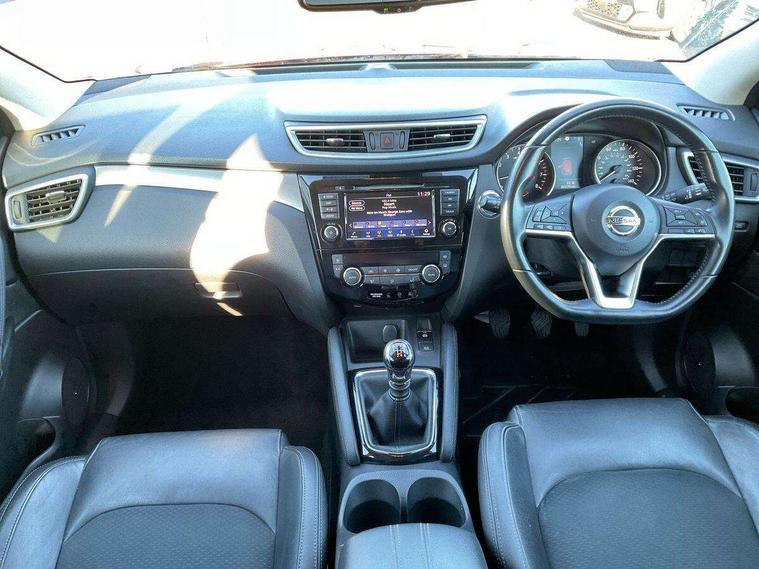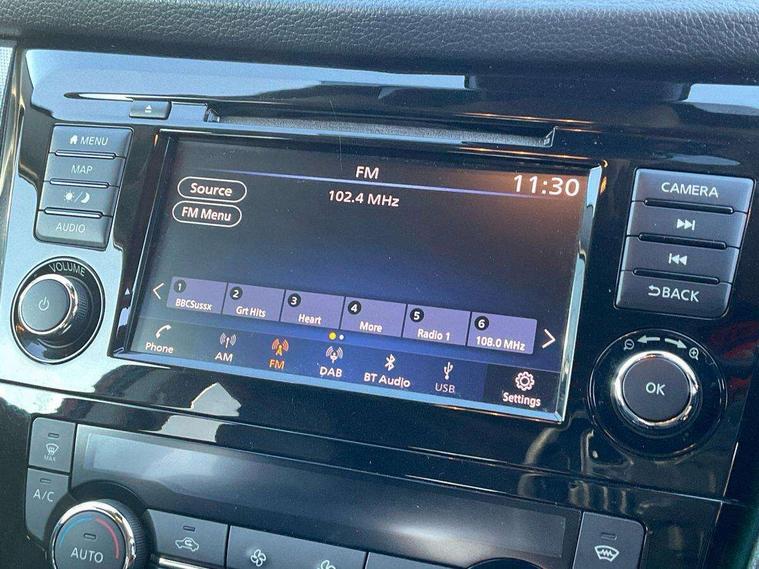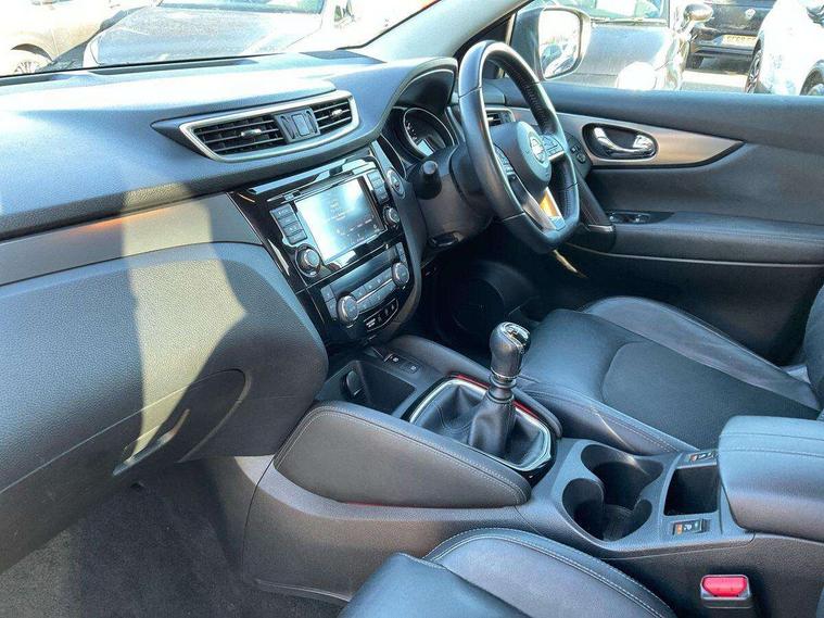 Advanced drive assist display 5'' TFT coloured screen, Android Auto, Apple CarPlay preparation, Bluetooth connectivity, Cruise control + speed limiter, Electric speed sensitive power steering, Front parking sensors, Intelligent around view monitor, Intelligent parking assist, Lane departure warning system, Nissan connect evo 7" touchscreen navigation and entertainment system, Normal or sport selectable steering, Outside temperature sensor, Push button starter, Rear parking sensors, Rear view camera, Service interval indicator, Smartphone integration, Stop/start system, Tomtom connected services, Traffic sign recognition, Trip computer, Voice control system, Nissan chassis control (intelligent ride control, intelligent trace control, intelligent engine brake), AM/FM radio, CD audio system, Aux-in socket, Bose premium 8 speaker system, DAB Digital radio, Steering wheel mounted audio controls, USB port, Anti dazzle rear view mirror, Auto wipers, Body colour bumpers, Body coloured door handles, Body coloured door mirrors, Chrome window surround, Daytime running lights dip function when turn signal applied, Electric folding door mirrors, Electric front and rear windows with one touch illuminated window controls, Electric front/rear windows, Electrically adjustable door mirrors, Front fog lights, Heated door mirrors, High beam assist, Intelligent auto headlights, LED indicators in door mirrors, Matt silver roof rails, Panoramic sunroof with one touch shade, Privacy glass, Rear roof spoiler, Rear wiper with reverse link, Shark fin antenna, Underbody vortex generators, 2 X front 12v power sockets, 3 height adjustable rear headrests, 60/40 split folding rear seat, Ambient lighting in centre console, Boot lighting, Centre console storage box/armrest, Chrome interior door handles, Configurable luggage board system, Dual zone climate control, Electrically adjustable driver seat, Front and rear door pockets with bottle holders, Front and rear seat belt pre-tensioners with load limiters, Height adjustable front headrests, Individual rear seat reading lights, Leather D shaped steering wheel, Leather gear lever, Leather knee pad, Manual height adjustable front passenger seat, Manual lumbar support on driver seat, Manual lumbar support on passenger seat, Monoform front seats with plastic backboard, One touch electric shade, Parcel shelf stow function under luggage board, Part leather upholstery, Pollen filter, Rear armrest with 2 cupholders, Synthetic leather wrapped door handle with contrasting stitching, Tilt/telescopic adjustable steering wheel, Heat package - Qashqai, LED pack - Qashqai, Safety shield plus pack - Qashqai, 6 airbags - Driver, front passenger, curtain and side airbags, ABS, ESP, EBD and brake assist, Auto hold function, Child locks on rear doors, Electronic parking brake, Front and rear seat belt warning, Front passenger airbag deactivation, Height adjustable front seatbelts, Hill start assist, Intelligent emergency braking with pedestrian recognition, Three 3 point rear seatbelts, Tyre pressure monitoring system, Anti-theft immobiliser, Intelligent Key, Remote central locking, Thatcham Cat.1 alarm, Carbon graphite dash trim, Tyre puncture repair kit,