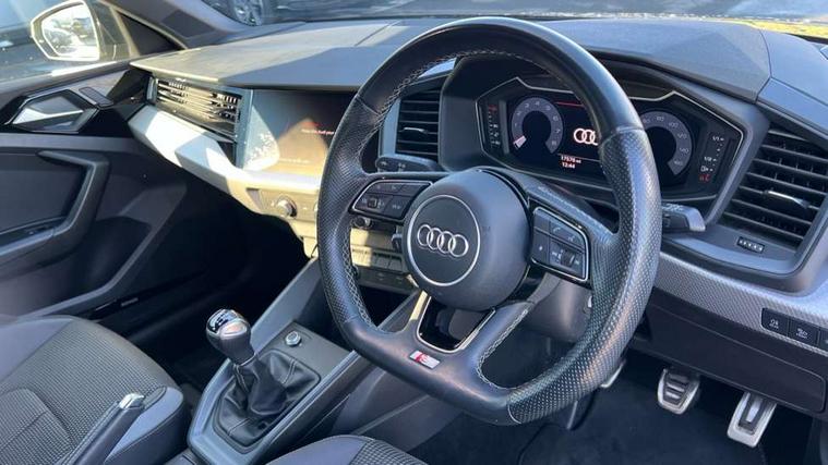 10.25" Digital instrument cluster display classis style instrument dials + speed, odometer, time, outside temperature, telephone menu + fuel level warning, Audi drive select - power steering assistance + engine, Audi smartphone interface with connect compatible smartphone via USB directly MMI display + Nav, music, third party apps controlled via MMI controller, Automatic start/stop system, Bluetooth interface, Cruise control, Driver's information system, Electromechanical power steering, Emergency e-call, Lane departure warning system, Rear parking sensor, Service interval indicator, Speed limiter, Voice control system, Washer fluid level indicator, Sports suspension, 2 x USB type C connection points, 6 passive loudspeakers, DAB Digital radio, MMI radio plus with 10.1" colour MMI display screen and MMI touch, Auto dimming rear view mirror, Black side skirts, Body coloured bumpers, Door sill trims with aluminium inlays and logo, Electric front and rear windows, Electrically adjustable, heated, folding door mirrors with integrated LED side indicator, Front side air inlets in grained matt black and C frame in anthracite black, Front wing badges, Heat insulating glass windscreen and side windows, Heated rear windscreen, High level LED brake light, LED headlights with LED rear lights + dynamic rear indicators + headlight adjustment and high beam, turning light + LED daytime running lights, Privacy glass, Rain and light sensors, Rear fog lights, Rear side wing doors, Rear wiper, Side front spoiler lips in grained matt black, 12V socket in centre console with two cup holders, 3 rear seats with headrests, 3 seat bench in 2nd row, 3 spoke flat bottomed multi-function plus leather steering wheel with S badging, grips in preforated leather and contrast stitching, 40:60 Split folding rear seat or folded fully, Black cloth headlining, Driver and passenger seat with manual height adjust with forward and backwards adjustment, Front and rear black floor mats with contrast stitching in fine silver, Front head restraints, Front passenger seat, Height and reach adjustable steering wheel, ISOFIX child seat mounting for front passenger and outer rear seats including top tether attachment point of outer rear seats, Leather gear knob with aluminium trim, Leatherette handbrake grip, Luggage compartment light with front and rear reading lights, Manual air conditioning, Manually adjustable lumbar support in front seats, Stainless steel pedals, Black styling pack - A1 Sportback Black Edition, LED interior lighting pack - A1, Luggage compartment pack - A1, 3x3 point rear seatbelts, Audi pre-sense front with pedestrain and cyclist recognition, Brake assist function, Driver and front passenger airbag with front side and head airbags, Electronic Stability Control including ABS, EBD, ASR and EDL, Front passenger airbag deactivation switch, Hill hold assist, Manual rear child locks, Seatbelt height adjustment for front seats, Seatbelt monitoring, Tyre pressure warning light, Warning triangle and first aid kit, Anti theft alarm, Anti theft wheel bolts and loose wheel warning, Immobiliser, Remote central locking with 2 foldaway keys, Aluminium trim for control switches, air vents and digital instrument cluster, Black dashboard, Silver grey inlays polygon structure in diamond paint finish, Structured grey accent areas including air vents, door handle recesses and centre console in quartz paint finish,