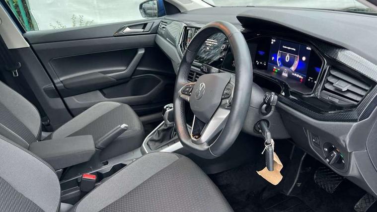 Advanced driver attention and drowsiness monitor, Bluetooth mobile phone interface, Dynamic road sign display, Emergency call service, Multifunction front facing camera for distance control, Park distance control, Power assisted speed sensitive steering, Predictive adaptive cruise control without follow-to-stop and speed limiter, Preparation for navigation system with media and internet package, Preparation for We connect and We connect plus, Rear view camera, Speedo and rev counter, electronic odometer, trip, service interval display and exterior temperature gauge, Standard rear axle, Travel Assist - Lane keeping system and traffic jam assist, Travel assist including emergency assist, Trip computer, Warning signal and warning light for front and rear seatbelts not fastened, Washer fluid level indicator, Wireless app connect, Front wheel drive, Rear shock absorpion, Start-stop system with battery regeneration (recuperation - energy recovery during braking), DAB Digital radio, Diversity antenna for FM reception, Front and rear 6 speakers, Automatic dimming interior rear view mirror, Automatic headlight control with LED separate daytime running lights with coming/leaving home function, Body colour bumpers with chrome inserts, Body colour door handles, Body colour door mirrors, Electric front windows, Engine badge deletion, Headlight range adjustment, Heat insulating and laminated safety glass windshield, LED Headlights, LED rear combination lamps, Power folding adjustable/heated exterior mirrors and front passenger exterior mirror lowering function, Rain sensor, Rear electric windows, Rear fog light, Rear side wing doors, Rear tinted glass from B-pillar backwards approx 65% tinted, Rear windscreen washer and wiper with interval delay, Third brake light, 12V power socket in centre console, 2 front and 2 rear reading lights with switch off delay and dimmer, 2 USB-C ports in the front, 2 USB-C charging sockets on the center console in the rear, 3 rear head restraints, 60/40 split folding rear seat and rear seat bench not split, Ceramique roof lining, Chrome plated radiator grille inserts, air vent surrounds and light switch surrounds, Door and side trim panel, Driver and front passenger seat height adjustment, Driver/passenger sunvisors with illuminated vanity mirrors, Front centre armrest, Front seat backrest storage pockets, Front standard seats, Handbrake lever handle in leather, Hartley/Thomas cloth upholstery, Headliner in recycled material, Isofix child seat preparation easy-fit (for two outer rear seats, and front passenger seat) compatible with I-size, Leather trimmed gear knob, Luggage compartment cover, Luggage compartment lighting, Removable luggage compartment floor, Single front passenger seat, Standard climatic zones, Standard pedal cluster, Three spoke leather wrapped multifunction steering wheel with shifting paddles, Light and vision pack - Polo, 3 point height adj front seatbelts + pretensioners, 3 point seat belt for centre rear seat, 3 point seatbelts, outer rear with ECE lable, ABS, Driver and front passenger airbag with front passenger airbag deactivation, Drivers and front passengers safety optimised head restraints, ESC (Electronic stability control) + EDL (Electronic Differntial lock) and ASR (Traction control), Extended and predictive pedestrian/ cyclist protection, Front assist with autonomous emergency braking (for Adaptive Cruise Control ACC up to 130 mph), Front curtain and side airbags with center airbag, Front disc brakes, Hill hold control, Manual child lock in rear doors, Rear drum brakes, Single tone horn, Tyre pressure loss indicator, Alarm with interior protection, Anti-theft alarm system with interior monitoring, backup horn, and towing protection, Anti-theft wheel bolts, Electronic engine immobiliser, Lava stone black gloss/matt decorative inserts in dash and front door panels, 16" Torsby alloy wheels, Low rolling resistance tyres,