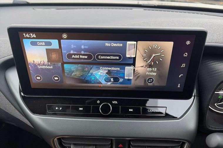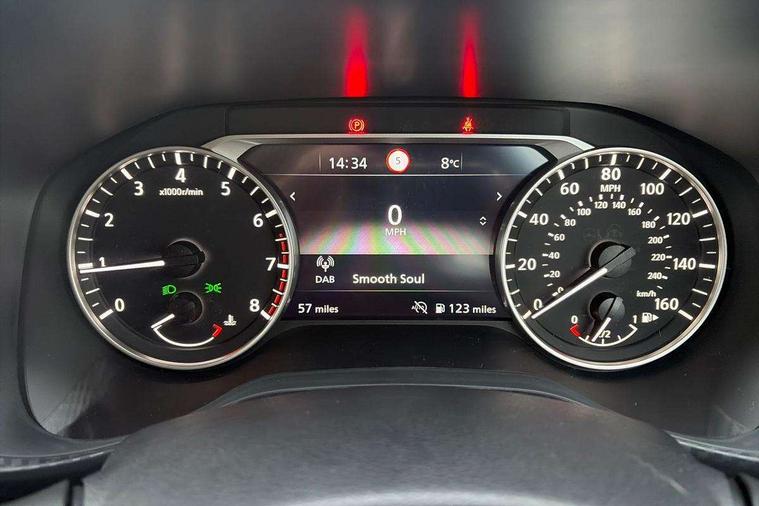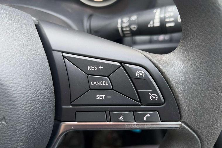7" full colour TFT screen combimeter, Cruise control + speed limiter, Emergency and breakdown call, Idle start/stop system, Intelligent driver alert system, Intelligent lane intervention, Lane departure warning system, Nissan connect 12.3" touch screen entertainment system, Outside temperature sensor, Power Steering, Rear view camera, Traffic sign recognition, Trip computer, Voice recognition, WiFi connectivity, Wireless Apple CarPlay and Google Android auto, 2 X Rear console USB port, 4 speakers, Bluetooth system, USB, Aux-in and 12V socket, DAB Digital radio, Automatic hazard signal with emergency stop signal, Body colour door handles, Electrically adjustable door mirrors with integrated indicators, Follow me home headlights, Front and rear electric window with one touch driver window, High beam assist, LED 3rd brake light, LED daytime running lights, LED headlamps, LED rear fog lamp, LED rear lamps, Manual dimming framed interior rear view mirror, Rear side wing doors, Rear wiper, Roof spoiler, Shark fin roof antenna in solid Black, Three blink turn signal, 3 height adjustable rear headrests, 3 seat bench in 2nd row, 60/40 split folding rear seat, Cloth upholstery, Driver/passenger sunvisors and vanity mirrors, Front and rear cabin lights, Front armrest, Front door pockets with bottle holders, Front head restraints, Height adjustable driver's seat, Luggage space lighting, Monoform sporty seats, Multifunction steering wheel, Rear door bottle holders, Single front passenger seat, Smooth synthetic leather steering wheel, Telescopic steering wheel adjustment, Two cupholders in front centre console, Two rear isofix child seat anchorage points with top tether, Welcome light and console tray ambient lighting, ABS with EBD and brake assist, Active ride control, Active Trace Control, Driver and passenger airbags, Driver and passenger side airbags, Electric handbrake with auto hold function, Electronic Stability Programme (ESP), Front and rear curtain airbags, Height adjustable seatbelts, Hill start assist, Intelligent emergency braking with pedestrian and cyclist recognition, Rear door child safety locks, Seatbelt reminder for driver/front passenger and rear seats, Three 3 point rear seatbelts, Traction control, Tyre pressure monitoring system, VDC Dynamic Vehicle Control, Alarm, Immobiliser, Remote central locking, 17" Sakura Flex wheels, Tyre puncture repair kit,