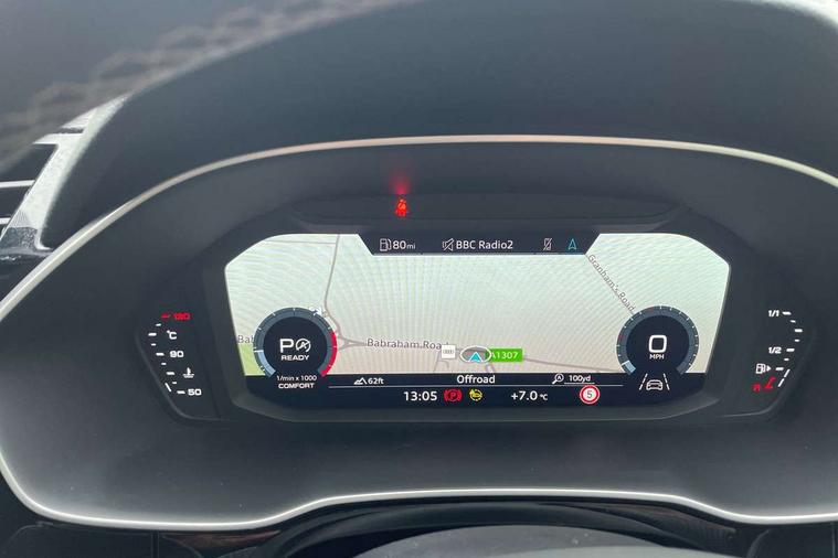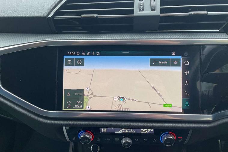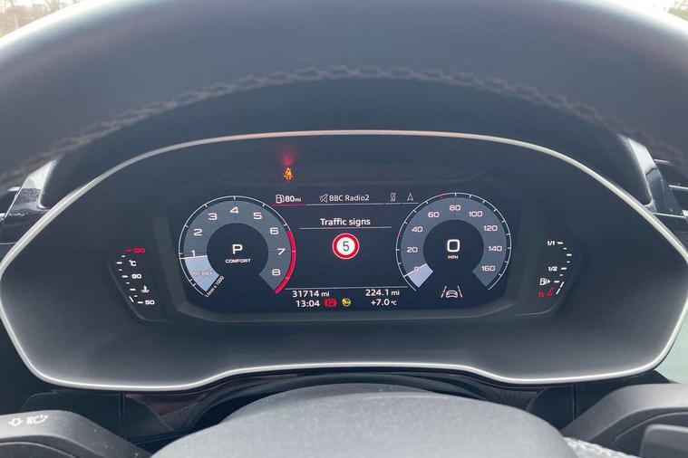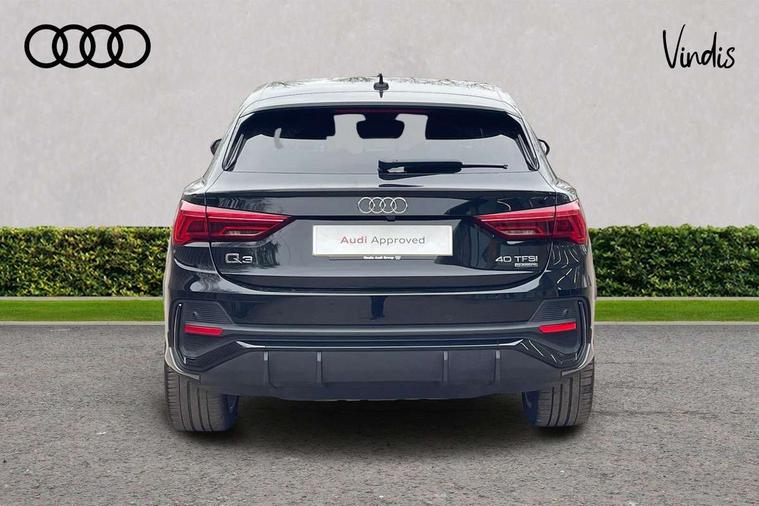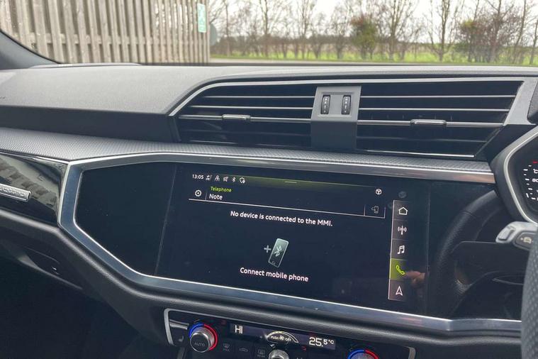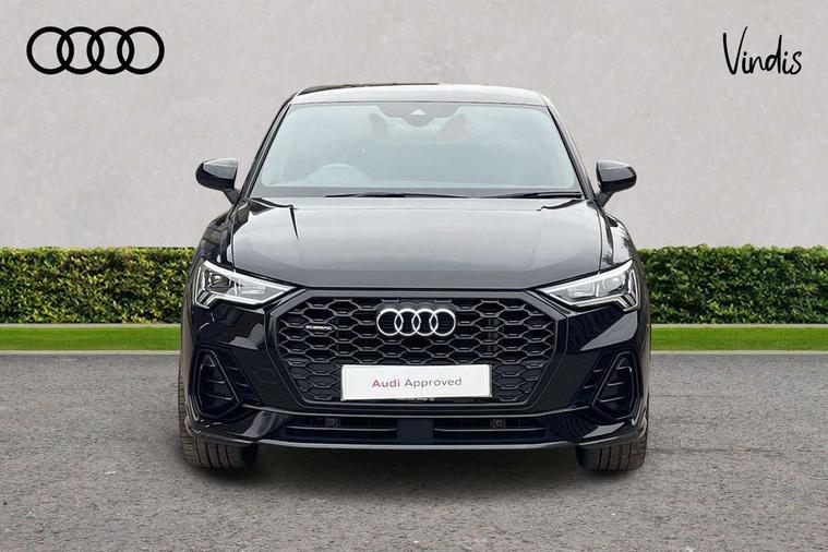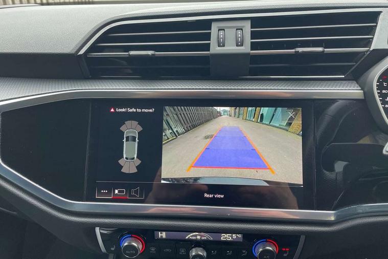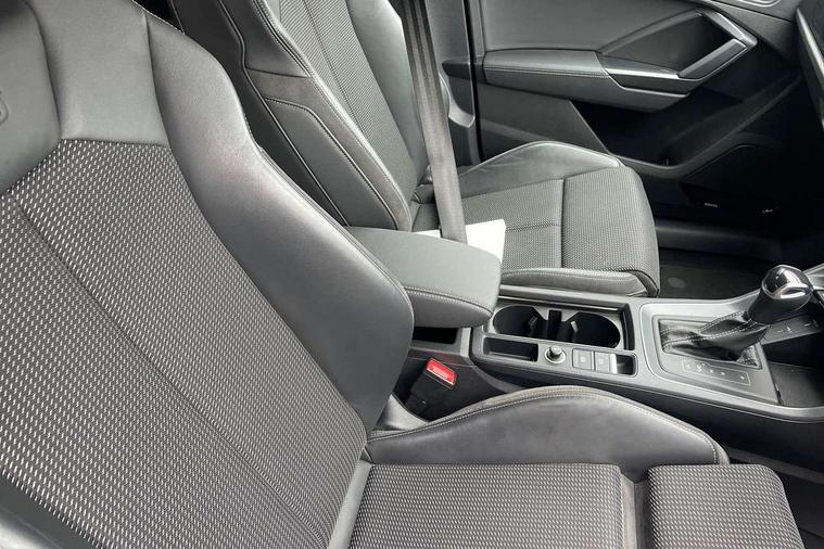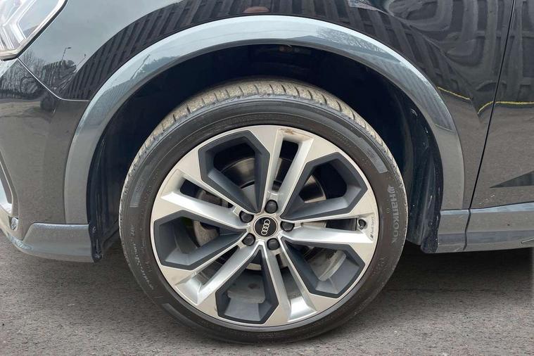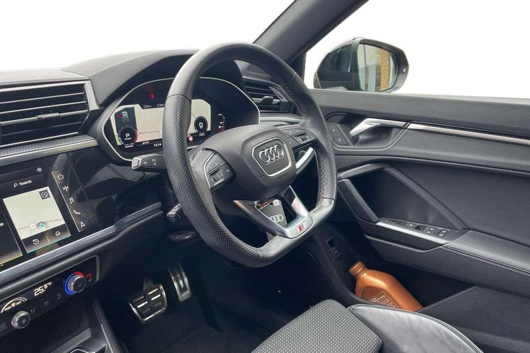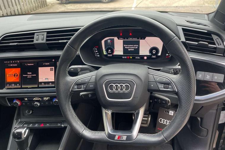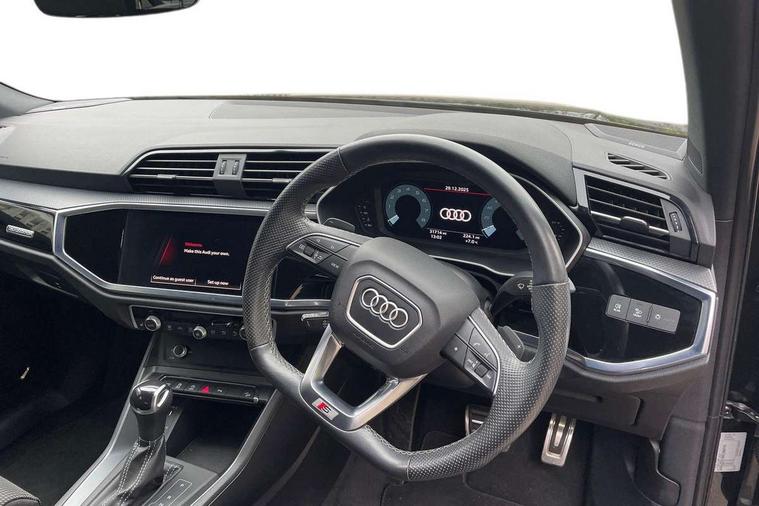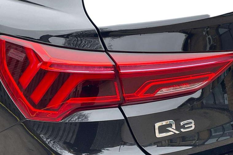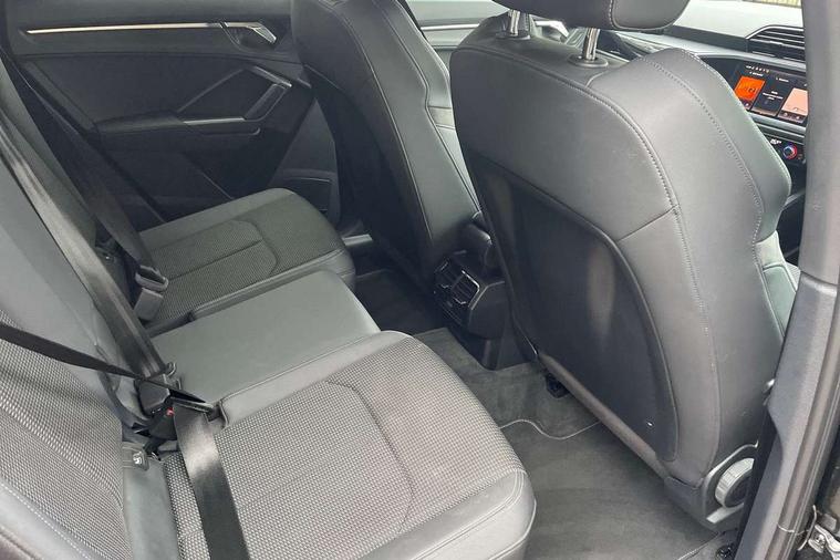 Audi connect safety and service (e-call), Audi drive select, Audi lane departure warning, Audi Virtual Cockpit - 10.25" display, Bluetooth interface, Camera based traffic sign recognition, MMI Navigation Plus with high resolution 10.1 inch touchscreen colour display, Power operated tailgate, Progressive steering, Service interval indicator, Smartphone interface includes wireless Apple carplay/Android Auto, Start stop system with recuperation, Voice control system with natural language interaction, Sports suspension, 2 USB-C ports with charge and data functions, 6 passive loudspeakers, DAB digital radio module, Acoustic windscreen, Auto dimming frameless rear view mirror, Bumpers and underbody protection in contrasting manhattan grey paint finish, Diffuser grille in grained matt black, Diffuser trim in selenite silver, Electrically folding, adjustable and heated door mirrors with integrated LED side indicators and kerb view function for passenger side, Front and rear electric windows, Front fog lights, Front side air inlets in selenite silver, High gloss black finish B and C pillars, LED headlights with LED daytime running lights and dynamic rear indicator, LED rear lights, Privacy glass dark tinted rear and rear-side windows (from B-pillar backwards), Rain and light sensors, Rear side wing doors, Rear underbody protection in matt black, Rear wiper, Third brake light, Tinted rear windows, Variable front intermittent wipers, 12V socket in rear centre console, 3 seat bench in 2nd row, 40:20:40 folding with manual adjustment for 60:40 forwards/backwards position and backrest angle, Adjustable rear seat bench/backrest with centre armrest and cupholder, Black cloth headlining, Dual zone electronic climate control, Front and rear black floor mats with contrast stitching, Front and rear headrests, Front and rear roof module including reading lights, Front centre armrest, Glove compartment lighting, Height and reach adjustable steering wheel, Illuminated door sill trims with S logo, ISOFIX child seat mounting for front passenger with airbag deactivation and outer rear seat including top tether attachment point for outer rear seats, Luggage compartment light, Manual front seats with height adjustment, Perforated leather gearknob, Single front passenger seat, Stainless steel luggage compartment sill finisher, Stainless steel pedals, Black styling pack - Q3, Non smoking pack - Q3, 3x3 point rear seatbelts, 6 airbags - Driver, front passenger, curtain and side windows, Audi pre-sense front with pedestrain and cyclist recognition, Electrically operated child locks on rear doors, Electromechanical parking brake, Electronic stabilisation control including ABS, ASR and EDL, Front seatbelt reminder, Hill descent control, Hill hold assist, Pre sense basic, Seatbelt monitoring, Tyre pressure warning, Warning triangle and first aid kit, Anti theft alarm, Anti theft wheel bolts, Immobiliser, Remote central locking, Black dashboard, Detail dashboard around MMI touch colour display in glass look, black with surround in aluminium look, Leatherette door armrest, Piano black inlay,