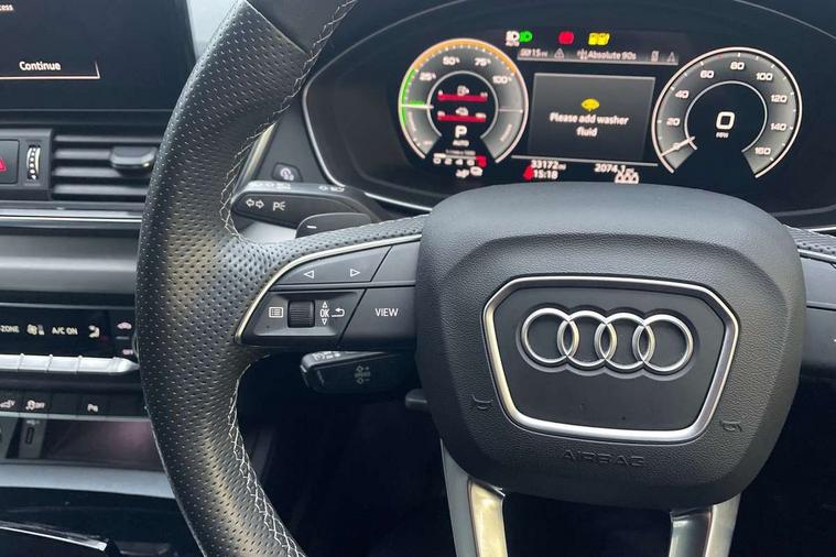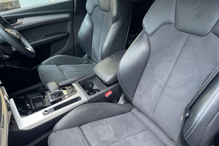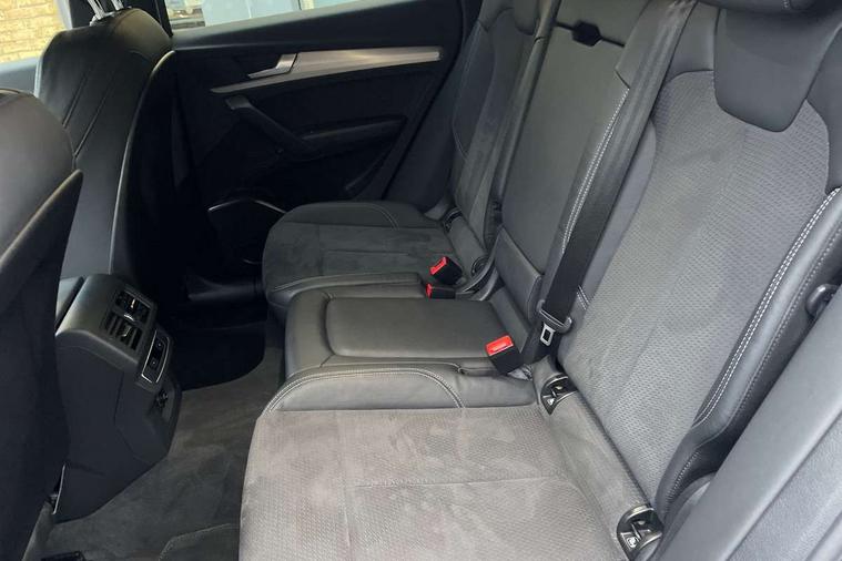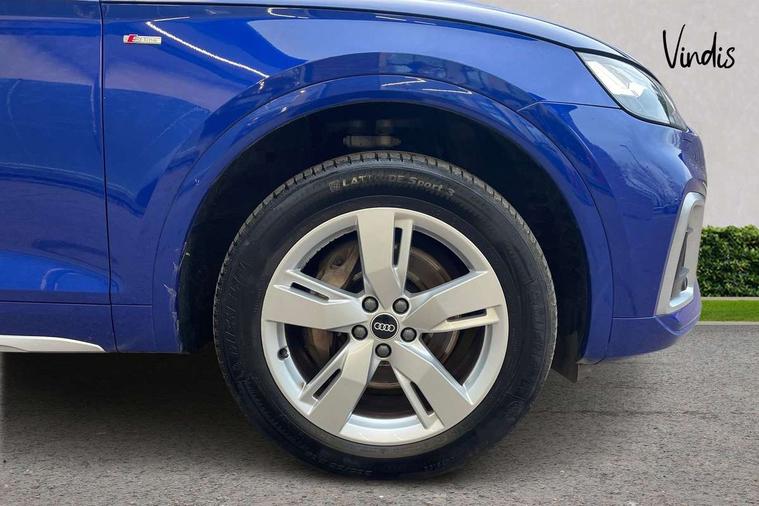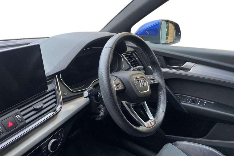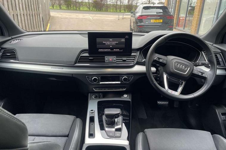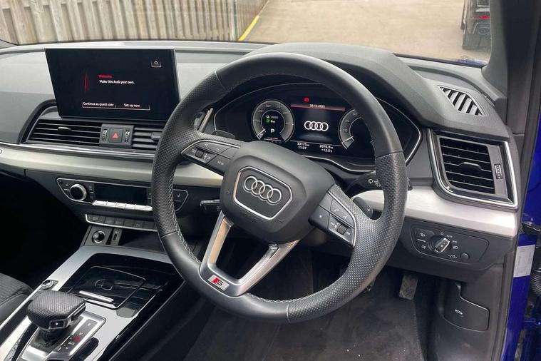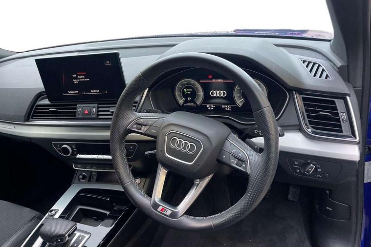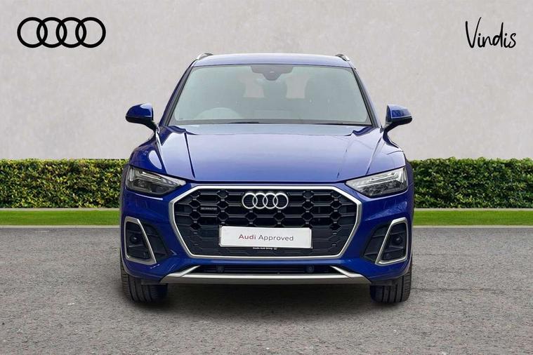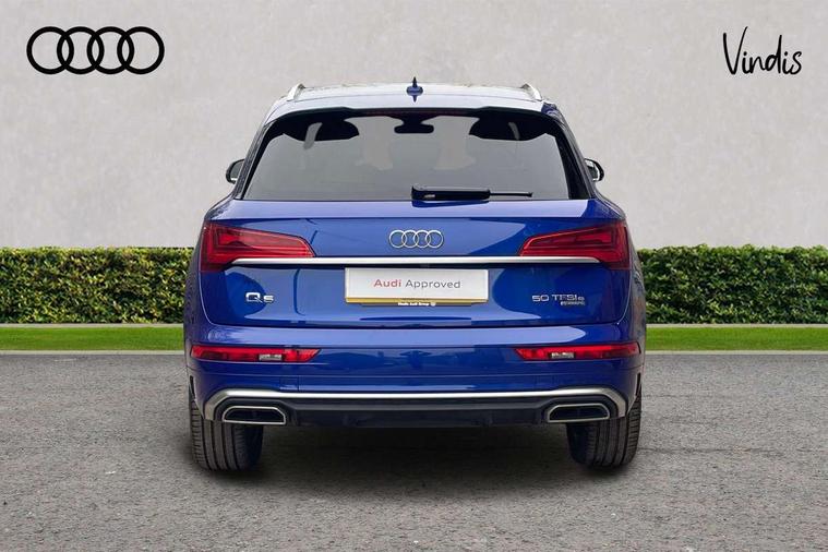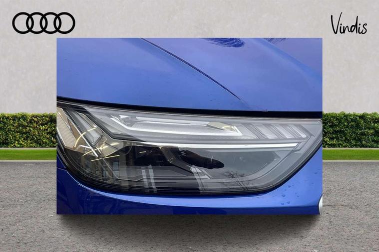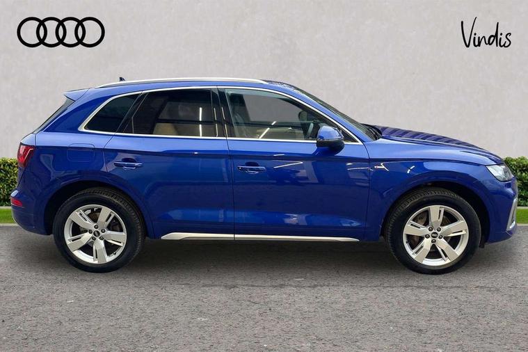 Audi connect safety and service (e-call), Audi connect with Amazon Alexa Integration, Audi drive select, Audi virtual cockpit plus with 12.3" screen and three different layout designs, Audi wireless smartphone interface, Automatic start-stop system with coasting functionality and efficiency programme, Bluetooth interface, Electro - mechanical power assisted steering, MMI navigation plus with 10.1" touch screen, Power tailgate, Reversing camera, Service interval indicator, Voice control system with Audi hotword activation "Hey Audi", 3 pin 10 amp domestic charging cable, 7.4 kW onboard charger, Dynamic suspension, Quattro on demand, Type 2 mode 3 22kW 32 amp charging cable, Type 2 socket for AC charging, 2 x USB charging port with aux input socket, DAB Digital radio, 3rd brake light, Acoustic windscreen, Aluminium roof rails, Audi matrix LED headlights with dynamic front and rear indicators, Auto dimming door mirrors, Auto dimming rear view mirror, Automatic headlights and windscreen wipers, Body colour bumpers, Body colour door mirrors, Body colour rear diffuser with matt aluminium silver surrounds, Body colour underbody protection, Chrome plated exhaust trims, Daytime running lights, Door sills in Selenite silver, Electric adjustable/heated/folding door mirrors, Front air inlet surrounds in aluminium, Front and rear electric windows, Front radiator grille in honeycomb design, Headlight washers, Lower bumpers painted in contrast Manhattan grey, Rear chrome trim strip below lights, Rear privacy glass and rear side windows, Rear side wing doors, Rear wiper, Roof bars, S Line badges on the front wings, S Line front and rear bumpers, S Line rear spoiler, S Line side skirts, 3 rear headrests, 40:20:40 split folding 3 rear bench seat in 2nd row with rear centre armrest, Black cloth headlining, Comfort front centre armrest, Contrast stitching on seats, steering wheel and gear lever gaiter, Deluxe 3 zone electronic climate control, Front/rear floor mats, Gear lever in black leather, Heated front seats, Height adjustable front head restraints, Height/reach adjustable steering column, Illuminated door sill trims with S logo, ISOFIX child seat mounting and top tether, Manual seat adjustment with 4-way electric lumbar support, Rear seat bench plus, Single front passenger seat, Sunvisors with vanity mirrors, Trunk roller cover, High gloss pack - Q5, LED interior light pack - Q5, 3 point seatbelts on all seats, 6 airbags - Driver, front passenger, curtain and side airbags, Electrically operated child locks on rear doors, Electromechanical parking brake, Electronic stabilisation control including ABS, ASR and EDL, Front passenger airbag deactivation, Hill descent control, Hill hold assist, Multi collision brake assist, Pop-up bonnet for pedestrian protection, Pre sense city, Seat belt force limiter, Seatbelt monitoring, Tyre pressure warning, Warning triangle and first aid kit, Anti theft alarm, Anti-theft wheel bolts, Keyless Go access/ignition system, Remote central locking, Matt brushed aluminium inlays, Tool kit, Tyre repair kit,