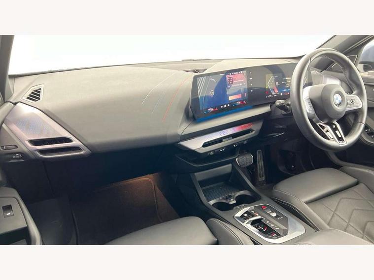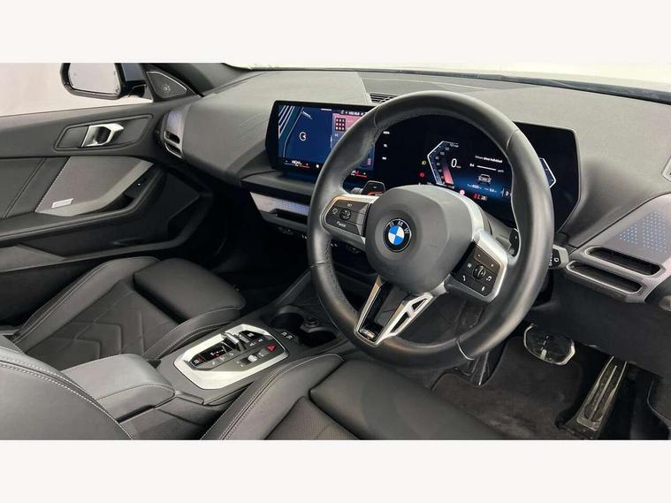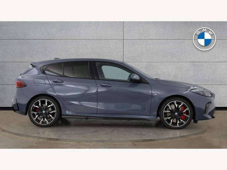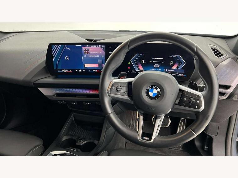 Active guard plus, Attentiveness assist, Bluetooth / WiFi interface for wireless connection of mobile terminal devices and audio streaming, BMW ConnectedDrive online services, BMW Live cockpit plus, BMW Teleservices, Check Control warning system for monitoring of lights and door/luggage compartment open warning, Cruise control with speed limiter, Eco pro mode, Electric power steering with Servotronic steering optimised at all speed ranges, Front and rear parking sensors, Front axle single joint with specific axle kinematics to minimise drive influences on steering + provide increased rigidity agile driving behaviour, Integrated owners handbook, Lane departure warning system, Oil sensor for level and grade, On board computer, Optimum shift indicator, Park assist including reversing assistant, lateral parking aid and reversing assist camera, Personal Profile, Pull away assistant, Rigidly mounted rear subframe - Multi link construction with separate spring / damper configuration and excellent driving characteristics, Speed limit Info including no-overtaking indicator, Speedometer, 49 litre fuel tank, Aluminium lightweight construction, Anti roll bar front and rear, Balancer shaft, Double VANOS twin scroll turbocharging system, Drive Performance Control, Electronic differential lock, High precision injection, M Adaptive suspension, Petrol Particulate Filter, Twin tube gas filled shock absorbers with degressive characteristic curve, VALVETRONIC engine management, DAB Digital radio, Auto dimming rear view mirror, Automatic headlight beam throw control, Automatic windscreen wipers and automatic headlight, Body colour door handles, Body colour mirror caps, Body colour roof trims, Chrome 'M' logo side designation, Chrome exhaust twin tailpipes round 90mm in left, Chrome kidney grille frame with Satin Aluminium struts, Direction indicator side lights in exterior mirrors, Electrically adjustable exterior mirror with mirror adjustment switch on drivers armrest and aspheric on driver side, convex on passenger side, Fading support, Folding side mirrors with auto dimming/folding wing mirrors with auto dimming, Follow me home headlights, Front and rear bumper system with replaceable deformation elements, Front and rear electric windows with open and close fingertip control, anti trap facility and comfort closing, Front door sill finishers in black plastic with M designation in metallic look, Green tinted heat protection glazing, High gloss shadowline window frame, Recess cover mirror frames and B/C pillar embelisher trim, High level third brake light, Integrated front windscreen with washer jets, LED daytime running lights, LED eyebrow turn indicators, LED front fog lights, LED Headlights, Lightweight engineering, Matt black air guide grilles, Matt black wheel arch trim, Nearside reverse light in rear light cluster, Preparation for high beam assistant, Rear fog lights, Rear side wing doors, Rear window wiper, Shark fin antenna, Trailer stabilisation logic, Visible VIN plate, Welcome lighting, 12V power socket in front centre console with blanking plug, 3 rear seat head restraints, 3 seat bench in 2nd row, 3 spoke sports leather steering wheel with black leather and stitching, pearl chrome decorative finish, specific M Badge, Anthracite headlining, Black boot net with lashing eyes, Cargo function on 2nd seat row, Child seat ISOFIX attachment for two outer rear seats and front passenger seat with anchorage points, Conditioned based service, Driver and front passenger backrest net on rear, Driver and front passenger seat heating, Driver side folding compartment in instrument panel, Folding rear clothes hook, Four grab handles integrated in roof lining, Front and rear door pockets with bottle holders, Front and rear side armrest integrated into door trim, Front armrest, Glove compartment, Height adjustable front head restraints, Luggage compartment for bag hooks on left and right, foldable luggage compartment liner and four lashing eyelets, Manual adjust steering wheel, Multi-function controls for steering wheel, Rear seat backrest with manual 60:40 split folding with 3 top tether clips integrated on rear of seat panels, Single front passenger seat, Storage compartment in centre console, Storage compartment in luggage compartment, Stowage of the parcel shelf in luggage compartment trim, Sun visors with vanity mirrors and insert tab, Two front centre console cupholders, Type C two USB ports in rear centre console, Velour floor mats, Connected pack professional - 1 Series, Interior lights pack - 1 Series, M Sport exterior styling aerodynamics pack - 1 Series, 2 tone horn, 3 point seatbelts on all seats, front pyrotechnic belt tensioners, stopper and belt force limiters, rear coded belt buckles, Airbags - Front driver/passenger, front and rear curtain head protection, front side, manual deactivation of front passenger airbag, Anti lock braking system (ABS) with brake assist, BMW emergency call, Brake drying, Braking readiness, Child proof locking system in rear door, Comfort modes, Cornering brake control, Crash sensor activating of airbags, Unlocking doors, hazard warning lights, interior light, safety battery terminal, Driver and front passenger seat belt security check, Dynamic stability control + (DSC+), Dynamic Traction Control - DTC, Electrically operated hand brake including automatic hold function, Front and rear disc brakes, Seatbelt warning, Side impact protection, Tyre pressure monitoring system, Warning triangle and first aid kit, Central locking switch for all doors, fuel filler cap and luggage compartment, Deadlocking function system to all doors, Drive away locking system on all doors and luggage compartment with de-activated in iDrive settings, Locking wheel bolts, Remote control with integrated key with High-gloss Black inlay and M designation and 1 button for open/ close lock, window, open luggage compartment, Start/stop button illuminated in centre console with keyless engine start and auto 