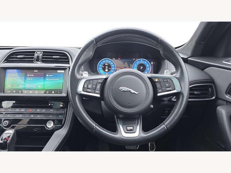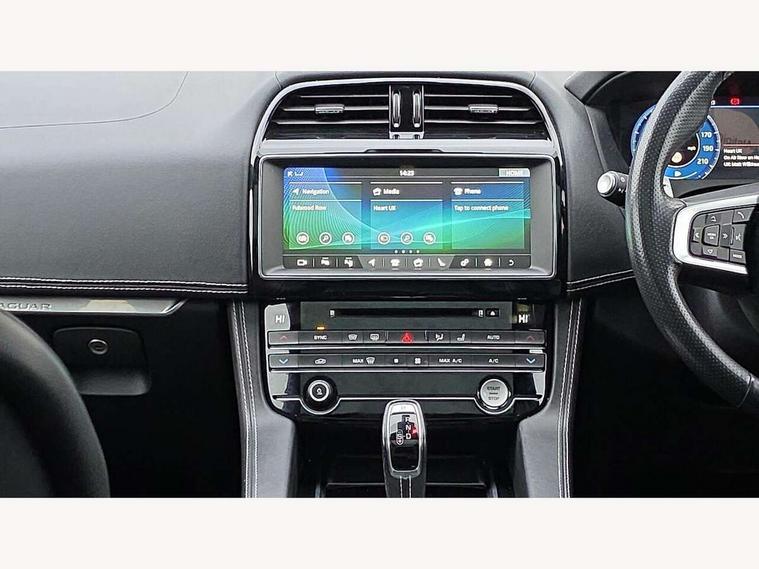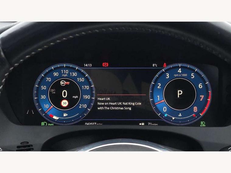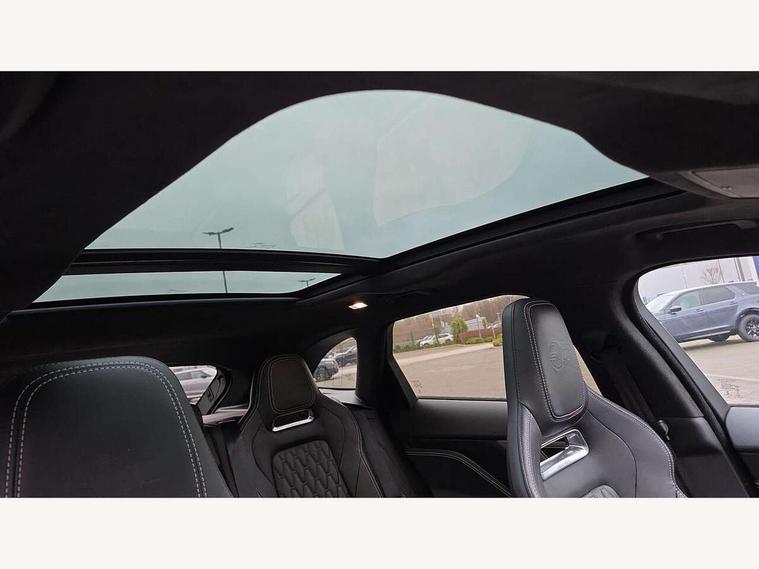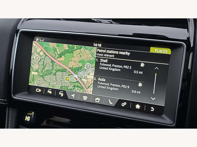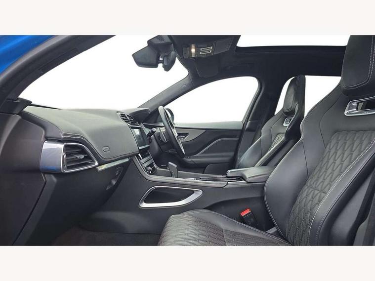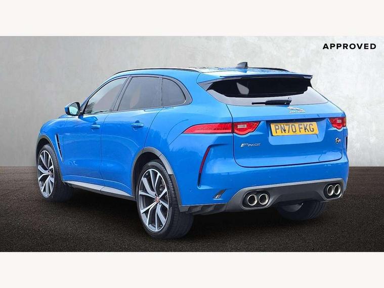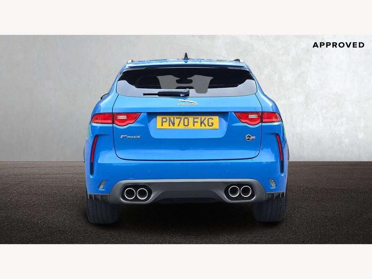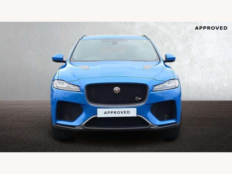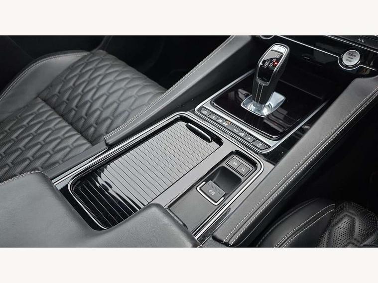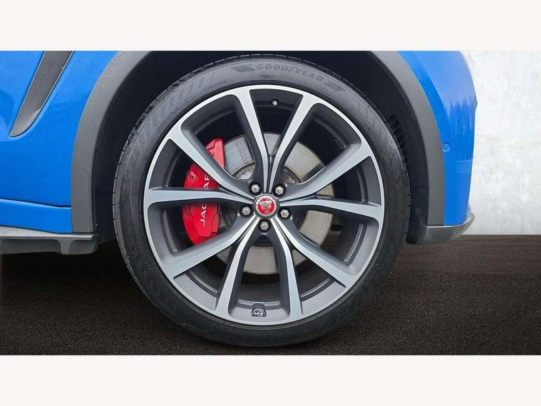 Android Auto, Apple car play, Driver condition monitor, Eco driving style assistant, Electric power assisted steering, InControl remote premium, Interactive Driver display instrument cluster, JaguarDrive control, Lane departure warning system, Lane keep assist with driver alert control, Outside temperature gauge, Power tailgate/boot lid, Pro services and wifi hotspot, Push button starter, Service interval indicator, Speed proportional steering, Sportshift selector, Start up sequence with movement in dials and lighting, Traffic sign recognition with adaptive speed limiter, Trip computer, Voice control system, 8 speed automatic transmission with quickshift, Adaptive dynamics, All terrain progress control, All Wheel Drive (AWD), Configurable dynamics, Electronic active differential with torque vectoring by braking, AM/FM radio, Bluetooth connectivity including audio streaming, DAB Radio (Digital Audio Broadcasting), Dynamic volume control, InControl apps, InControl protect, 'SVR' badge, 3 flash lane change indicators, Adaptive LED headlights with LED signature daytime running lights, Antenna roof pod in gloss black, Approach Illumination, Auto dimming rear view mirror, Auto high beam assist, Automatic headlights, Body colour bumpers, Body colour door claddings with satin grey finish, Body colour door mirrors, Electric folding, auto dimming, heated door mirrors with memory + approach lights, Electric front/rear windows with one touch/auto up/down, F-Pace badge, Gloss black grille with satin grey surround, Gloss black roof rails, Gloss black side window surrounds, Green tinted heat insulating glass, Headlight power wash, Heated front windscreen + heated washer jets, Heated rear window with timer, Jaguar script and leaper, LED tail lights, Non acoustic front windscreen, Quad tailpipes with 95mm finishers, Rain sensor windscreen wipers, Rear fog lights, Rear metal tread plates, Rear wiper, Satin grey bonnet louvres, Satin grey rear bumper valance, SVR front bumpers, SVR Satin grey side vents, Switchable active exhaust, Trailer stability assist, Variable front intermittent wipers, 12V power point front, 14 way electric adjustable front seats with driver memory, 3 rear headrests, 40/20/40 split folding SVR rear seat, Aluminium gear shift paddles, Bright metal foot pedals, Centre armrest console, Centre console with side storage, Ebony suede cloth headlining, Electrically adjustable steering column, Fold flat front seats, Front centre armrest with storage compartment, Front headrests with SVR embossing, Glovebox finisher with jaguar script, Heated and cooled front seats with heated rear seats, Heated steering wheel, Hooks in loadspace, Illuminated glovebox, Illuminated luggage compartment, Interior front door handles with separate locking switches, ISOFIX on outer rear seats, Jaguar sense, Lozenge quilted windsor upholstry, Luggage tie downs in loadspace, Overhead lighting console, Passive front head restraints, Performance seats, Rear air vents, Rear armrest with twin cupholders, Rear centre headrest, Reversible boot floor, Sunvisors with illuminated vanity mirrors, SVR leather steering wheel, SVR luxury carpet mats, Twin front cupholders with cover, 395mm front and rear brakes, 3x3 point rear seatbelts, ABS, All surface progress control (ASPC), Anti-whiplash front headrests, Autonomous emergency braking (AEB) with forward facing camera, Brake pad warning light, Driver/Front Passenger airbags, DSC - Dynamic Stability Control, Electronic parking brake, Front and rear curtain airbags, Front and rear seatbelt reminder, Front passenger seat occupancy sensor, Front side airbags, Hill launch assist, Power operated child locks, Red painted brake calipers, Torque vectoring brake, Traction control, Tyre pressure monitoring system, Immobiliser, Keyless entry, Keyless Start, Perimeter alarm, Remote central locking, Valet mode, Luxtec door trim, Luxtec wrapped instrument panel topper with SVR trim, Satin chrome centre console storage surround finishers, Satin chrome touchscreen surround,