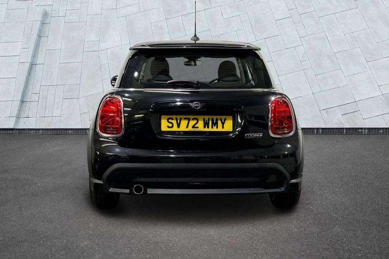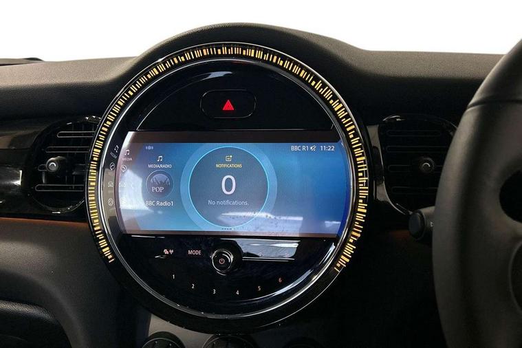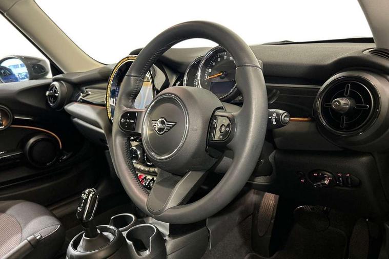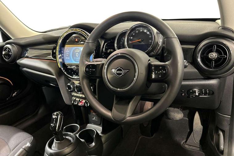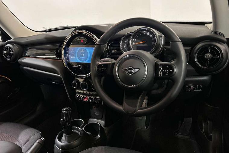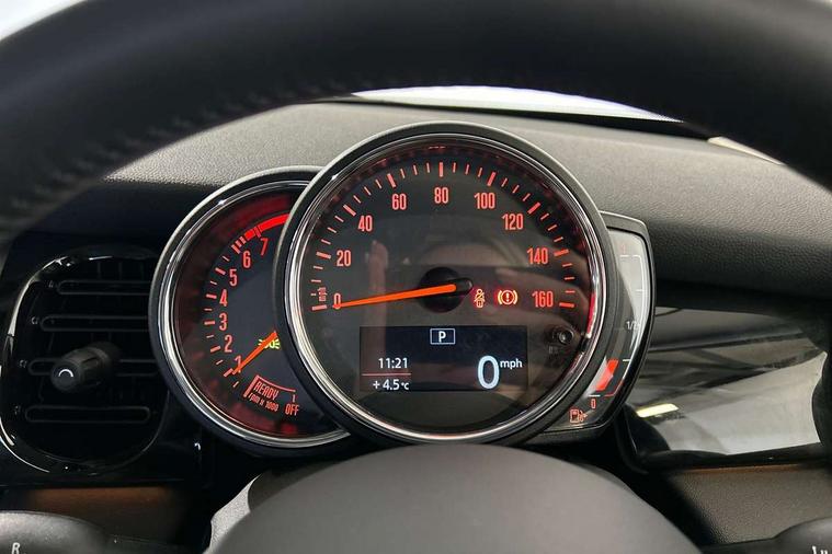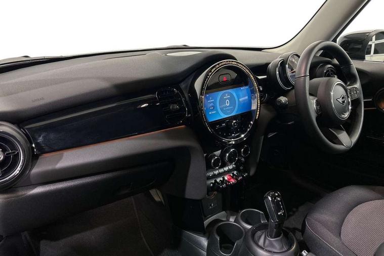 Apple CarPlay, Automatic start/stop function with brake energy recuperation, Compatible mobile phone bluetooth with audio streaming, Cruise control with brake assist, Electro-mechanical speed dependant steering assistance, Flexible car sharing preparation, Instrument cluster, Mini E-call, MINI TeleServices, On board computer, Service interval indicator, Double Vanos system, Fully variable valve control, High precision injection, Performance Control, Steptronic transmission with double clutch, 8.8" touchscreen with LED ring, FM tuner and DAB digital radio, 3rd brake light, Automatic headlight activation switch, Body colour fuel filler cap, Chrome border high gloss black slats radiator grille, Dynamic brake lights, Electric front windows, Exhaust tailpipe on left with chrome finisher, Heated rear window, Heated windscreen washer jets, LED headlight with closed ring and daytime driving lights, Metal door sill strips with MINI imprint, Model logo Cooper on right of tailgate, Rain sensor window wipers, Rear fog lights, Rear LED lights with union jack design, Rear window wiper, Side scuttle panel with integrated indicator, Sun/heat protection glass, White indicator lenses, 12V Accessory socket in centre console, 2 seat bench in 2nd row, 4 lashing eyes in luggage compartment, 60/40 split folding rear seat, Ambient lighting, Carbon black colour line - Knee roll and door armrest, Chrome interior highlights, Cupholders, Front and rear head restraints, Front and rear isofix with front passenger airbag deactivation, Front floor mats in velour, Glove compartment, Height and length steering column adjustment, Interior lighting with 12 different colours across the dashboard, underneath door bezel with illuminated laser-engraved design on central display, Leatherette gearshift lever and handbrake gaiters, LED reading lights, vanity mirror lights, front foot well light and spotlight on front seats, Manual air conditioning, Mechanical seat adjustment - forward/back & backrest for front seats and driver seat height adjust, Multifunction steering wheel, Passenger seat height adjuster, Satellite grey headlining including grab handles and clothes hooks, Single front passenger seat, Sport leather steering wheel with speed limiter and audio/communication controls, Storage compartments in doors, Sunvisors with vanity mirrors, 3 point seatbelts on all four seats, 6 Airbags - front, side, head and seat belt tensioners, Anti-lock braking system (ABS), DSC - Dynamic Stability Control, Front and rear disc brakes, Single tone fanfare horn, Tyre pressure monitoring system, Alarm system with tilt sensor, monitoring doors, bonnet interior and tailgate, Electronic vehicle immobiliser, Start/stop toggle with keyless go, Piano black interior trim, Tool kit, Tyre repair kit,