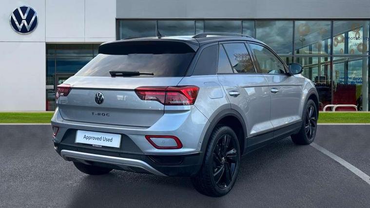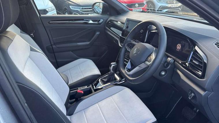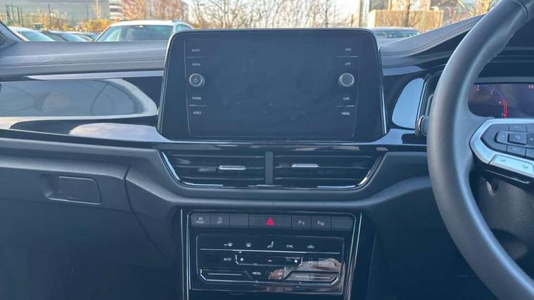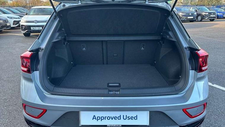 10.25" Digital cockpit pro, Advanced driver attention and drowsiness monitor, Emergency call service, Lane keeping system Lane Assist, Mobile phone interface, Modified key software - reduce switch off time for key status change to Long no motion, Online services, Park assist including front and rear parking sensors, Power assisted speed sensitive steering, Service interval indicator, Tailgate/trunk lid release from outside, Think blue trainer driver tips and journey analysis, Warning sound and light for front seatbelts unfastened, Wireless app connect, Battery regeneration during braking, Start/stop function with battery regeneration, DAB Digital radio, Diversity antenna for FM reception, Front and rear 6 speakers, Music playback - MP3, WMA and AAC files, Premium USB cable in choice of either Apple or Android smartphone compatibility, SD card slot, Simultaneous pairing of 2 compatible mobile devices, Title and cover art display, We Connect and We Connect Plus functionality, Auto dimming interior rear view mirror, Automatic hazard lights activation under emergency braking, Automatic headlight control with LED separate daytime running lights with coming/leaving home function, Body colour sports bumpers with silver metallic underbody fascia, Body coloured exterior mirror housings and door handles, Dynamic headlight range control with self adjusting whilst driving, Electrically adjustable and heated door mirrors, Extended roof spoiler, Exterior mirrors aspherical on driver side, convex on front passenger side, External USB type C socket and charging sockets, Front windscreen wiper with intermittent wipe and 4 position delay, Heated rear window, LED 3rd brake light, LED rear combination lamps, LED rear number plate lights, Light mode for poor weather, rain, fog or snow, Power windows with comfort operation and circuit breaker, Privacy glass for rear side windows and rear window, Rain sensor, Rear exhaust tailpipe, Rear fog light on one side and reversing lights on both sides, Rear side wing doors, Rear wash/wipe with intermittent wipe setting, Remote electrically foldable door mirrors, puddle lights and reverse activated passenger's door mirror, 12V power socket in centre console, 3 rear head restraints, 3 seat bench in 2nd row, 4 load lashing points in luggage compartment, Air care climatronic air conditoning system with active combination filter and 2-zone temperature control, Chrome plated radiator grille inserts, air vent surrounds and light switch surrounds, Door and side trim panel with leatherette insert, Drawer under drivers seat, Front + rear carpet mats, Front centre armrest, Front comfort sports seats, Front cupholders x 2, Front footwell illumination, Front seat back storage pockets, Glove compartment door with light, Instrument lighting, white adjustable panel illumination, Interior ambient lighting and surround lighting, Interior light delay, Isofix child seat preparation, Leather gearshift handle, LED interior light with switch off delay/dimmer and 2 front/rear LED reading lights, Load-through provision with cup holder when folded down ('Unsplit rear seat bench, split folding backrest, with centre armrest), Luggage compartment lighting, Non-folding front passenger seat backrest, Single front passenger seat, Storage compartment in left and right luggage area, Storage compartment in rear doors, Storage compartments in driver and front passenger doors, Sunvisors with illuminated vanity mirrors, Variable boot floor, height adjustable and removable, Driver assistance pack without proactive passenger protection - T-Roc, 3 point height adj front seatbelts + pretensioners, 3 point seatbelts in outer rear with ECE label, ABS, Child locks on rear doors, City emergency braking and pedestrian monitoring, Driver and front passenger airbag with front passenger airbag deactivation, Driver and front passenger safety-optimised head restraints, Drivers seatbelt reminder, Electronic parking brake, Electronic Stability Control (ESC) inc EDL (Electronic Differential Lock) and ASR (Traction Control), Front and rear passengers curtain airbag system including front side airbags, Predictive pedestrian protection, Rear disc brakes, Two tone horn, Tyre pressure loss indicator, Volkswagen roadside assistance, Deep iron grey decorative inserts in dashboard, centre console and front door trim panels, Trims for alloy wheels,