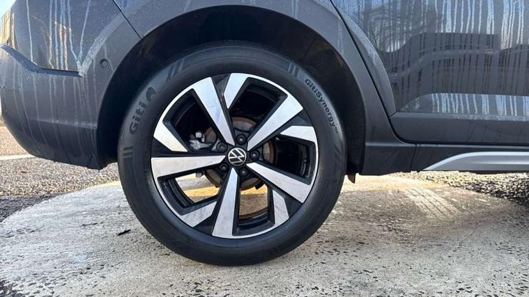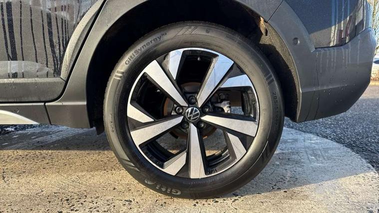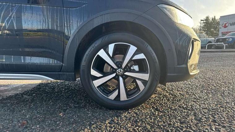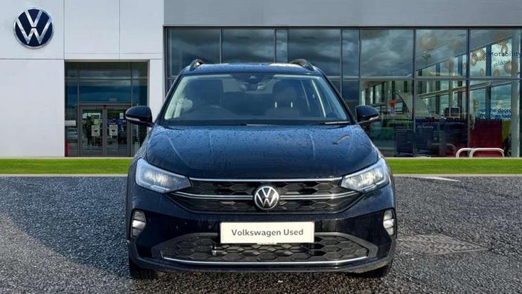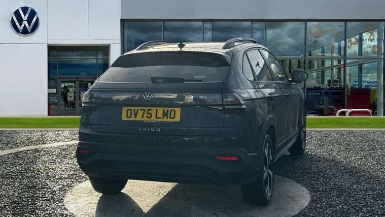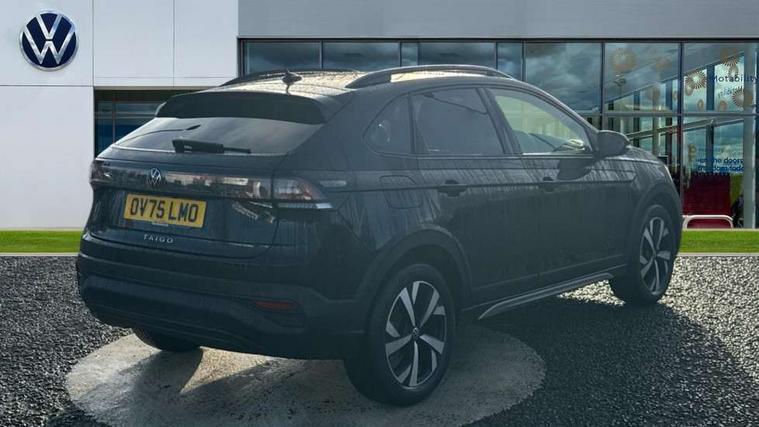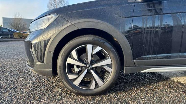 8" Digital cockpit basic display, Advanced driver attention and drowsiness monitor, Dynamic road sign display, e-Call (emergency call), Power Steering, Predictive adaptive cruise control, Rear view camera, Travel assist including emergency assist, Washer fluid level indicator, Wireless Charging including Bluetooth, Start-stop system with battery regeneration (recuperation - energy recovery during braking), Digital radio reception (DAB+), WeConnect plus, Ambient lighting with logo projection, Aspherical driver's exterior mirror, Body coloured bumpers, Body coloured exterior mirror housings and door handles, Electric windows, External USB type C socket and charging sockets, Heat insulating glass windscreen, LED rear combination lamp, LED third brake light, Left convex exterior mirror, Power folding adjustable/heated exterior mirrors and front passenger exterior mirror lowering function, Rear fog light on one side, reversing light on both sides, Rear side wing doors, Rear wash/wipe with intermittent wipe setting, Side windows in heat-insulating glass, from B-pillar and rear window dark tinted, 'Slash/ Austin' Cloth upholstery, 12V socket in centre console, 2 front reading lights, 3 rear head restraints, 3 seat bench in 2nd row, Black carpets, Ceramique headliner, Child seat anchor for child seat system i-Size, 2x top tether and child seat anchor in front on front passenger side, Door and side trim panels in titan black, Driver and front passenger seat height adjustment, Front centre armrest, Handbrake lever handle in leather, Height and reach adjustable steering wheel, Leather trimmed gear knob, Leather wrapped multifunction steering wheel, Luggage compartment floor, Luggage compartment light, Lumbar support for driver's and front passengers seat, Seat covers in titanium black, Single front passenger seat, Split folding backrest with centre armrest and unsplit rear seat bench, Storage compartment under front seats, Sun visors with illuminated vanity mirrors, Titanium black instrument panel, Chrome Package - Taigo, Drivers assistance package - Taigo, Light and sight pack - Taigo, 2 x 3-point seatbelts/outer rear seats with ECE label, 3-point seat belts in front with pretensioner and height adjustment, 3-point seatbelt for centre rear seat, Driver and front passenger airbag with front passenger airbag deactivation, Driver and front passenger safety-optimised head restraints, Electronic stability control, Extended and predictive pedestrian/ cyclist protection, Front and rear disc brakes, Front curtain and side airbags with center airbag, Hill start assist, Manual rear child locks, Single tone horn, Tyre pressure loss indicator, Anti-theft alarm system with interior monitoring, backup horn, and towing protection, Keyless locking and starting system keyless access with safelock, Black (slush) Dashboard, Lava stone black gloss/matt decorative inserts in dash and front door panels, Low rolling resistance tyres,