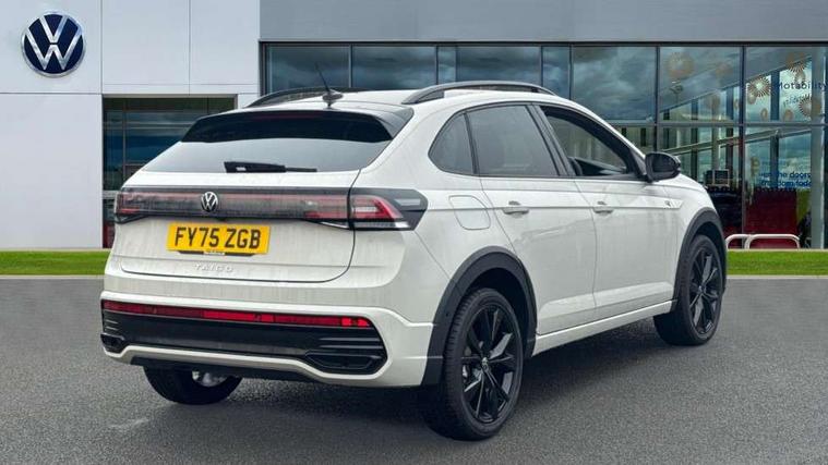 Adaptive cruise control, Advanced driver attention and drowsiness monitor, App-Connect including App-Connect Wireless, Digital cockpit pro - 10.25" high resolution TFT dash display screen with customizable menus and information, Driving profile selection, Dynamic road sign display, e-Call (emergency call), Power Steering, Travel assist including emergency assist, Washer fluid level indicator, Wireless Charging including Bluetooth, Start-stop system with battery regeneration (recuperation - energy recovery during braking), XDS electronic differential lock for improved traction and handling, Digital radio reception (DAB+), Diversity antenna for FM reception, WeConnect plus, Ambient lighting with logo projection, Aspherical driver's exterior mirror, Auto headlights, Body coloured bumpers, Bumpers in R-Line style, Electric windows, External USB type C socket and charging sockets, Front scuff plates with R-Line logo, LED rear combination lamp, LED third brake light, Left convex exterior mirror, Power folding adjustable/heated exterior mirrors and front passenger exterior mirror lowering function, Rear fog light on one side, reversing light on both sides, Rear side wing doors, Rear wash/wipe with intermittent wipe setting, 12V socket in centre console, 2 front reading lights, 3 rear head restraints, 3 seat bench in 2nd row, Air care climatronic air conditoning system with active combination filter and 2-zone temperature control, Black carpets, Black roof lining, Child seat anchor for child seat system i-Size, 2x top tether and child seat anchor in front on front passenger side, Chrome bezel for instrument cluster, vents, door handles + gear shift, Driver and front passenger seat height adjustment, Front + rear carpet mats, Front centre armrest, Front footwell illumination, Front sports comfort seats, Height and reach adjustable steering wheel, Interior ambient lighting and surround lighting, Karoso artvelours cloth upholstery, Leather trimmed gear knob, Leather wrapped multifunction steering wheel, Luggage compartment floor, Luggage compartment light, Lumbar support for driver's and front passengers seat, Seat covers in grey + titanium black, Single front passenger seat, Split folding backrest with centre armrest and unsplit rear seat bench, Stainless steel pedals, Storage compartment under front seats, Sun visors with illuminated vanity mirrors, Chrome Package - Taigo, Drivers assistance pack - Taigo, Light and Sight pack including High beam assist - Taigo, 2 x 3-point seatbelts/outer rear seats with ECE label, 3-point seat belts in front with pretensioner and height adjustment, 3-point seatbelt for centre rear seat, Adaptive driver and front passenger airbags with passenger airbag deactivation function, Driver and front passenger safety-optimised head restraints, Electronic stability control, Extended and predictive pedestrian/ cyclist protection, Front and rear disc brakes, Front curtain and side airbags with center airbag, Hill start assist, Manual rear child locks, Single tone horn, Tyre pressure loss indicator, Anti-theft alarm system with interior monitoring, backup horn, and towing protection, Grey anodised matte decorative inserts in dash and front door panels, Low rolling resistance tyres,