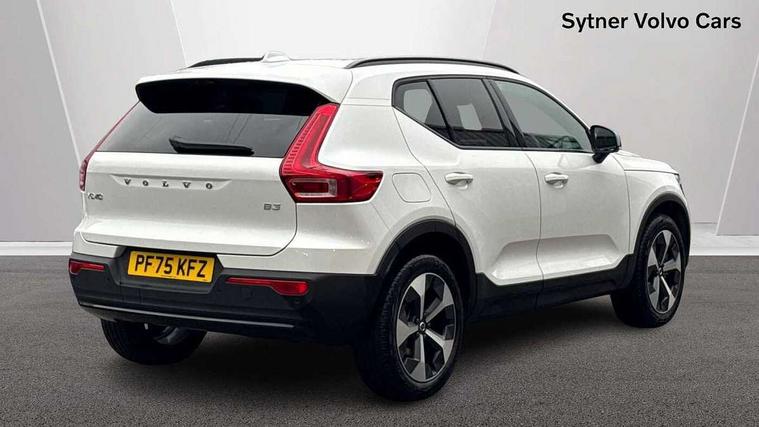 12.3" Progressive Driver Display, 9" centre console portrait touch screen, Adjustable steering wheel force, Android auto (Wired), Apple carplay (wired), Bluetooth handsfree system, Driver alert control, Driver assistance (pilot assist and adaptive cruise control), Driver awareness - Blind spot information system with steer assist, cross traffic alert with autobrake and rear collision warning and mitigation, E-call, Front and rear parking sensors, Front park assist, Google automotive services - Enabled entertainment apps, navigation with google maps, voice recognition with google assistant, Hands free power tailgate, Intelligent speed assistance, Lane keeping aid, Oncoming Lane Mitigation, Speed sensitive steering, Volvo cars services with app - Driving journal, emergency and breakdown call, engine remote start, remote door locking/unlocking and vehicle dashboard, Wireless/Inductive Mobile Phone Charging, Automatic transmission with start/stop and manual change functions, Dynamic chassis, DAB Digital radio, Steering wheel mounted remote controls, Adaptive brake lights with high level LED brake lights, Auto dimming feature for exterior door mirrors, Auto dimming interior mirror, Auto folding and heated power door mirrors, Automatic headlamp levelling, Automatic LED Headlights + Active high beam incorporating daytime running lights, Front aluminium tread plates, Front and rear electric windows, High gloss black front and rear skid plate, High gloss black front bumper deco, High gloss black mesh front grille with high gloss black surround, High gloss black window trim, Home safe and approach lighting, Integrated roof rails in high gloss black, LED front fog lights, Puddle lights, Rain sensor with automatic windscreen wiper activation, Rear side wing doors, Rear wiper, Roof antenna, Roof spoiler, Visible VIN plate, 12V socket in front tunnel console and luggage compartment, 2-Zone electronic climate control with CleanZone air quality system and pollen filter, 3 seat bench in 2nd row, 3 Spoke tailored steering wheel with chrome trim, 60/40 versatile split folding rear seat, Centre console cupholders and storage, Charcoal carpet and floor mats, Charcoal headlining, Connect suede textile/microtech upholstery, Flexible load floor and grocery bag holder, Front headrests, Front seat cushion extensions, Glovebox bag hook, Heated front seats, Height adjustable passenger seat, Height/reach adjustable steering column, High gloss centre tunnel deco, High level illumination - Front door pocket, front side step (under door), tailgate, instrument panel, front door inlay, rear courtesy&reading lights, Integrated waste bin, Isofix attachments on outer rear seats, Load cover, Load protection net, Mid level illumination - Front footwell, luggage & glovebox compartment, front cabin courtesy & reading lights, illuminated vanity mirrors+ticket holder, Multi directional lumbar support for driver and passenger seat, Power driver seat with memory + exterior mirrors memory, Rear armrest with cupholders, Rear headrests, Single front passenger seat, Underfloor luggage compartment storage, Climate pack without heated front seats - XC40, 3x3 point rear seatbelts, City safety with steering support with Pedestrian + cyclist + front collision warning with full auto brake and rear auto brake, Driver and passenger airbags, Drivers knee airbag, Electronic parking brake with auto hold, First aid kit, Front and outer rear seatbelt reminder and pretensioners, Front seats SIPS airbags, Hill descent control - Off-road drive mode, Hill start assist, IC (Inflatable Curtains) - Full Length, Passenger airbag cut-off device, Power child locks on rear doors, Road sign information display, Run off Road Protection, SIPS (Side Impact Protection System), Slippery road and hazard light alert, Stability and Traction Control with Spin control, Engine Drag Control and Corner Traction Control, Tyre pressure monitoring system, Vehicle deceleration control with Anti-lock Brake System, Electronic Brake Distribution and Emergency Brake Assist, Warning triangle, WHIPS whiplash protection system - front, 2 x Key integrated remote control central locking including with deadlocking system and auto open/close windows, Anti-theft alarm including immobiliser/volume sensor + level sensor, Keyless drive includes keyless entry and keyless start, Locking wheel nuts,