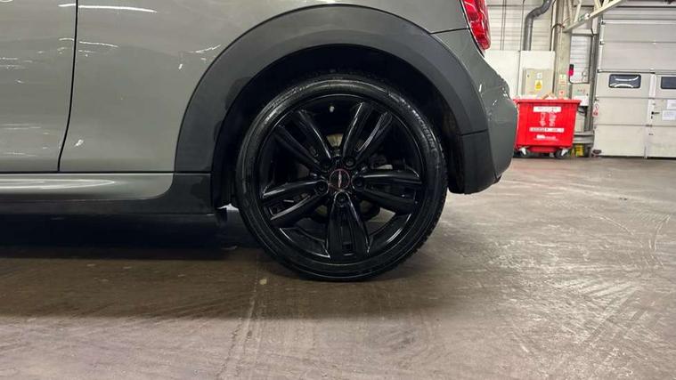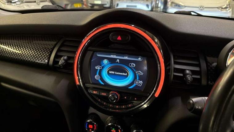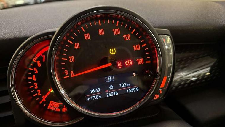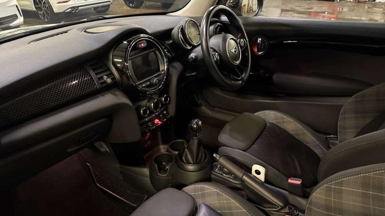 Acoustic seat-belt warning, Brake fluid level warning light, Brake pad wear indicator warning light, DTC - Dynamic traction control, Exterior temperature gauge, Intelligent emergency call, MINI TeleServices, Oil level indicator, On board computer, Push button starter, Service interval indicator, Servotronic PAS, Electronic differential lock, Performance Control, Auxiliary input socket, DAB digital radio module, 2 speed wipers+intermittent wipe, Anti dazzle mirror, Anti trapping/one touch open close front windows, Body colour scoop integrated into engine- compartment lid, Body coloured bumpers, Chrome bezels around rear lights and headlights, Chrome door handles, Chrome plated fuel cap, Chrome plated trim on bottom edge of window, Chrome strip on lower grille, Electric front windows, Electrically adjustable door mirrors, Flared wheel arches, Follow me home headlights, Green tinted heat insulating glass, Heated door mirrors/heated windscreen washers, Heated rear window with auto timer, High gloss black tailgate, Honeycomb radiator grille, Rear wiper, Twin chromed exhaust pipes, White indicator lights, 2 rear head restraints, 4 boot load lashing points, 4 way manually adjustable passenger seat with height, reach, tilt, backrest and headrest, 6-way manually adjustable driver's seat, Active carbon filter, Air recirculation system, Auxiliary socket in centre console storage compartment, Centre console storage, Driver's seat height adjuster, Driver/passenger sunvisors, Easy entry seats, Front and rear cupholders, Front head restraints, Front interior light, Front passenger grab handle, Front seat backrest storage nets, Front sports seats, Gear/selector and handbrake in artificial leather, Internal chrome door handles, Isofix child seat preparation, Luggage compartment lighting, Reach + rake adjustable steering column, Rear grab handles, Rear storage trays, Split folding rear seats, Storage compartments in doors, Toolkit in luggage compartment, 3 point seatbelts, ABS/EBD, ASC+T, Cornering brake control (CBC), Crash Sensor - activates hazard/interior lighting + unlocks doors, Driver and passenger airbags, Driver/front passenger side airbags, DSC - Dynamic Stability Control, Fuel cut off safety device, Head airbags, Hill start assist, Manual passenger airbag deactivation function, Seatbelt pretensioners, Tyre pressure warning, Ventilated front disc brakes, Drive away door locking, Locking wheel bolts, Remote central locking/doors+fuel cap+tailgate, Second remote key, Thatcham category 1 alarm + immobiliser,