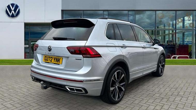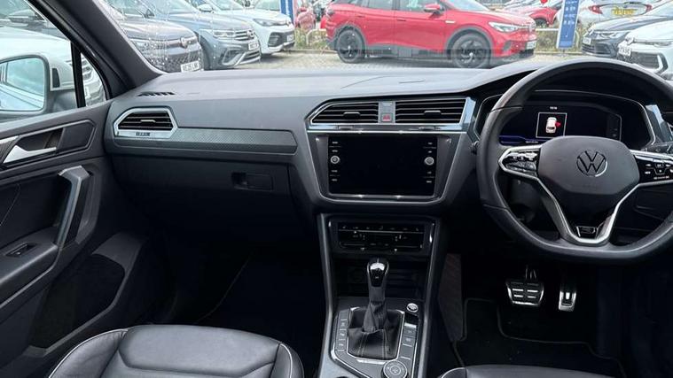 Adaptive cruise control ACC stop and go including speed limiter, App-Connect incl. App-Connect Wireless for Apple CarPlay and Android Auto, Bluetooth phone integration system, Distance control assist, Driver alert system, Driver profile selection, Dynamic road sign display, eCall emergency call system, Electromechanical speed sensitive power steering, Engine start/stop button, Lane keeping system Lane Assist, Lights on warning, Multifunction front facing camera, Outside temperature display, Premium multifunction display with multi colour display, Remote control boot opening, Rev counter, Revision / skills operating concept travel assistant, Service interval indicator, Speed limit display, Start/stop system with regenerative braking, Trip computer, Warning sound and light for doors and tailgate open, All wheel drive - 4Motion, Battery regeneration during braking, Diesel particulate filter, Misfuel prevention device for diesel engine, Selective Catalytic Reduction, XDS electronic differential lock for improved traction and handling, 4 X 20 watt output, 8 Speakers, Diversity antenna for FM reception, Radio, SD card slot, Simultaneous pairing of 2 compatible mobile devices, SMS functionality - read, compose and send SMS messages using touch-screen display, Title and cover art display, USB C ports, Auto dimming interior rear view mirror, Automatic headlight control system, Body colour door handles, Chrome moldings on the side windows, Coming/leaving home lighting function, Dynamic headlight range control, Front and rear electric windows, Heated rear window, High level 3rd brake light, Laminated safety glass windshield, heat and sound insulating, LED headlamps with LED separate daytime running light and dynamic cornering light, LED rear combination lamps, LED rear number plate lights, License plate carrier in front and rear, Poor weather light and cornering light, R Line body kit, R Line side sills, Rain sensor windscreen wipers, Rear exhaust tailpipe, Rear fog lamp, Rear side wing doors, Rear spoiler in R style, Rear windscreen washer and wiper with interval delay, Side and rear windows in heat insulating glass, Trailer Stability Programme, Unique R Line badging, Windscreen wipers/ intermittent wipe + 4 position delay, 12V outlet in center console rear and in luggage compartment, 12V outlet in front and tray, 2 cup holders in front, 2 LED front reading lights, 2 LED rear reading lights, 3 bench rear seats in 2nd row, 3 rear headrests, 4 load lashing points, 40:20:40 split folding rear seats, Air Care Climatronic 3 zone automatic climate control with enhanced air filter and controls in the rear, Backrest release for left front seat, Black headlining, Brushed stainless steel pedals and footrest, Carpet mats in front and rear with decorative stitching in Gray, Climate control unit rear with touch function, Door and side trim panel in foam film, insert in leatherette, Front centre armrest, Front footwell illumination, Front seats head restraints (x-adjustment), Height adjustable front seats, Height/reach adjust steering wheel, Instrument lighting white adjustable panel illumination, Interior light with delay, Isofix Preparation 2 Rear child seats, Leather gear knob, Lockable cooled glovebox, Luggage compartment lighting, Luggage net, Rear bench seat asymetrically split folding, longitudinally movable and folding with load-through hatch and center armrest, Remote unlocking for rear seat backrest, Removable luggage cover, Removable rear headrests, Safety optimised front head restraints, Single front passenger seat, Sliding/reclining rear seats, Standard rear seat release, Storage compartment in driver's door, Storage compartment in passenger's door, Storage compartment in rear doors, Storage compartments in luggage area left and right, Storage tray on dashboard, Sun visors with illuminated vanity mirrors, Top front comfort seats, Variable boot floor, height adjustable and removable, Driver assistance pack plus - Tiguan DSG, 3 point seat belt for centre rear seats, 3 point seat belts with seat belt pretensioners for the outer rear seats, Active bonnet, Curtain airbags for front and rear passengers, Driver/Front Passenger airbags, Drivers knee airbag, Electronic parking brake with auto hold, Electronic Stability Control with driver steering recommendation, ABS, ASR, EDL, EDTC and trailer stabilization, Front assist with autonomous emergency braking (for Adaptive Cruise Control ACC up to 130 mph), Front disc brakes, Front passenger airbag deactivation, Front side airbags, Height adjustable front 3 point seatbelts + pretensioners, Hill hold control, Manual child proof rear door locks, Pedestrian monitoring system, Power assisted brakes, Proactive passenger protection system in combination with front assist, Rear disc brakes, Rigid safety cell with front and rear crumple zones, Two tone horn, Warning sound and light for front seat belts if unfastened, Anti theft alarm system with interior monitoring, backup horn and towing protection, Anti theft wheel bolts, Electronic engine immobiliser, Tool kit,