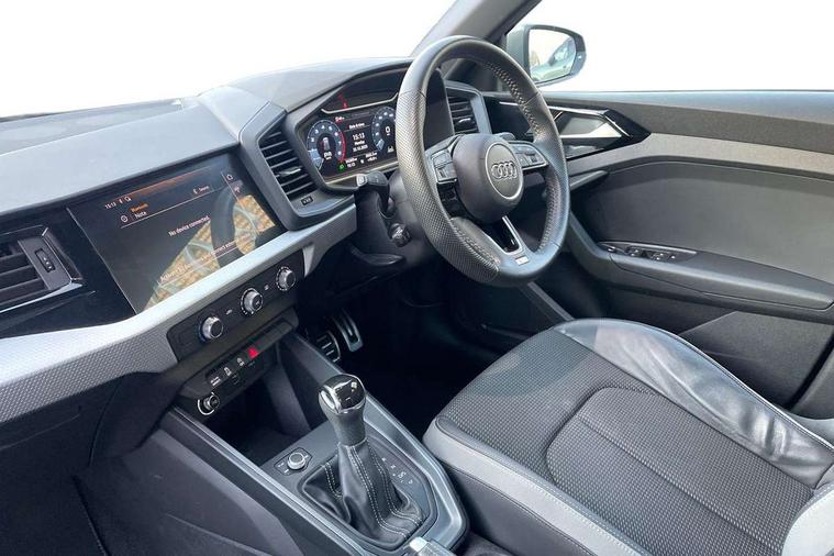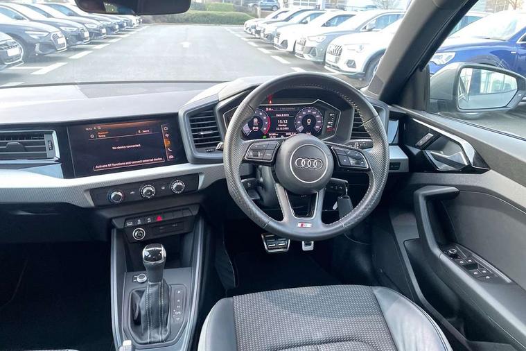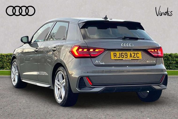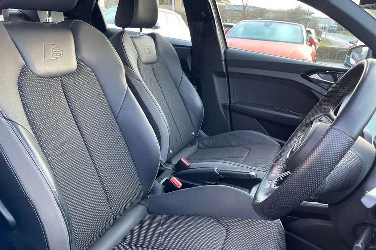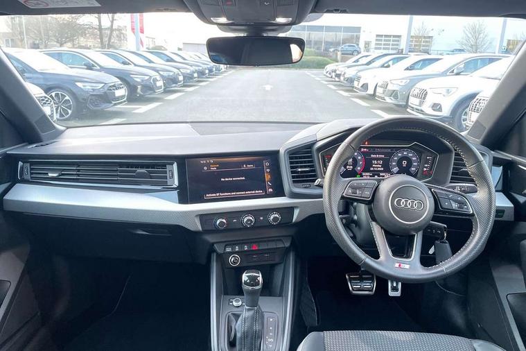 10.25" Digital instrument cluster display classis style instrument dials + speed, odometer, time, outside temperature, telephone menu + fuel level warning, Audi connect safety emergency and service including E-call, Audi drive select - power steering assistance + engine + gear shift 3 preset modes (auto, dynamic, efficiency and an Individual mode), Audi smartphone interface with connect compatible smartphone via USB directly MMI display + Nav, music, third party apps controlled via MMI controller, Automatic start/stop system, Bluetooth interface, Cruise control, Driver's information system, Electromechanical power steering, Lane departure warning system, Rear parking sensor, Service interval indicator, Speed limiter, Voice control system, Washer fluid level indicator, Sports suspension, 1 x SDXC card reader, 1 x USB type C and 1 USB type A charging points, DAB Digital radio, MMI radio plus with 8.8" colour MMI display screen and MMI touch, Auto dimming rear view mirror, Body coloured door mirrors, Door sills with aluminium inlays and S Line logo, Electric front and rear windows, Electrically adjustable, heated, folding door mirrors with integrated LED side indicator, Front side air inlets in grained matt black and C frame in titanium black, Heat insulating glass windscreen and side windows, Heated rear windscreen, LED headlights with LED rear lights + dynamic rear indicators + headlight adjustment and high beam, turning light + LED daytime running lights, Radiator grille and rear diffuser in matt titanium black, Radiator protective grille frame in matt aluminium silver, Rain and light sensors, Rear fog lights, Rear wiper, S line badges on front wings, Side front spoiler lips in grained matt black, 12V socket in centre console with two cup holders, 3 rear seats with headrests, 40:60 Split folding rear seat or folded fully, Black cloth headlining, Driver and passenger seat with manual height adjust with forward and backwards adjustment, Front and rear black floor mats with contrast stitching in fine silver, Front head restraints, Height and reach adjustable steering wheel, ISOFIX child seat mounting for front passenger and outer rear seats including top tether attachment point of outer rear seats, Leather gear knob with aluminium trim, Luggage compartment light with front and rear reading lights, Manually adjustable lumbar support in front seats, Stainless steel pedals, LED interior lighting pack - A1, Luggage compartment pack - A1, S line exterior styling pack - A1 Sportback, 3x3 point rear seatbelts, Audi pre-sense front with pedestrain and cyclist recognition, Brake assist function, Driver and front passenger airbag with front side and head airbags, Electronic Stability Control including ABS, EBD, ASR and EDL, Front and rear seatbelt reminder, Front passenger airbag deactivation switch, Hill hold assist, Seatbelt height adjustment for front seats, Seatbelt monitoring, Tyre pressure warning light, Warning triangle and first aid kit, Anti theft alarm, Anti theft wheel bolts and loose wheel warning, Immobiliser, Remote central locking with 2 foldaway keys, Aluminium trim for control switches, air vents and digital instrument cluster, Silver grey inlays polygon structure in diamond paint finish, Structured grey accent areas including air vents, door handle recesses and centre console in quartz paint finish,