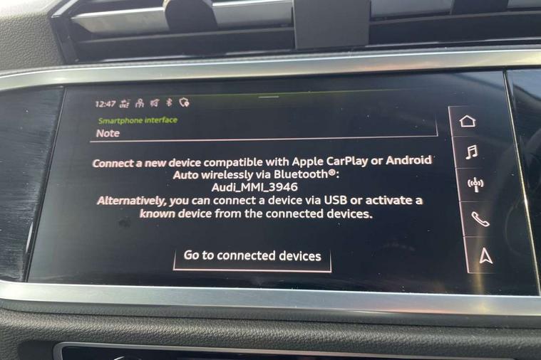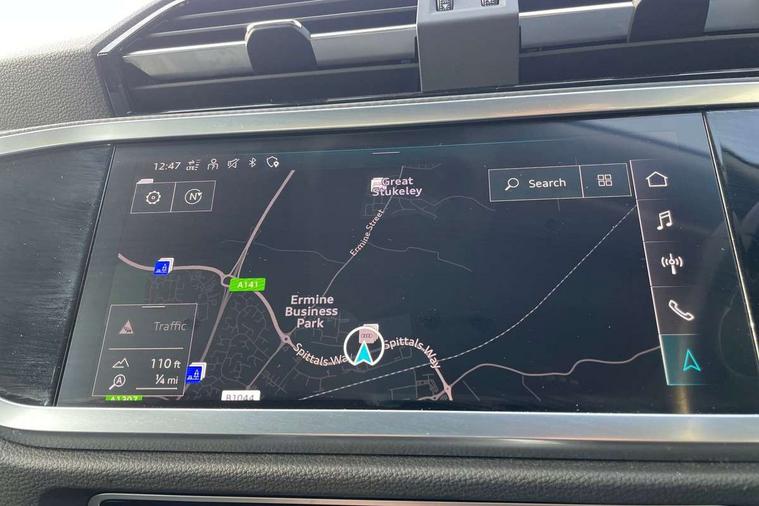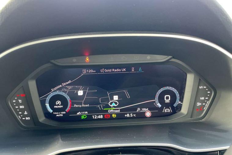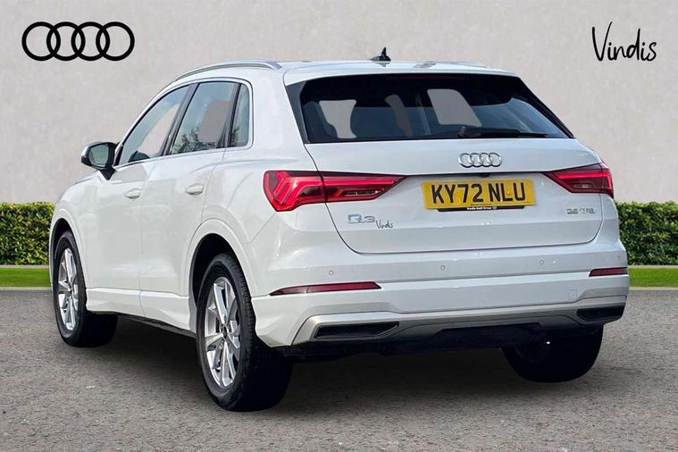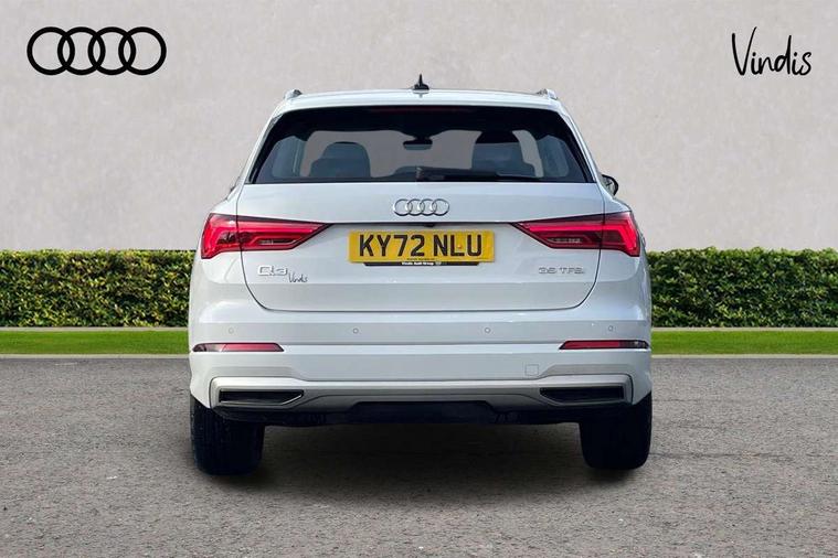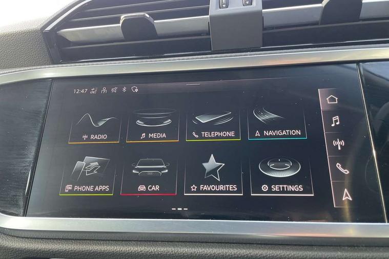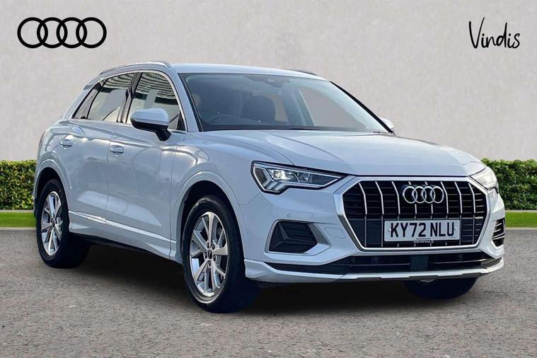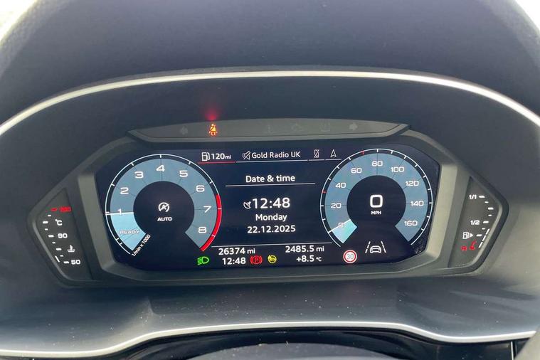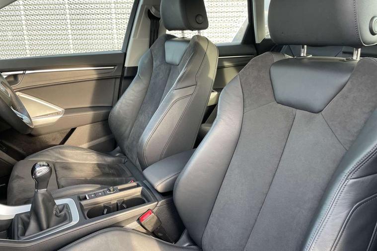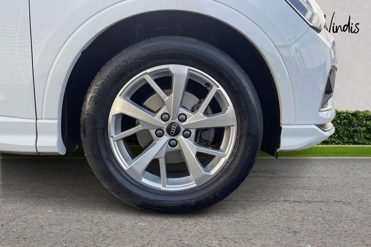 Amazon alexa Integration, Audi drive select, Audi lane departure warning, Audi Virtual Cockpit - 10.25" display, Bluetooth interface, Camera based traffic sign recognition, Cruise control + speed limiter, Legal emergency call, MMI Navigation Plus with high resolution 10.1 inch touchscreen colour display, Power operated tailgate, Progressive steering, Rear parking sensors, Service interval indicator, Smartphone interface includes wireless Apple carplay/Android Auto, Start stop system with recuperation, Voice control system with natural language interaction, Standard suspension, 2 USB-C ports with charge and data functions, 6 passive loudspeakers, DAB digital radio module, Acoustic windscreen, Aluminium roof rails, Aluminium window trim, Auto dimming frameless rear view mirror, Body coloured bumpers, Electrically folding, adjustable and heated door mirrors with integrated LED side indicators and kerb view function for passenger side, Front and rear electric windows, Front fog lights, Front side air inlets in matt selenite silver, Front spoiler in matt selenite silver, Grille vertical bars in aluminium silver/Matt, High gloss black finish B and C pillars, LED headlights with LED daytime running lights, LED rear lights, LED third brake light, Rain and light sensors, Rear diffuser strip in matt selenite silver, Rear side wing doors, Rear wiper, Titanium black radiator grille, Variable front intermittent wipers, 12V socket in rear centre console, 3 seat bench in 2nd row, 3 spoke multi-function leather steering wheel, 40:20:40 folding with manual adjustment for 60:40 forwards/backwards position and backrest angle, Door sill trims with aluminium inlay, Dual zone electronic climate control, Front and rear floor mats, Front and rear headrests, Front and rear roof module including reading lights, Front centre armrest, Glove compartment lighting, Height and reach adjustable steering wheel, ISOFIX child seat mounting for front passenger with airbag deactivation and outer rear seat including top tether attachment point for outer rear seats, Luggage compartment light, Lunar silver cloth headlining, Manual front seats with height adjustment, Single front passenger seat, Stainless steel luggage compartment sill finisher, Non smoking pack - Q3, 3x3 point rear seatbelts, 6 airbags - Driver, front passenger, curtain and side windows, Audi pre-sense front with pedestrain and cyclist recognition, Electromechanical parking brake, Electronic stabilisation control including ABS, ASR and EDL, Front seatbelt reminder, Hill descent control, Hill hold assist, Manual child lock in rear doors, Pre sense basic, Seatbelt monitoring, Tyre pressure warning, Warning triangle and first aid kit, Anti theft alarm, Anti theft wheel bolts, Immobiliser, Remote central locking, Detail dashboard around MMI touch colour display in glass look, black with surround in aluminium look, Micrometallic silver inlay,