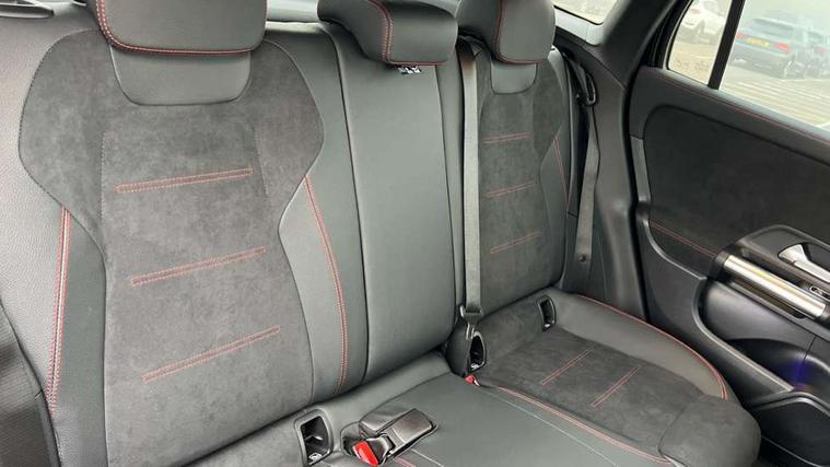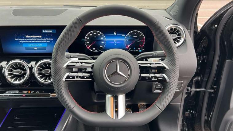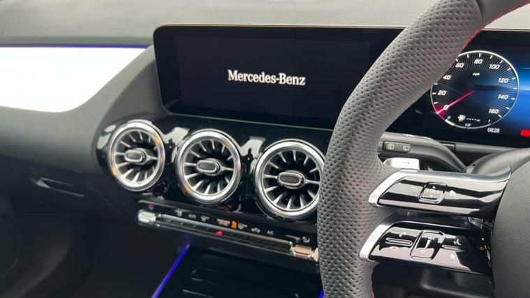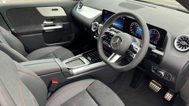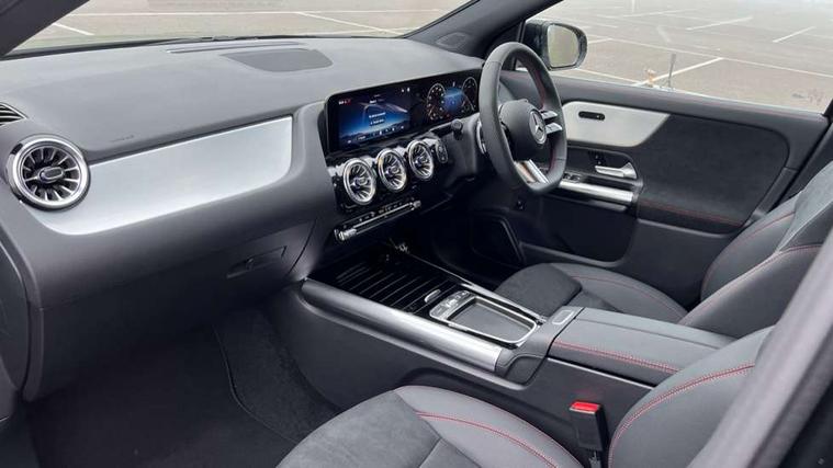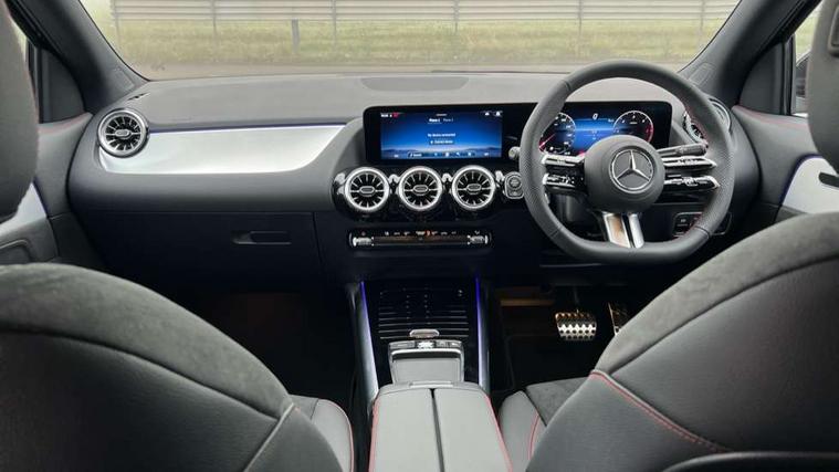10.25 inch touchscreen central media display, 10.25" Digital instrument cluster display screen, Attention assist, Blind spot assist, Direct steering, DYNAMIC SELECT with a choice of driving modes (ECO, Comfort, Sport and Individual), ECO start/stop function, Fluid level warning indicator for fuel, oil, coolant and washer fluid, Hard-disk navigation, Hey Mercedes Voice activation, Lamp failure indicator, Lane keeping assist (LKA), Mercedes me connect including emergency call system, accident recovery, breakdown and maintenance management, Mercedes me remote services, Multi function trip computer, Outside temperature gauge, Owners manual and service booklet in English, Pre-installation of private car share, Radio aerial integrated into front and rear windshields, Service indicator (ASSYST), Smartphone integration with Apple CarPlay and Android auto, Speed limit assist, Wireless charging, Lowered comfort suspension, Rear axle multi-link, Bluetooth connectivity including audio streaming, DAB Digital radio, MBUX multimedia system, Mercedes Benz sound system (100 W) with 6 speakers, Adaptive brake lights, Adaptive highbeam assist, Aluminium roof rails, AMG front apron with front splitter in the colour of the vehicle with chrome trim element, AMG rear apron with visible tailpipe trim and chrome trim element, AMG specific/dual flow exhaust pipes in chrome (non-functional), Automatic headlamp activation, Beltline trim and window line trim strip in high gloss aluminium, Black grained side sill trim with chrome inlay, Car wash function, Dark privacy glass from B-pillar backwards, Electric front windows, Electric rear windows, Electrically adjustable and heated door mirrors with integrated LED indicators, Exhaust system with 2 Visible tailpipe trim elements and rear apron with trim in chrome, Heat insulating dark tinted glass, Heated glass rear windscreen + timer control, Interior mirror with black reading lamps and frameless, LED high performance headlamps with integrated LED daytime running lights, LED tail lights, LED third brake light, Rain sensor windscreen wipers, Rear fog lights, Rear side wing doors, Rear wiper, Wheel arch liners in the colour of the vehicle, 3 seat bench in 2nd row, 3 spoke flat bottom multifunction nappa leather steering wheel, 4 way lumbar support, 40:20:40 split folding rear seat backrests, Adjustable head restraints, Air conditioning - air vents with silver chrome surround, Air conditioning - One zone THERMATIC automatic climate control with automatically controlled air distribution, AMG floor mats, Artico man-made leather/Microcut microfibre upholstery with red contrast stitching, Auto Mercedes-Benz child seat recognition sensor, Black roof lining, Courtesy light in boot, Fluorescent jacket, Front centre armrest with stowage, Galvanished gear shift paddles on steering wheel in silver chrome, Heated front seats, Illuminated glovebox, Interior lighting - 64 colour Ambient lighting, Luggage net on driver/front passenger seat backrest, Manually height and reach adjustable steering column, Single front passenger seat, Sports pedals in brushed stainless steel with black rubber studs, Sports seats, Sports steering wheel, Stowage compartment in centre console, Stowage compartment with retractable cover, Sunvisors with illuminated vanity mirrors, Twin front cup holders, Two outer rear seat isofix and top tether child seat fixing points, Comfort seat pack - GLA Class, Interior lighting with light and sight pack - GLA, Keyless go comfort package - GLA, Mirror pack - GLA Class, Parking package with reversing camera - GLA, USB package plus - GLA, Winter package - GLA, 3 rear 3 point seatbelts, ABS with Brake Assist, Active bonnet pedestrain safety measure which detects an impact and raises bonnet by 65mm, Active brake assist includes forward collision warning system with autonomous braking, Adaptive brake assist with hold function and hill start assist, Black seatbelts, Bonnet with power domes, Brake pad wear warning indicator, Childproof locks manually operated for rear doors and electrically operated for rear power windows, Crash responsive emergency lighting, Driver and passenger head and side airbags, Drivers knee airbag, Dual stage driver/passenger airbags, Electronic parking brake, ESP curve dynamic assist, ESP with ASR, Front and rear seatbelt reminder, Front brake callipers with Mercedes Benz logo lettering on front, Front brake discs internally ventilated and perforated, Front passenger seat occupancy sensor, Sports braking system, Tyre pressure monitoring system, Warning triangle and first aid kit, Window airbags, Alarm system with immobiliser and interior protection -Thatcham category 1, Guard 360 degree vehicle protection, Remote central locking and crash sensor with emergency opening function, Light longitudinal grain aluminium trim, 19" AMG 5 twin spoke light alloy wheels aerodynamically optimised, painted in high-gloss black and with a high-sheen finish RTG, Summer tyres, Tirefit tyre sealant kit,