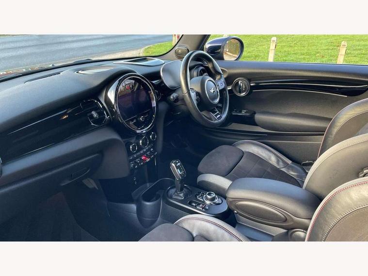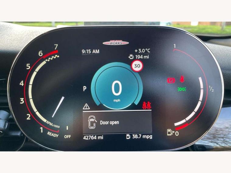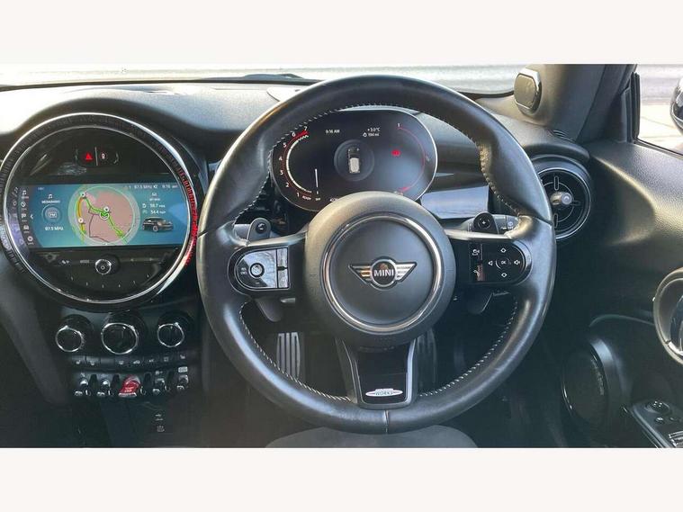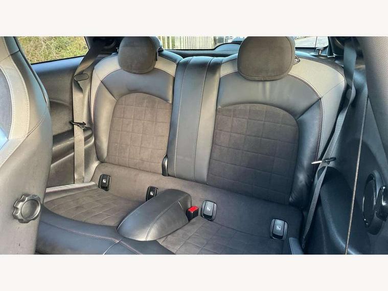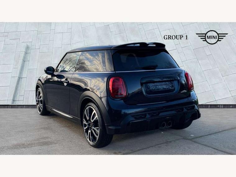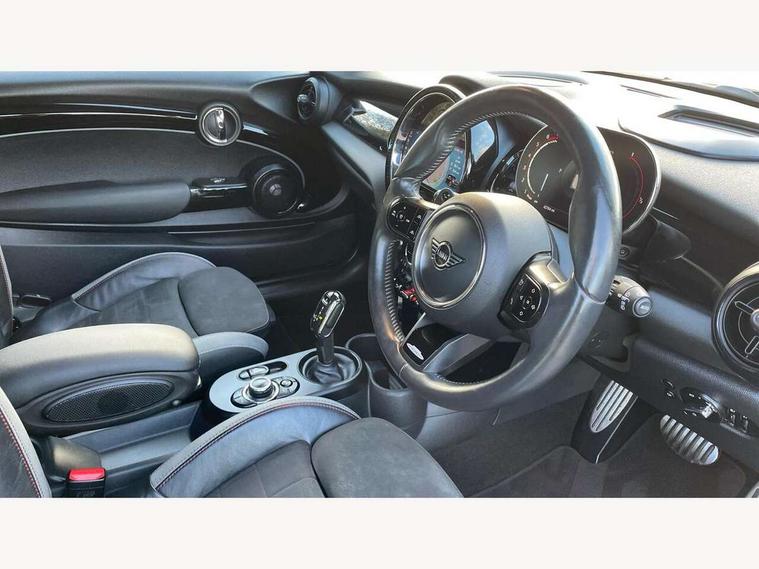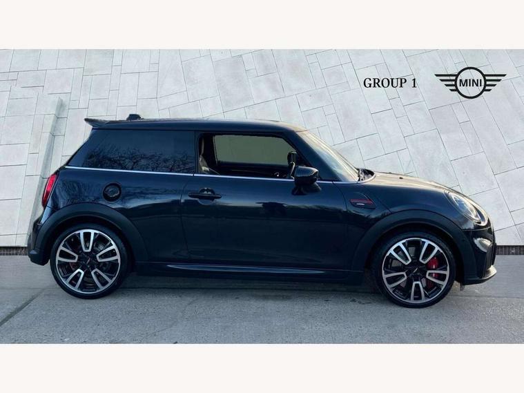 Apple CarPlay, Automatic start/stop function with brake energy recuperation, Compatible mobile phone bluetooth with audio streaming, Cruise control with brake assist, Electro-mechanical speed dependant steering assistance, Flexible car sharing preparation, Instrument cluster, MINI Driving Modes - centre toggle switch to control driving setting (sport, mid and green), Mini E-call, MINI TeleServices, On board computer, Rear park distance control, Service interval indicator, Double Vanos system, Eight speed steptronic sport transmission, with gearshift paddles, Fully variable valve control, High precision injection, Performance Control, 8.8" touchscreen with LED ring, FM tuner and DAB digital radio, 3rd brake light, Automatic headlight activation switch, Bonnet scoop, Dynamic brake lights, Electric front windows, Heated rear window, Heated windscreen washer jets, JCW Aerodynamic kit - Front and rear bumpers with sporty JCW styling and part-painted side sills with MINI John Cooper Works door sill finishers, John Cooper Works logo above an individual grille strut in Chilli Red, John Cooper Works rear spoiler, LED headlight with closed ring and daytime driving lights, Radiator grille piano black border with honeycomb structure in black matt, Rain sensor window wipers, Rear fog lights, Rear LED lights with union jack design, Rear window wiper, Side scuttle panel with integrated indicator, Side scuttle with MINI John Cooper Works logo in black high-gloss with red border, Sun/heat protection glass, Two central exhaust tailpipes with chrome finisher, White indicator lenses, 12V Accessory socket in centre console, 2 seat bench in 2nd row, 4 lashing eyes in luggage compartment, 60/40 split folding rear seat, Anthracite headliner including grab handles and clothes hooks, Carbon black colour line - Knee roll and door armrest, Chrome interior highlights, Cupholders, Front and rear isofix with front passenger airbag deactivation, Front floor mats in velour, Glove compartment, Height and length steering column adjustment, Interior lighting with 12 different colours across the dashboard, underneath door bezel with illuminated laser-engraved design on central display, JCW Sport seats with integrated headrests, adjustable thigh support and John Cooper Works logo, Leatherette gearshift lever and handbrake gaiters, LED reading lights, vanity mirror lights, front foot well light and spotlight on front seats, Manual air conditioning, Mechanical seat adjustment - forward/back & backrest for front seats and driver seat height adjust, Multifunction steering wheel, Passenger seat height adjuster, Rubberised stainless steel pedals, Single front passenger seat, Storage compartments in doors, Storage pocket on back of front seats, Sunvisors with vanity mirrors, Walknappa leather steering wheel with grey seam and John Cooper Works badge on Piano Black lower steering wheel spoke, Navigation pack without Apple Carplay - Mini Hatchback, Piano black exterior pack - JCW, 3 point seatbelts on all four seats, 4-piston fixed-calliper brakes front, 6 Airbags - front, side, head and seat belt tensioners, Anti-lock braking system (ABS), DSC - Dynamic Stability Control, Front and rear disc brakes, Red brake callipers with John Cooper Works logo, Single tone fanfare horn, Tyre pressure monitoring system, Alarm system with tilt sensor, monitoring doors, bonnet interior and tailgate, Electronic vehicle immobiliser, Start/stop toggle with keyless go, Tool kit,