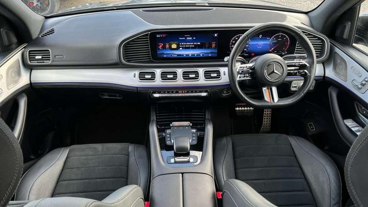 12.3 High resolution wide screen cockpit display with choice of three display styles Classic, Progressive or Sport and unique ambient lighting setting, 360 degree view camera, Active parking assist with PARKTRONIC, Attention assist, Brake wear warning display, Direct steer speed sensitive steering, DYNAMIC SELECT with a choice of driving modes (ECO, Comfort, Sport and Individual), Easy-pack tailgate - Powered opening/closing automatically, ECO start/stop function, Hard-disk navigation, MBUX voice control activated by keywords "Hey Mercedes", Mercedes Benz emergency call system, Mercedes me connect - vehicle set up and monitoring, Outside temperature display, Pre-installation for digital key transfer, Remote boot release, Service indicator (ASSYST), Status display for rear seat belts in instrument cluster, Traffic sign assist, Trip computer in multifunction display showing current fuel consumption, Wireless charging, Wireless smartphone integration including Apple CarPlay and Android auto, 85 litre fuel tank, 9G TRONIC 9 speed automatic transmission, Airmatic air suspension with adaptive damping system, Diesel particulate filter (DPF), Mild Hybrid starter alternator, Additional USB connection, Bluetooth interface for hands free and audio streaming, Burmester surround sound system, DAB digital radio tuner, Front and rear USB ports, Sound personalisation, Adaptive brake lights, AMG bodystyling front and rear aprons, Auto headlights, Automatically dimming rear view mirror, Body coloured bumpers, Electric windows with one touch opening/closing and obstruction sensors, Electrically adjustable, heated, folding exterior mirrors, Exterior styling - front bumper, radiator grille and front air intakes, Heat insulating dark tinted glass, LED 3rd brake light, LED daytime running light signet, LED rear lights, Magic vision control, Multibeam LED headlights with adaptive highbeam assist plus, Radio aerial integrated into rear window, Rain sensing windscreen wipers, Rear side wing doors, Rear wiper, Roof rail system, Top surround of side windows in polished aluminium, Transparent Bonnet, Visible twin pipe exhaust system integrated into bumper, Waistline in polished aluminium, 3 spoke flat bottomed Multifunction sports steering wheel in nappa leather, 4 way adjustable front head restraints and 2 way rear head restraints, 4 way lumbar support for driver and front passenger, 40:20:40 split folding rear seats, AMG floor mats, Artico/Microcut microfibre upholstery, Automatic child seat recognition sensor, Black fabric roof liner, Electric height/reach adjustable steering column, Electrically adjustable front seats with memory function, Front centre armrest with stowage compartment and illuminated grab handles, Gearshift paddles on steering wheel, Glove compartment - lockable, air conditioned and illuminated, Heated front seats, Interior lighting - 64 colour Ambient lighting, Luggage compartment cover, Seat occupancy sensor for front passenger seat, Second row three seats, Single front passenger seat, Sports pedals in brushed stainless steel with rubber studs, Sunvisors with illuminated vanity mirrors, THERMATIC 2 zone automatic climate control, Touchpad, Keyless go comfort package - GLE, Night package - GLE, Active bonnet, Airbags - driver and front passenger, front sidebag, pelvis bag and window airbags, Anti-lock braking system (ABS), Black seat belts, Childproof locks manually operated for rear doors and electrically operated for rear power windows, Drivers knee airbag, Electronic parking brake, Electronic Stability Programme (ESP), ISOFIX child seat points with automatic child seat recognition, Perforated front brake discs and brake calipers with Mercedes-Benz lettering, Pre safe impulse side, Three point rear seat belts, Tyre pressure monitoring system, Warning triangle and first aid kit, Alarm system/interior protection/immobiliser, Central locking with interior switch, automatic locking and crash sensor with emergency opening function, Chrome surround in electric key, Guard 360 degree vehicle protection plus, Brushed aluminium trim elements, Dashboard and door beltlines in ARTICO man made leather with contrast top stitching, 21" AMG 5 twin spoke light alloy wheels painted in bi colour, TIREFIT with tyre inflation compressor,