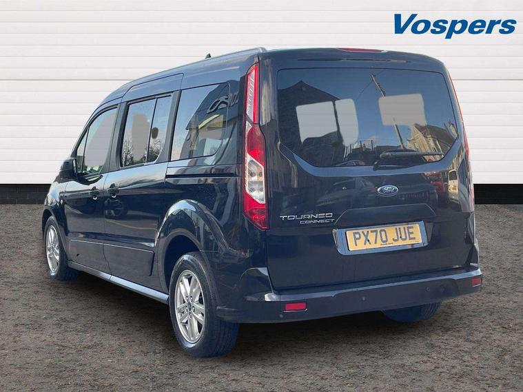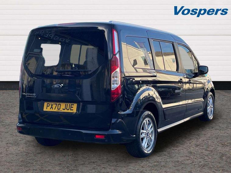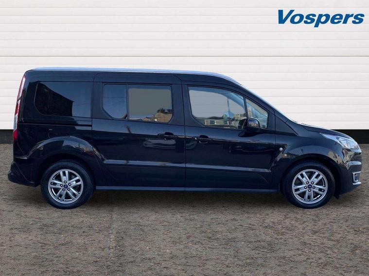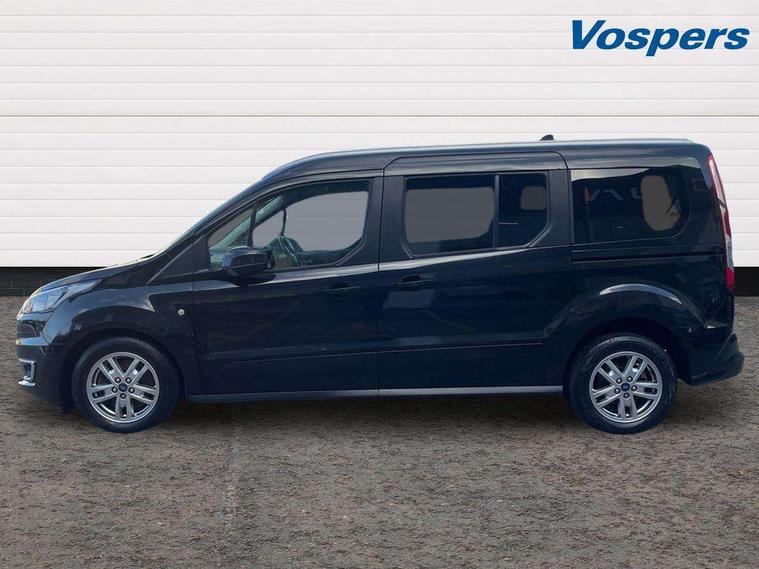 Auto start and stop system, Camera enhanced pre-collision assist with pedestrian recognition, Easy fuel capless refuelling system, Eco select function, FordPass connect, Lane keep assist, PAS, Trip computer, Diesel particulate filter, Heavy duty battery, Leather steering wheel mounted radio controls, Active shutter grille, Adaptive cornering lamps includes fog lamp, Auto dimming rear view mirror, Auto headlamps and rain sensitive wipers, Body colour door handles, Body colour side mouldings, Body coloured front bumper, Dual sliding side load doors, Integral roof rails, Power folding and heated door mirrors, Power front and rear windows with global opening/closing, Privacy glass, Quickclear heated front screen, Rear wiper, 2nd row centre armrest, 4 way manually adjustable passenger seat, 8 Way driver seat with fore/aft, recline, height and lumbar adjustment, Driver's armrest, Dual zone automatic air conditioning, Front carpet mats, Front head restraints, Leather gearknob, Ligne fabric upholstery, Map pocket on front seat backs, Pollen filter, Reach + rake adjustable steering column, Rear head restraints, Second row fold flat/drive seats, Seat pack 27 - Titanium, 3 point seatbelts on all seats, Driver, passenger and 2nd row rear seat belt reminder, ESC with ABS, Front airbag restraint and passenger airbag restraint, Front and rear curtain airbags, Front side airbags, 2nd remote key, Immobiliser, Keyless Start, Remote central double locking, Thatcham Cat.1 alarm,
