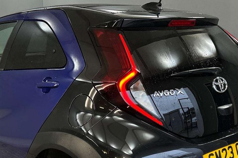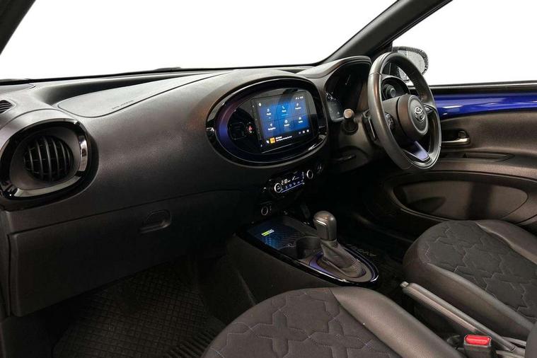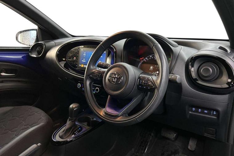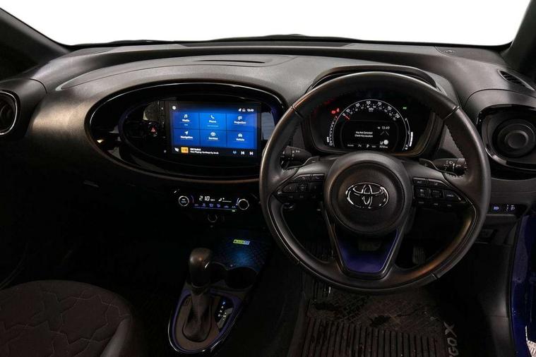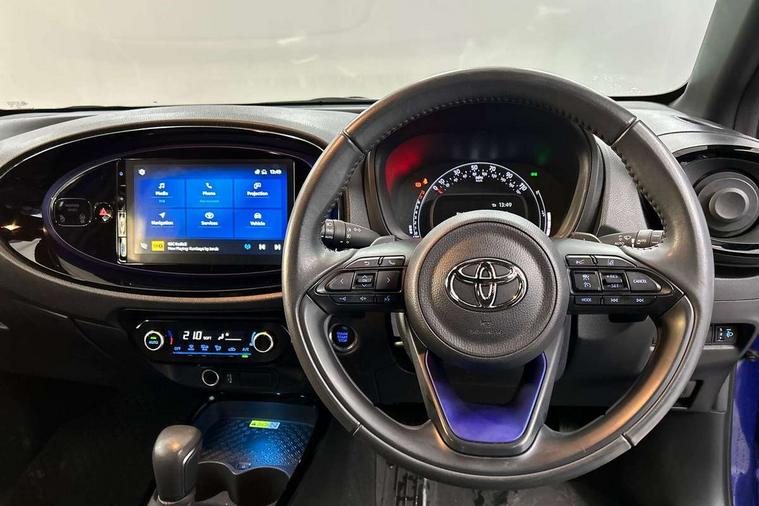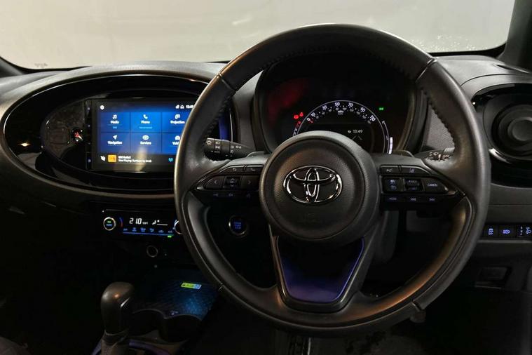 4.2" TFT colour screen, Adjustable speed limiter, Analogue speedometer, Bluetooth connectivity, Digital tachograph, Driver attention alert system, eCall emergency call system, ECO-driving indicator, Electric power steering, Front and rear parking sensors with auto brake, Intersection turn assist, Key reminder warning, Noise reduction kit, Pre collision system with emergency steering assist, Remote boot door release on key, Reversing camera with static guide lines, Smart entry and push button start, Speed limit display, Start and stop, Wireless charger, Wireless Smartphone Integration includes Apple CarPlay and Android auto, Vehicle Stability Control (VSC), 4 speakers, 9" HD multimedia display touch screen with Toyota smart connect, DAB digital audio broadcast, USB connector, Auto headlights, Auto wipers, Automatic headlights cut-off, Automatic high beam On/Off switch, Bicycle towing hook, Black fog light surrounds, Black side protection mouldings, Black wheel arch mouldings, Body colour door handles, Body coloured front bumper, Boot door scuff plate, Eclipse black rear bumper, Electric heated door mirrors, Follow me home headlights, Front and rear underruns in silver, Front fog lights, Front power windows, Gloss black door mirrors, Gloss black upper front grille, Headlight cut-off reminder, LED daytime running lights guide, LED front light guide, LED High mounted stop lamp, LED projector headlights, Manual day/night rear view mirror, Manual headlight levelling, Pagoda roof, Power adjustable door mirrors, Power back door, Privacy glass, Rain sensor, Rear combination lights LED bulb type, Rear side wing doors, Rear windscreen defogger, Rear windscreen wiper, Remote hazard lights system, Short antenna, Variable intermittent windscreen wipers, 12v power outlet - front, 2 seat bench in 2nd row, 3 spoke leather steering wheel, 50/50 split folding rear seat, Adhesive roof headlining, Adjustable speed limiter switch on steering wheel, Audio and telephone switches on steering wheel, Auto air conditioning, Black roof lining, Body colour satin anodised insert on steering wheel, Boot light, Centre room light, Chrome interior door handles, Chrome surround on air conditioning buttons, Clean air filter, Console box storage, Floor mats, Front and rear cup holders, Front head rest deco art, Front head restraints, Gear shift indicator, Height adjustable driver seat, Intelligent adaptive cruise control switch on steering wheel, ISOFIX child restraint system on rear seats, Lane departure alert switch on steering wheel, Leather gearshift knob, Light blue ambient lighting in centre console, Manual tilt steering wheel, Manually reclining and sliding driver seat, Manually reclining and sliding front passenger seat, Multimedia switches on steering wheel, Paddle shift levers on steering wheel, Partial synthetic leather upholstery, Pollen filter, Rear door pockets, Rear head restraints, Remote air-conditioning system, Satin silver insert on gear shift knob, Single compartment glovebox with lights, Single front passenger seat, Soft tonneau cover, Sun visors with mirror on driver and passenger side, Voice recognition switch on steering wheel, Toyota safety sense pack - Aygo X, Anti lock braking system + Electronic brake force distribution, Child safety door lock, Emergency brake light signal (EBS), Hill start assist control (HAC), Passenger airbag on/off switch, Seat belt reminder for front and rear seats, Supplement restraints system (SRS) - 6 airbags, Traction control, Tyre pressure warning system, Immobiliser, Remote power door locks, Black wheel centre caps, Tyre repair kit,