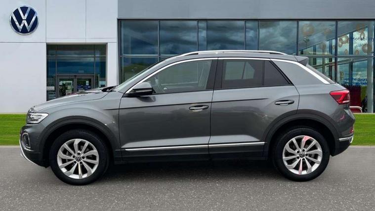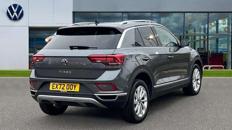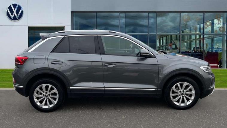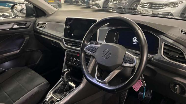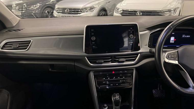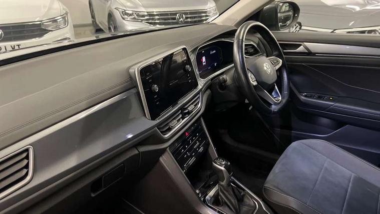 10.25" Digital cockpit pro, Bluetooth mobile phone interface, Driver alert system with fatigue detection, Driver tips and journey analysis, Emergency call service, Lane keeping system Lane Assist, Modified key software - reduce switch off time for key status change to Long no motion, Online services, Park assist including front and rear parking sensors, Service interval indicator, Tailgate/trunk lid release from outside, Think blue trainer driver tips and journey analysis, Warning sound and light for front seatbelts unfastened, Wireless app connect, Battery regeneration during braking, Start/stop function with battery regeneration, Diversity antenna for FM reception, Front and rear 6 speakers, Music playback - MP3, WMA and AAC files, Premium USB cable in choice of either Apple or Android smartphone compatibility, SD card slot, Simultaneous pairing of 2 compatible mobile devices, Title and cover art display, We Connect and We Connect Plus functionality, 3rd brake light, Auto dimming interior rear view mirror, Automatic hazard lights activation under emergency braking, Automatic headlight control with LED separate daytime running lights with coming/leaving home function, Body colour sports bumpers with silver metallic underbody fascia, Dynamic headlight range control with self adjusting whilst driving, Extended roof spoiler, Exterior mirrors aspherical on driver side, convex on front passenger side, External USB type C socket and charging sockets, Front windscreen wiper with intermittent wipe and 4 position delay, Heated rear window, LED Plus headlamps, LED rear combination lamps, LED rear number plate lights, LED tail lamp rear comination lamps, Light mode for poor weather, rain, fog or snow, Power windows with comfort operation and circuit breaker, Rain sensor, Rear exhaust tailpipe, Rear fog light on one side and reversing lights on both sides, Rear side wing doors, Rear wash/wipe with intermittent wipe setting, Remote electrically foldable door mirrors, puddle lights and reverse activated passenger's door mirror, 12V power socket in centre console, 3 rear head restraints, 3 seat bench in 2nd row, 4 load lashing points in luggage compartment, Air care climatronic air conditoning system with active combination filter and 2-zone temperature control, Chrome plated radiator grille inserts, air vent surrounds and light switch surrounds, Door and side trim panel with leatherette insert, Drawer under drivers seat, Front + rear carpet mats, Front centre armrest, Front comfort sports seats, Front cupholders x 2, Front footwell illumination, Instrument lighting, white adjustable panel illumination, Interior ambient lighting and surround lighting, Interior light delay, Isofix child seat preparation, Leather gearshift handle, LED interior light with switch off delay/dimmer and 2 front/rear LED reading lights, Load-through provision with cup holder when folded down ('Unsplit rear seat bench, split folding backrest, with centre armrest), Luggage compartment lighting, Non-folding front passenger seat backrest, Single front passenger seat, Storage compartment in left and right luggage area, Storage compartment in rear doors, Storage compartments in driver and front passenger doors, Sunvisors with illuminated vanity mirrors, Variable boot floor, height adjustable and removable, Driver assistance pack without proactive passenger protection - T-Roc, 3 point height adj front seatbelts + pretensioners, 3 point seatbelts in outer rear with ECE label, ABS, Child locks on rear doors, Driver and front passenger airbag with front passenger airbag deactivation, Driver and front passenger safety-optimised head restraints, Drivers seatbelt reminder, Electronic parking brake, Electronic Stability Control (ESC) inc EDL (Electronic Differential Lock) and ASR (Traction Control), Front and rear passengers curtain airbag system including front side airbags, Front assist with city emergency braking and pedestrian monitoring, Front seat side impact airbags, Predictive pedestrian protection, Rear disc brakes, Single tone horn, Tyre pressure loss indicator, Volkswagen roadside assistance, Alarm with interior protection, Anti-theft alarm system with interior monitoring, backup horn, and towing protection, Remote central locking with SAFELOCK, radio remote control with 2 remote control folding keys, Trims for alloy wheels,