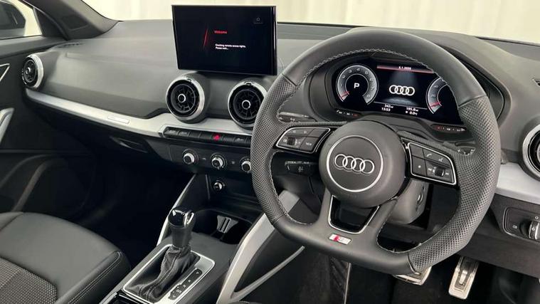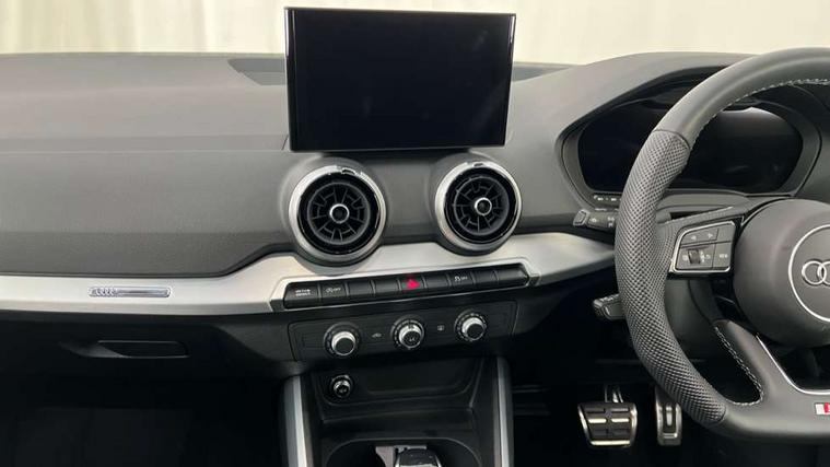 3D map display, Audi connect navigation and infotainment includes innovative services, Audi connect remote and control connects your vehicle to your smartphone, Audi drive select: S tronic - power steering assistance + engine + gearshift (modes: comfort, auto, dynamic, efficiency, individual), Audi smartphone interface - Apple carplay/Android Auto, USB connect, 2xSDXC card readers, voice control for navi, telephone, music and 3rd party apps, Audi virtual cockpit, Automatic start/stop system with recuperation, Bluetooth interface includes bluetooth audio streaming, Camera based traffic sign recognition, Cruise control, Distraction and Fatigue warning, E-call, Jukebox hard drive memory for music (10GB), Lane departure warning, MMI navigation plus with 8.8" touchscreen, Natural voice recognition, Power operated tailgate, Progressive steering, Rear parking sensors, Sport suspension, 6 passive loudspeakers, DAB Digital radio, USB type C port, Audi beam, Auto dimming rear view mirror, Black window trims, Bumper in full body colour paint finish, Electrically adjustable, folding, auto dimming and heated door mirrors with integrated LED side indicators, Front windscreen with grey tinted sunband, LED daytime running lights, LED headlights with dipped beam, high beam, position lights, indicators, LED rear lights, LED third brake light, Privacy glass - dark tinted rear and rear side windows from B-pillar backwards, Rear side wing doors, Rear wiper, Variable front intermittent wipers, Wheel arch trims in manhattan grey, 12V socket in front, 3 seat bench in 2nd row, 3 spoke flat bottomed multi-function leather sport steering wheel with gear shift paddles with S logo, 4-way electric lumbar support for front seats including manual seat height adjustment for both front seats, 60/40 split folding rear seat bench, Black carpets, Black cloth headlining, Front and rear head restraints, Front centre armrest, Front sport seats, Front/rear floor mats, Height/reach adjust steering wheel, Illuminated door sill trims with S logo, ISOFIX child seat mounting in front passenger and rear outer seats, Manual air conditioning, Single front passenger seat, Stainless steel pedals, Black styling pack - Q2, 3x3 point rear seatbelts, 6 airbags - Front, curtain and front side airbags, Electromechanical parking brake, Electronic stabilisation control including ABS, ASR and EDL, Front passenger airbag deactivation, Hill hold assist, Pre-sense front with pedestrian recognition, Seatbelt monitoring, Tyre pressure warning light with visual and acoustic warning, Warning triangle and first aid kit, Anti theft wheel bolts, Electronically operated child locks, Remote central door locking, Thatcham category 1 alarm, Aluminium interior element, Black dashboard, Gloss black centre console, Matt brushed aluminium trim inlays, Tool kit,