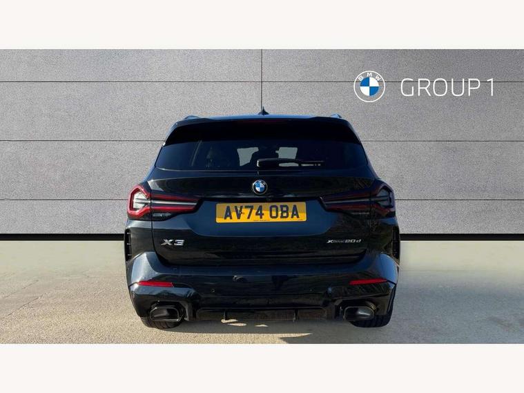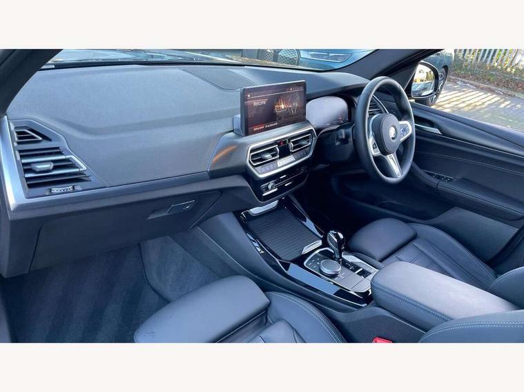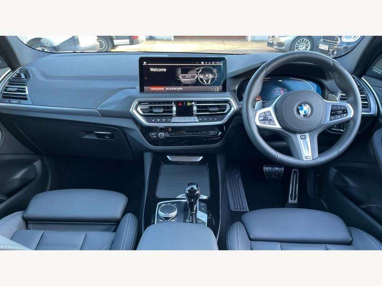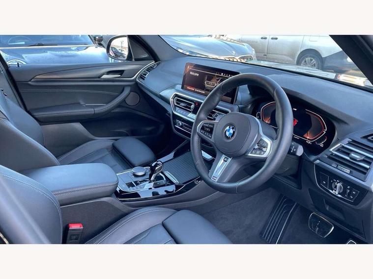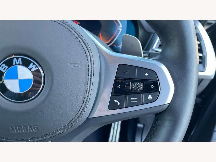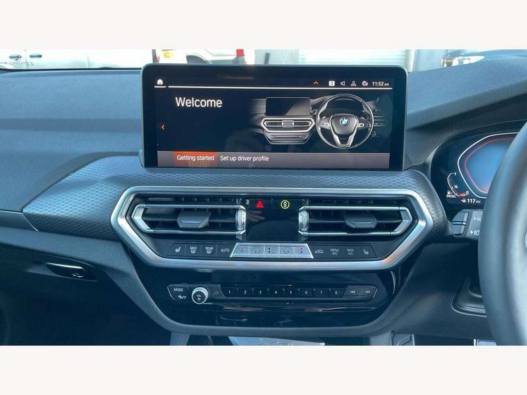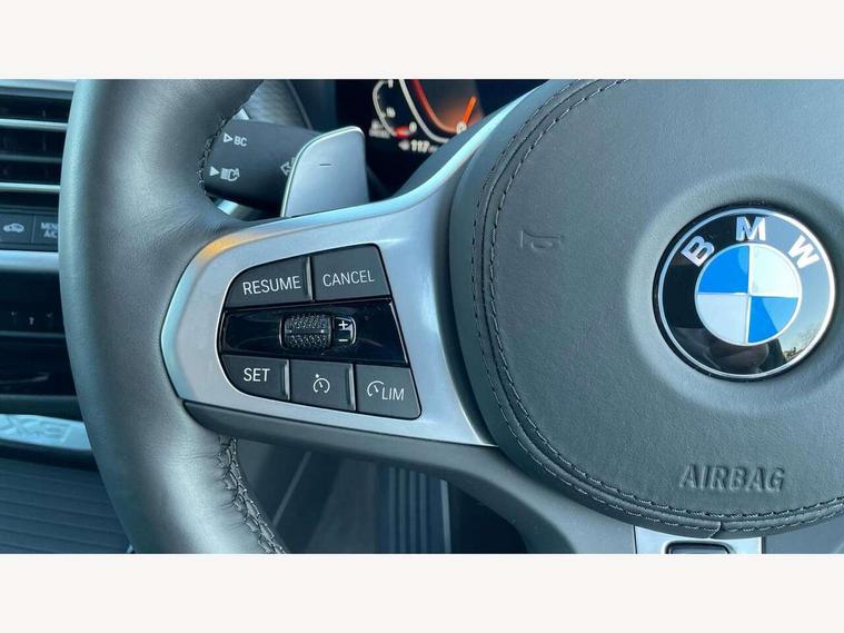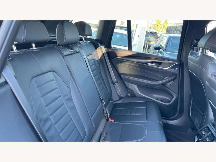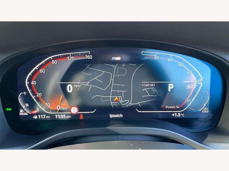 Active Guard, Attentiveness assist, BMW Live Cockpit Professional nav system including 12.3" instrument display + 12.3 high resolution control display, BMW Online services, BMW Teleservices, Brake pad wear indicator in front and rear, Check Control warning system for monitoring of lights and door/luggage compartment open warning, Condition based service - BMW service history, electronic service booklet, integrated owner's handbook, Connected drive services, Electric boot lid, Front/rear Parking distance control, iDrive touch controller with 8 favourite buttons, Instrument cluster with speedometer with mph readout, tachometer, fuel gauge and oil temperature gauge, Lights on warning by audio warning signal when ignition is switched off, Oil sensor for level and grade, warning by check control system, On board computer - average speed+fuel consumption, service interval, clock/date, odometer/trip meter, outside temperature display and ice warning, Optimum shift indicator, Personal Profile - automatic lock when driving away selectable, Run flat indicator, Stop/start system, Variable sports power steering with drive performance control Sport+ mode, Automatic transmission with gearshift paddles, Diesel particulate filter, Incorrect fuelling protection, Larger capacity fuel tank, M sport suspension, Multi-link rear suspension, BMW professional radio/CD/MP3, DAB tuner, Acoustic glazing, Automatic windscreen wipers and automatic headlight, Black finish on B pillars, Body colour door handles, Body colour electric adjust heated aspherical door mirrors, Body colour roof mouldings, Body coloured bumpers, Direction indicator, side repeaters, integrated in exterior mirrors, Dynamic brake lights, Exhaust tailpipes - dual, round, split left and right with chrome finisher, Fingertip control / anti-trap function on electric window, Folding wing mirrors with auto dimming, Follow me home headlights, Front and rear bumper system with replaceable deformation elements, Front and rear electric windows, Gloss chrome tailpipes finishers, Green tinted heat insulating glass, Heated windscreen washer jets, High beam assistant, High gloss black shadow line roof rails, High gloss shadowline exterior trim in decorative moulding side frame/recess cover/guide rail/B, C pillars/mirror frame and triangle with mirror base, High level 3rd brake light incorporating LED Technology, Interior rear view electrochromatic mirror with automatic anti dazzle function, LED tail lights, Lightweight engineering, M aerodynamic bodystyling, M Sport entry door sill strips, Model designation, Rain sensor, Rear side wing doors, Rear wing door, Rear wiper, Shark fin antenna, Side exterior M designation badges, Visible VIN plate, Welcome lighting, Windscreen wipers with adjustable interval, 12V power point in luggage area, 12V power socket in front centre console, 2 x USB Type C ports for charging and data transmission (front centre console) and 2 x USB Type C ports for charging (rear centre console), 3 rear headrests, 3 seat bench in 2nd row, 3 zone automatic air conditioning, 4 lashing points to secure luggage, 40:20:40 split folding rear seat with loading system, Ambient lighting, Anthracite headlining, Automatic interior light when door is opened/ignition switched off or via remote key, Floor mats in velour, Foldable storage floor with compartment, Four grab handles integrated in roof lining, Front and rear bottle holders integrated into door trim storage compartments, Front and rear side armrests integrated into door trim, Front centre armrest with storage compartment, Front footwell lights, Front head restraints, Front passenger seat, Front sports seats, Front/rear courtesy lights with soft on/off dimming, Front/rear reading lights, Heated front seats, Isofix rear child seat preparation, Leather gear knob, Lockable glove compartment, Luggage area underfloor compartment, Luggage compartment lighting, M sport leather steering wheel, Multifunction steering wheel, Parcel shelf removeable and storable under boot floor, Reach and rake adjustable steering column, Rear centre armrest with 2 cupholders, Removable / retractable luggage cover, Slope adjustable rear seats, Storage compartment in rear centre console and front/rear door trims, Sun visors with vanity mirrors and ticket pocket, Toolkit located in luggage compartment, Two front cupholders with removable oddments tray/lid, Connected pro pack - X3, ADB - Automatic Differential Brake, Anti-lock braking system (ABS) with brake assist, Automatic Stability Control (ASC), Battery safety cut-off, BMW emergency call, Brake drying, Brake energy regeneration, Braking pre-tensioning, Child locks on rear doors, Cornering brake control (CBC), Crash Sensor - activation of central locking release, hazard warning light and interior lighting, Deactivation of fuel pump in the event of a crash, Driver and front passenger front and side airbags with passenger deactivation and ITS front and rear head airbags, Driver and front passenger knee airbag, DSC+, Dynamic brake control, Dynamic Traction Control - DTC, Electromechanical parking brake, Hill descent control, Hill start assist, Seatbelt security check for front seats, Side impact protection, Three point seatbelts to all seats with front and outer rear pyrotechnic belt tensioners and seat belt force limiters, Two tone horn, Tyre pressure sensor, Ventilated front and rear disc brakes, Warning triangle and first aid kit, Central locking switch for all doors, fuel filler cap and luggage compartment, Electronic engine immobiliser, Locking wheel nuts, Remote control including two integrated key - one button for open/close all lockable content, windows and separate button for open luggage compartment, Remote control Thatcham category 1 alarm, Start/stop button with Comfort Go keyless engine start and auto Start/stop deactivation button, Low rolling resistance tyres,